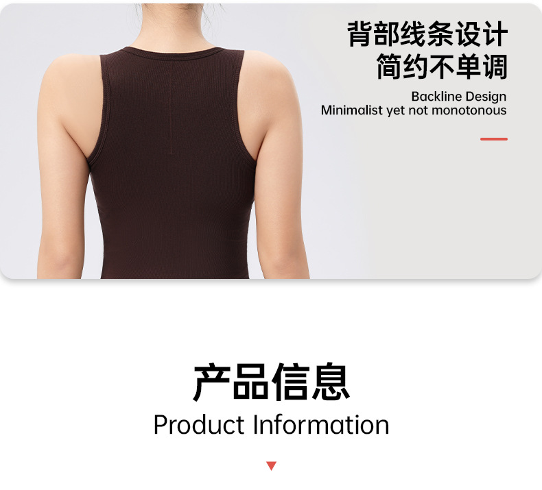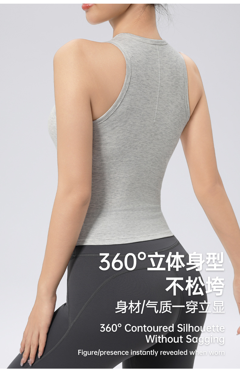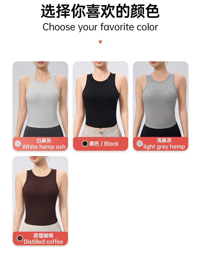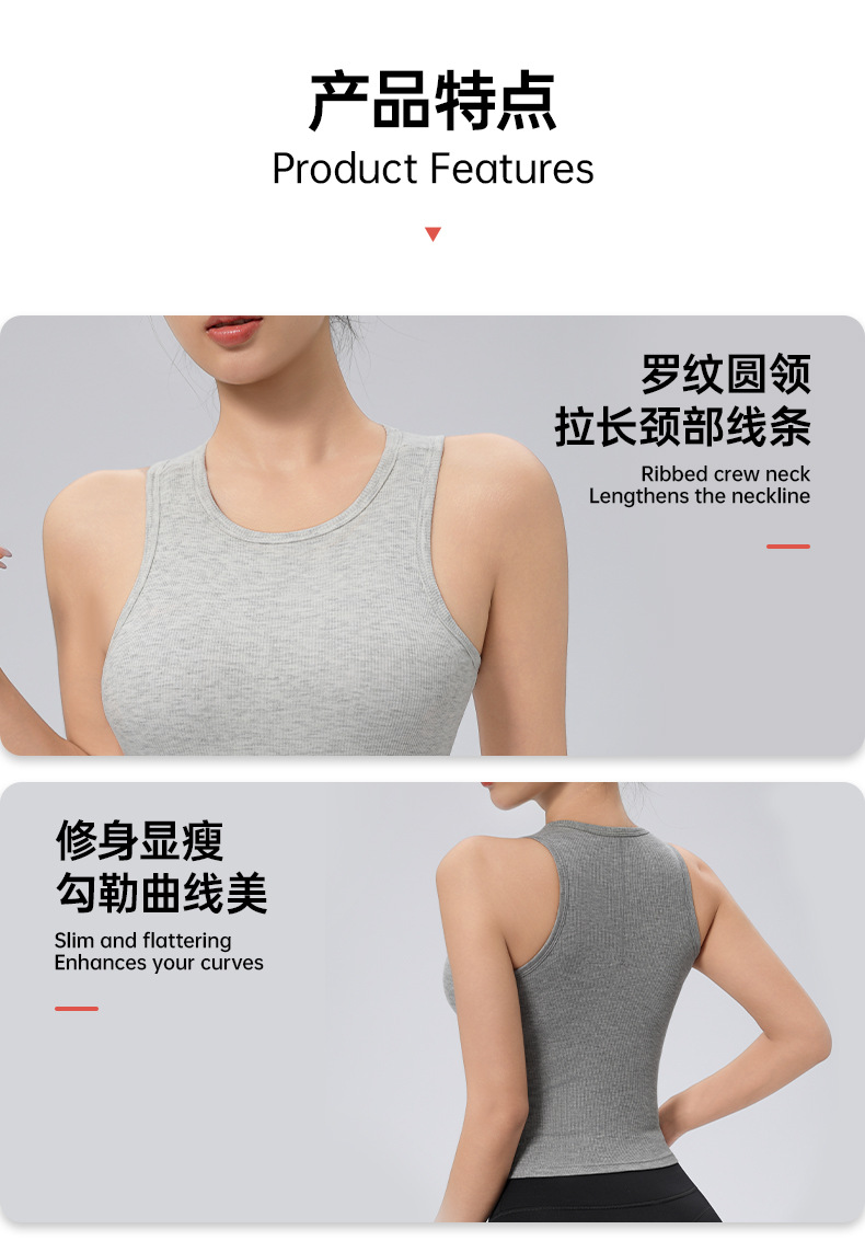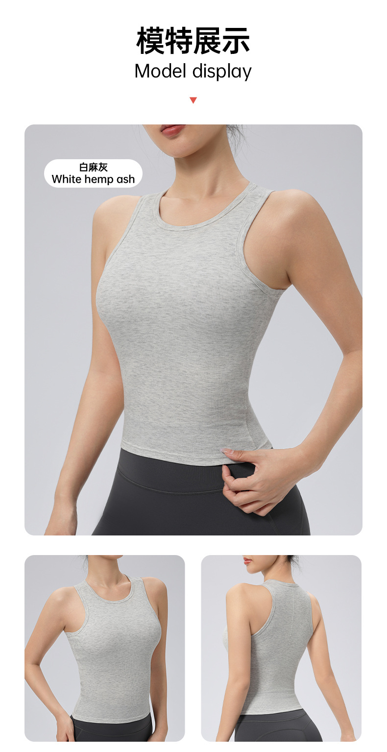 가슴 패드가 있는 여성용 골지 라운드 넥 스포츠 조끼, 다용도 슬림 요가 탑, 필라테스 민소매 요가복