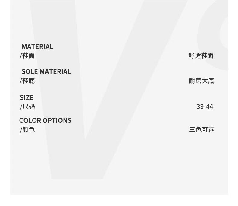 | 颜色 | W5033米粽, W5033黑色, W5033白绿 | 尺码 | 39, 40, 41, 42, 43, 44 |