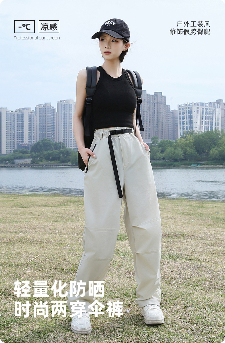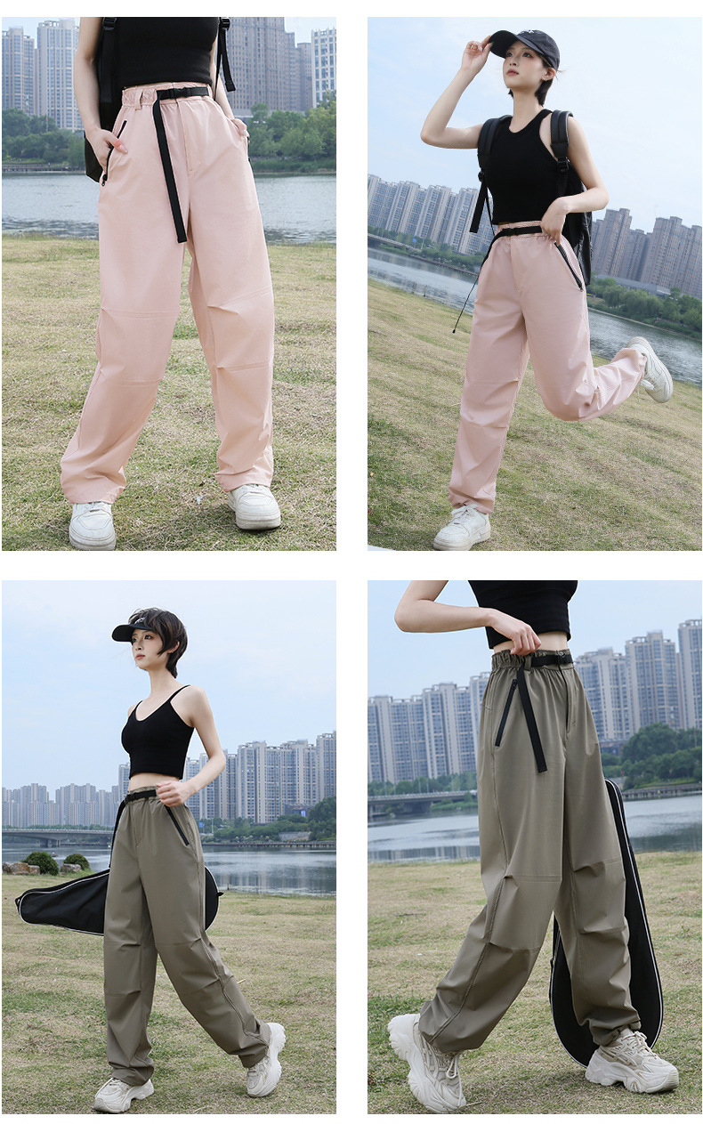 여성용 아웃도어 작업복 바지, 가을 겨울용 낙하산 바지, 속건 기능성 자외선 차단 바지, 와이드 팬츠, 하이웨이스트 슬림핏 캐주얼 바지