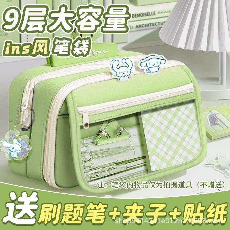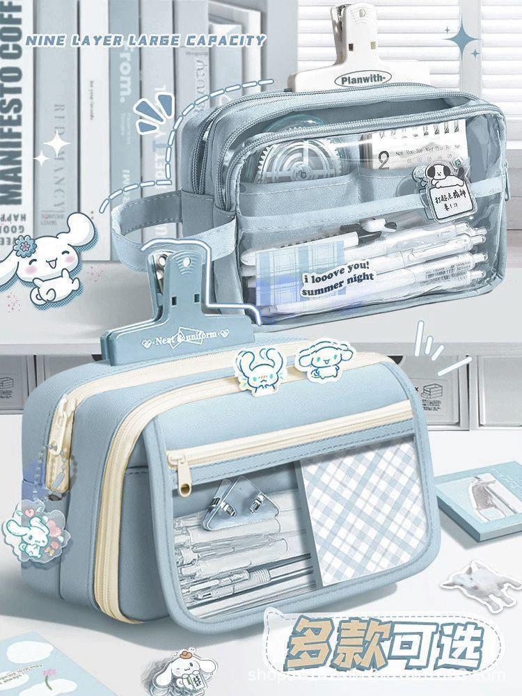 Douyin 대용량 투명 중학생 연필 가방 9층 연필 가방 다층 분리형 캔버스 연필 가방