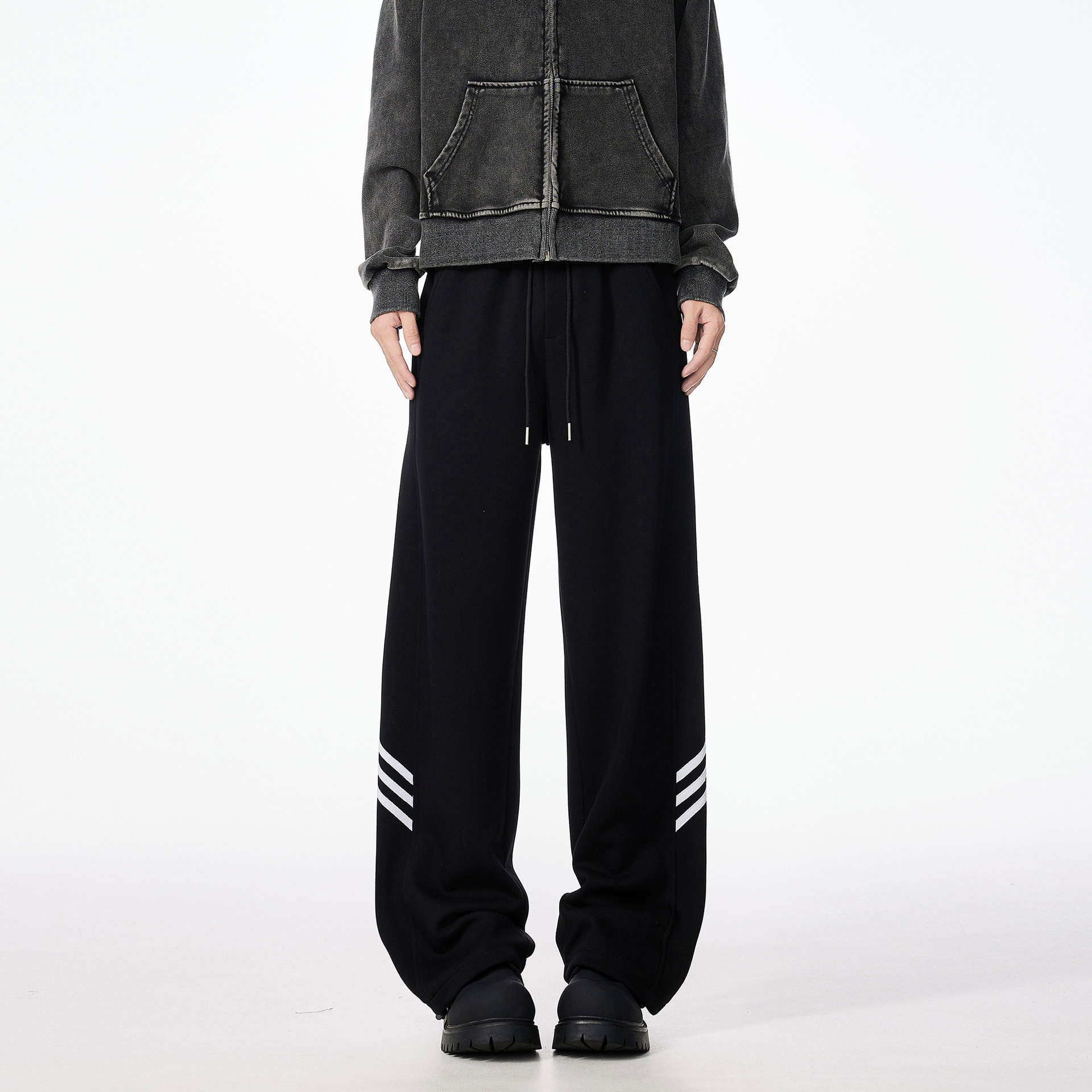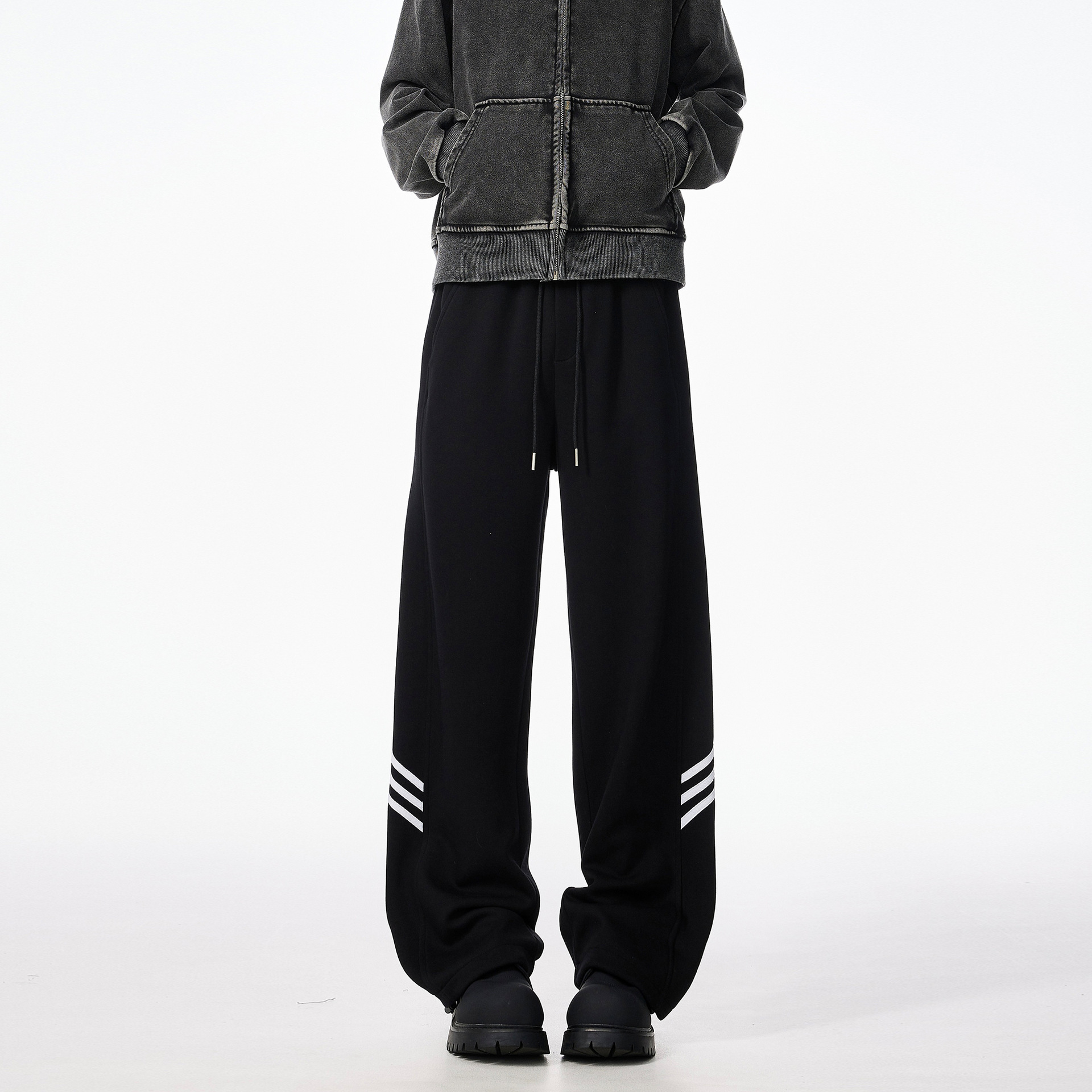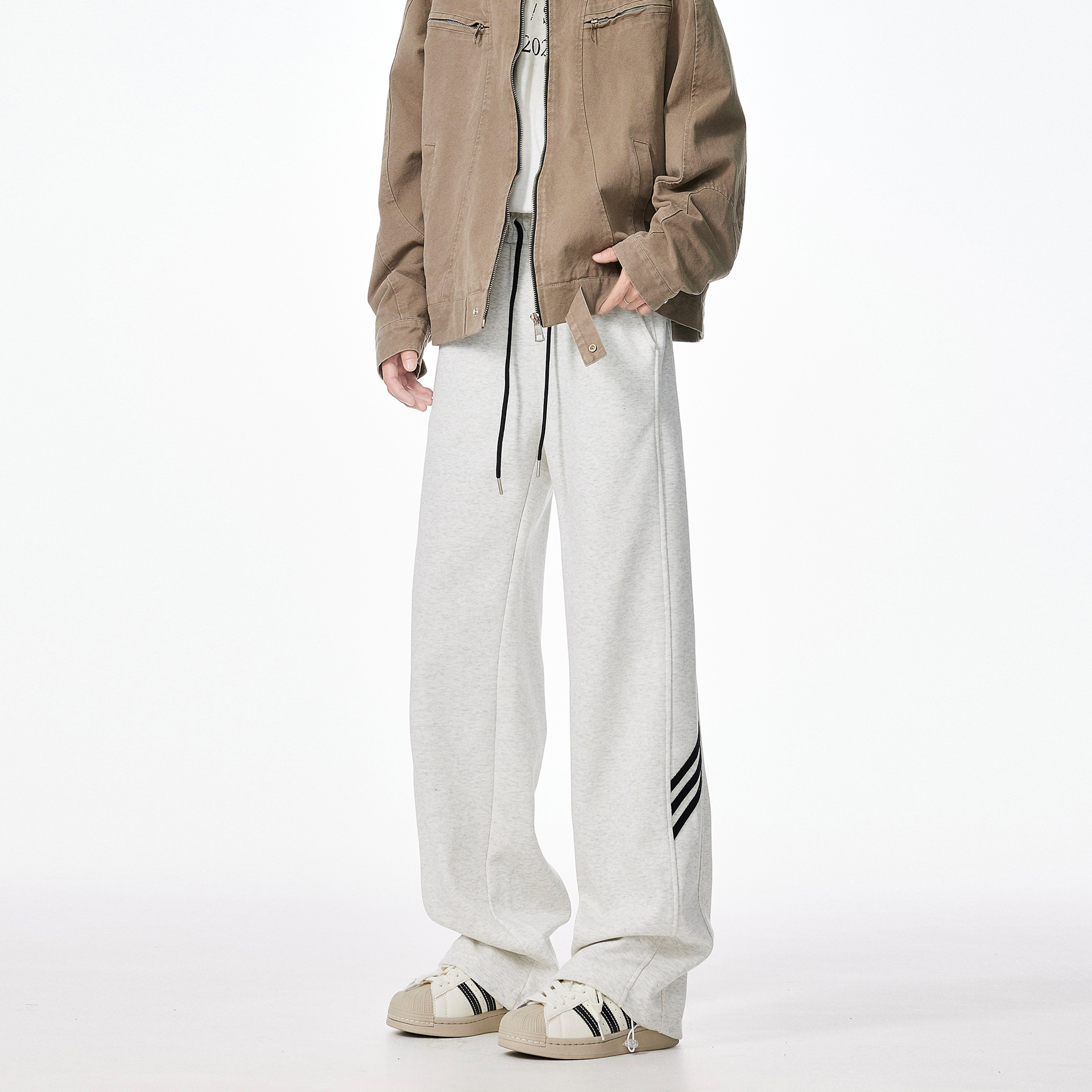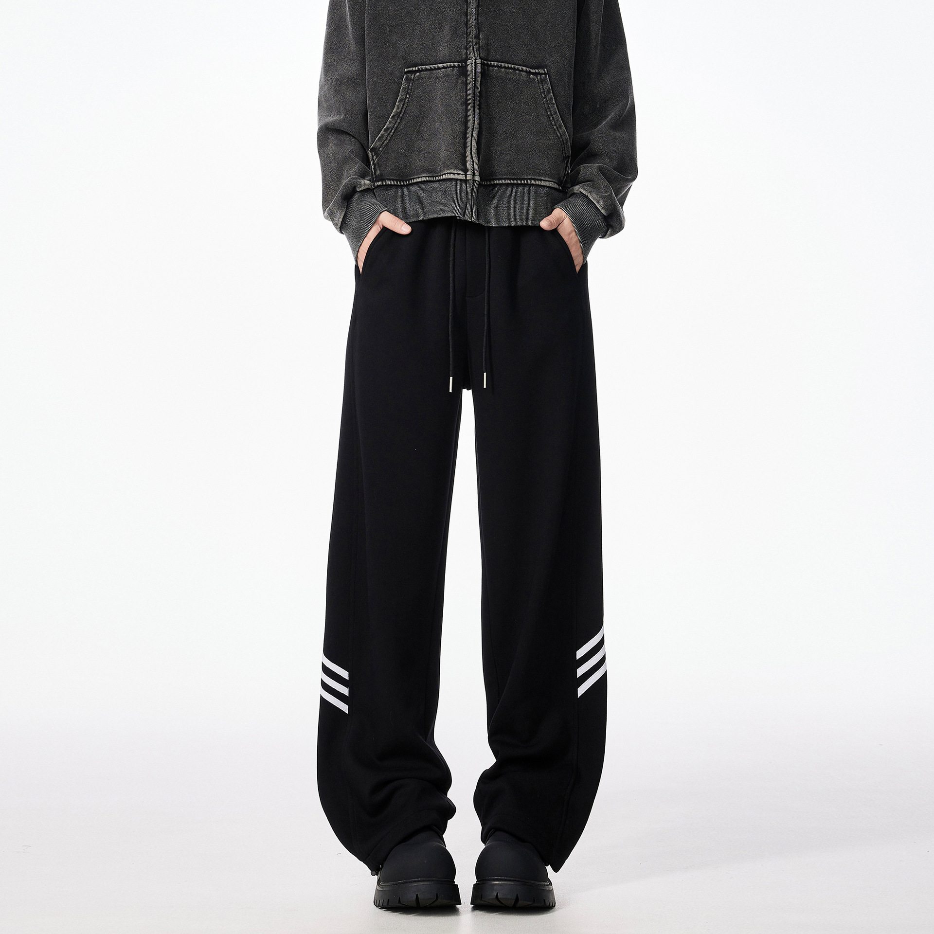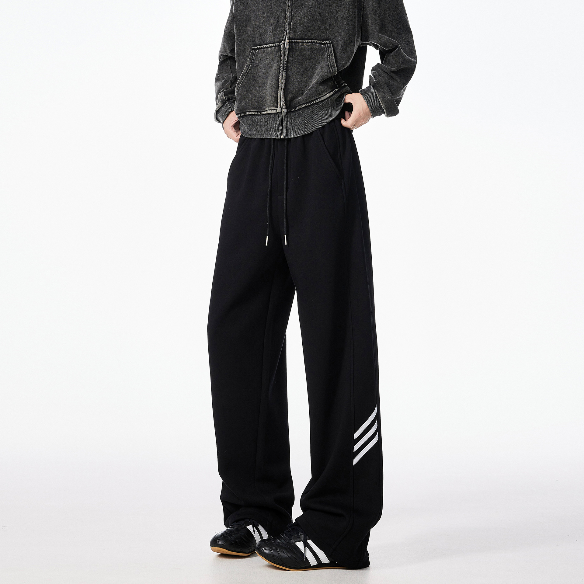 2025 신상 미국식 삼선 스웨트팬츠 남성용 봄 가을 다용도 스트레이트 와이드 팬츠 루즈핏 바지 롱 팬츠