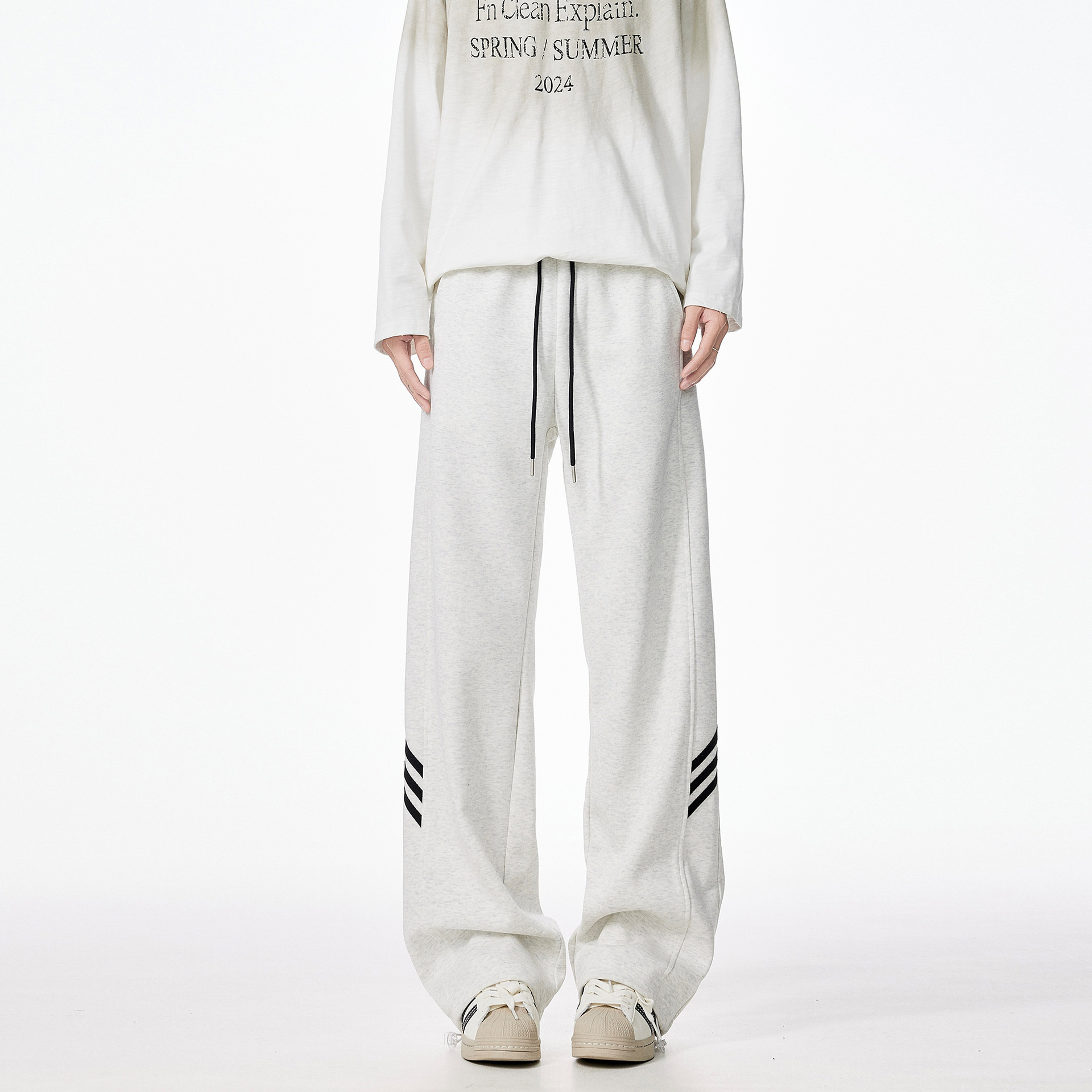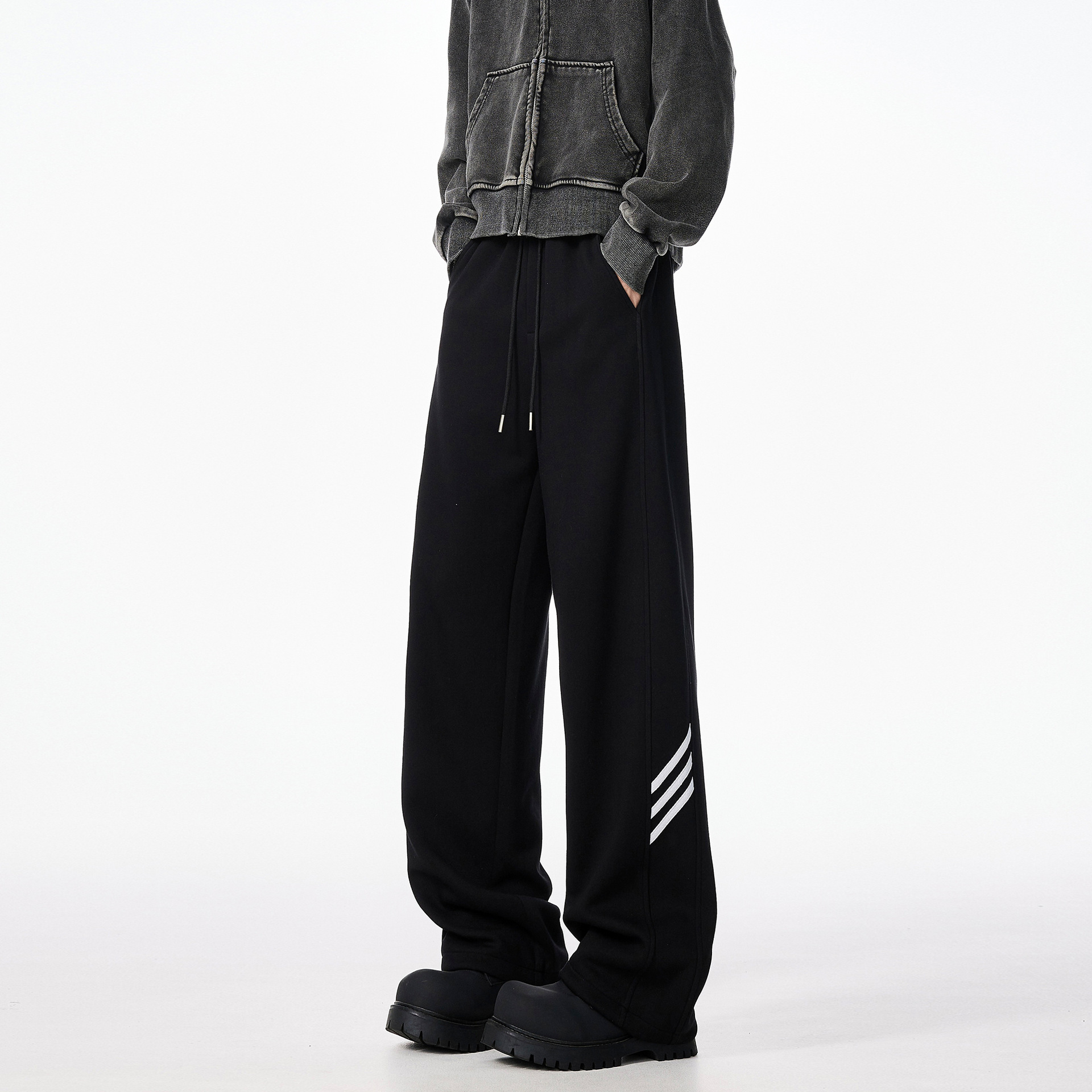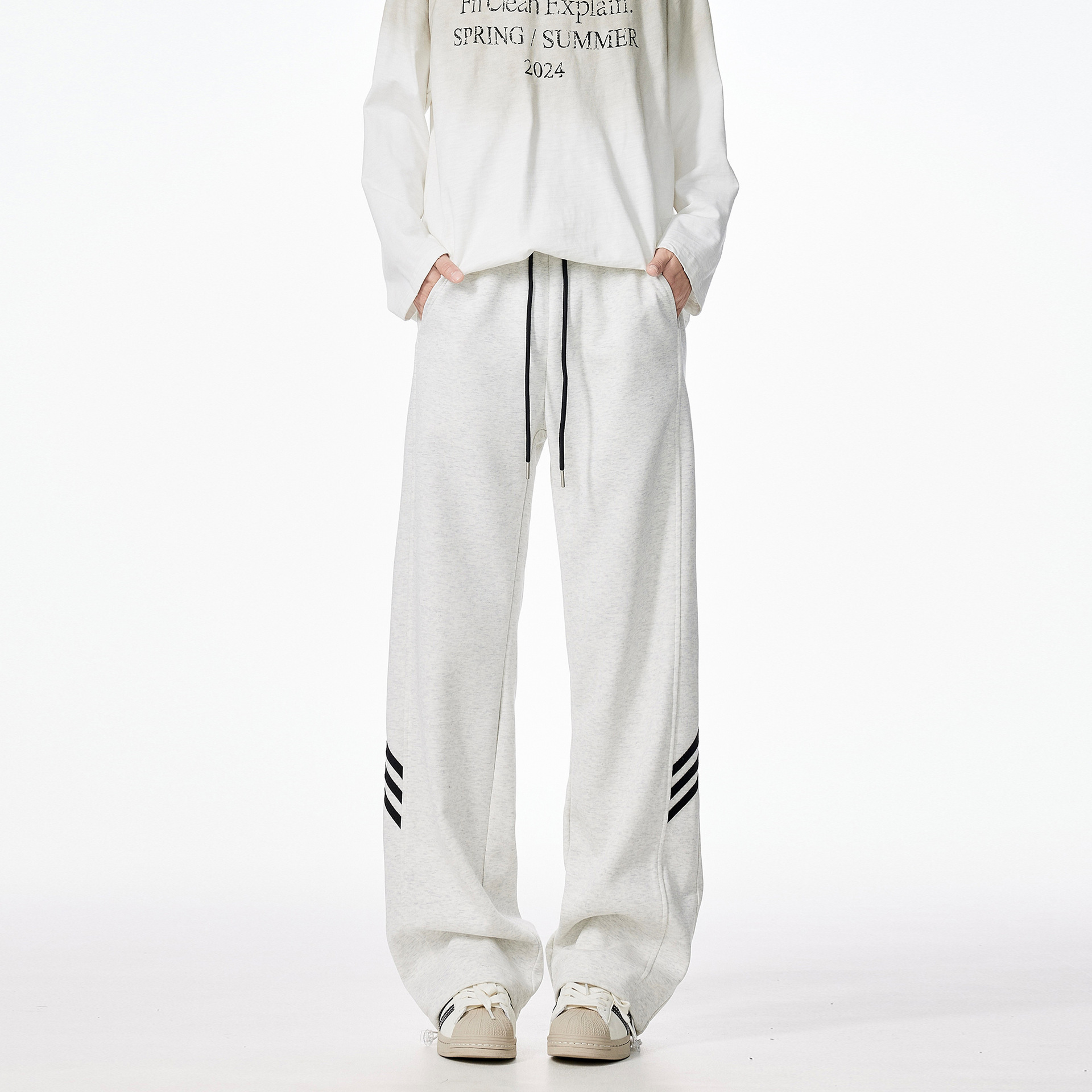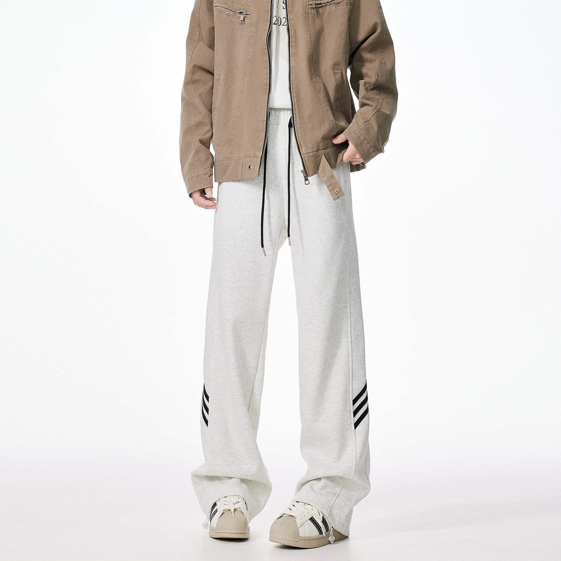 2025 신상 미국식 삼선 스웨트팬츠 남성용 봄 가을 다용도 스트레이트 와이드 팬츠 루즈핏 바지 롱 팬츠