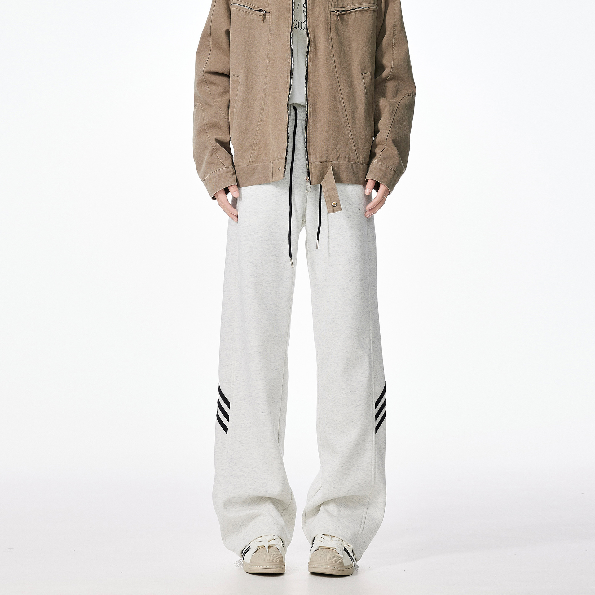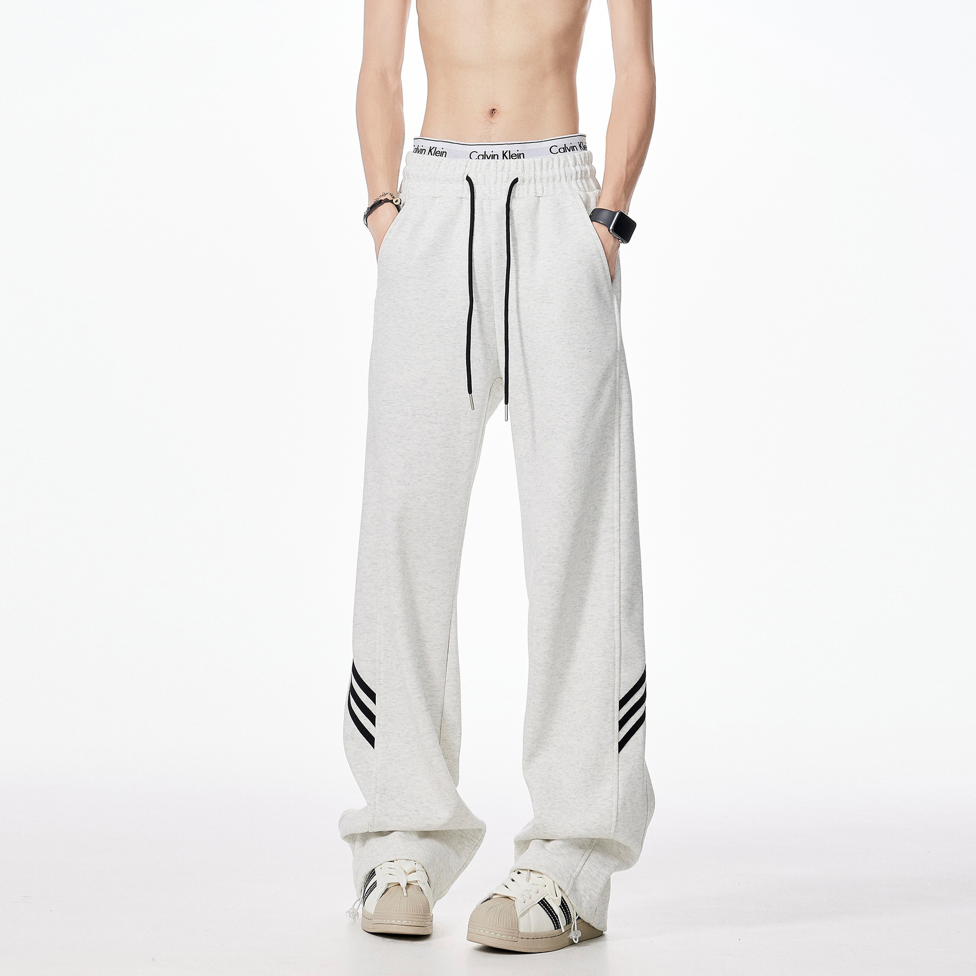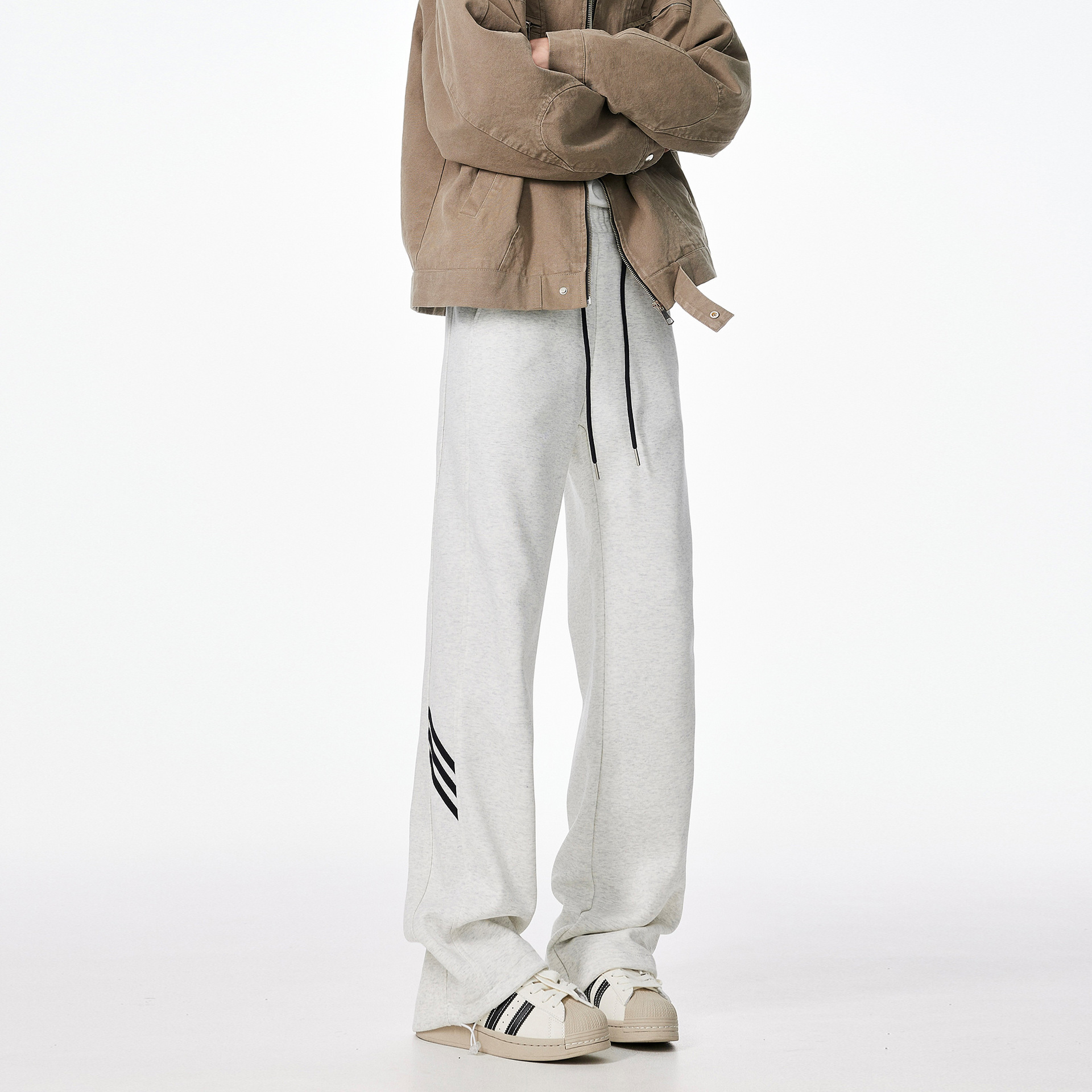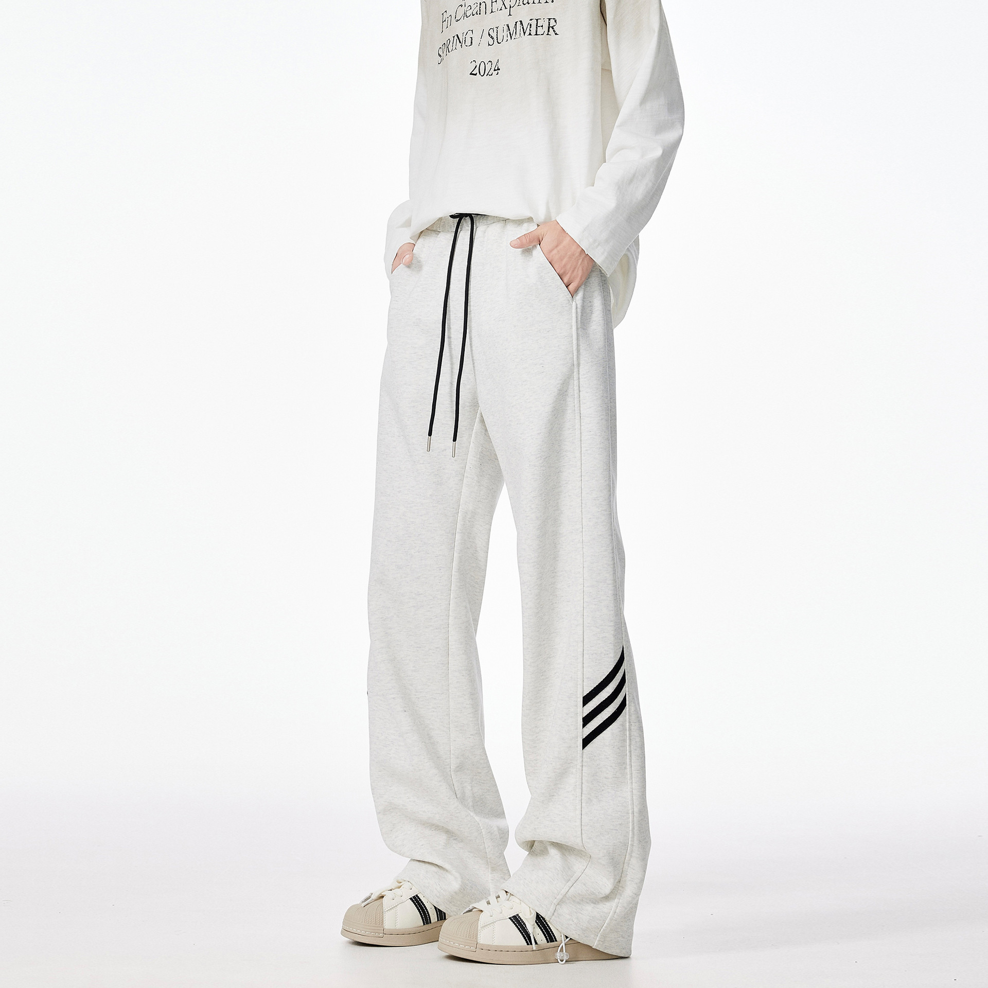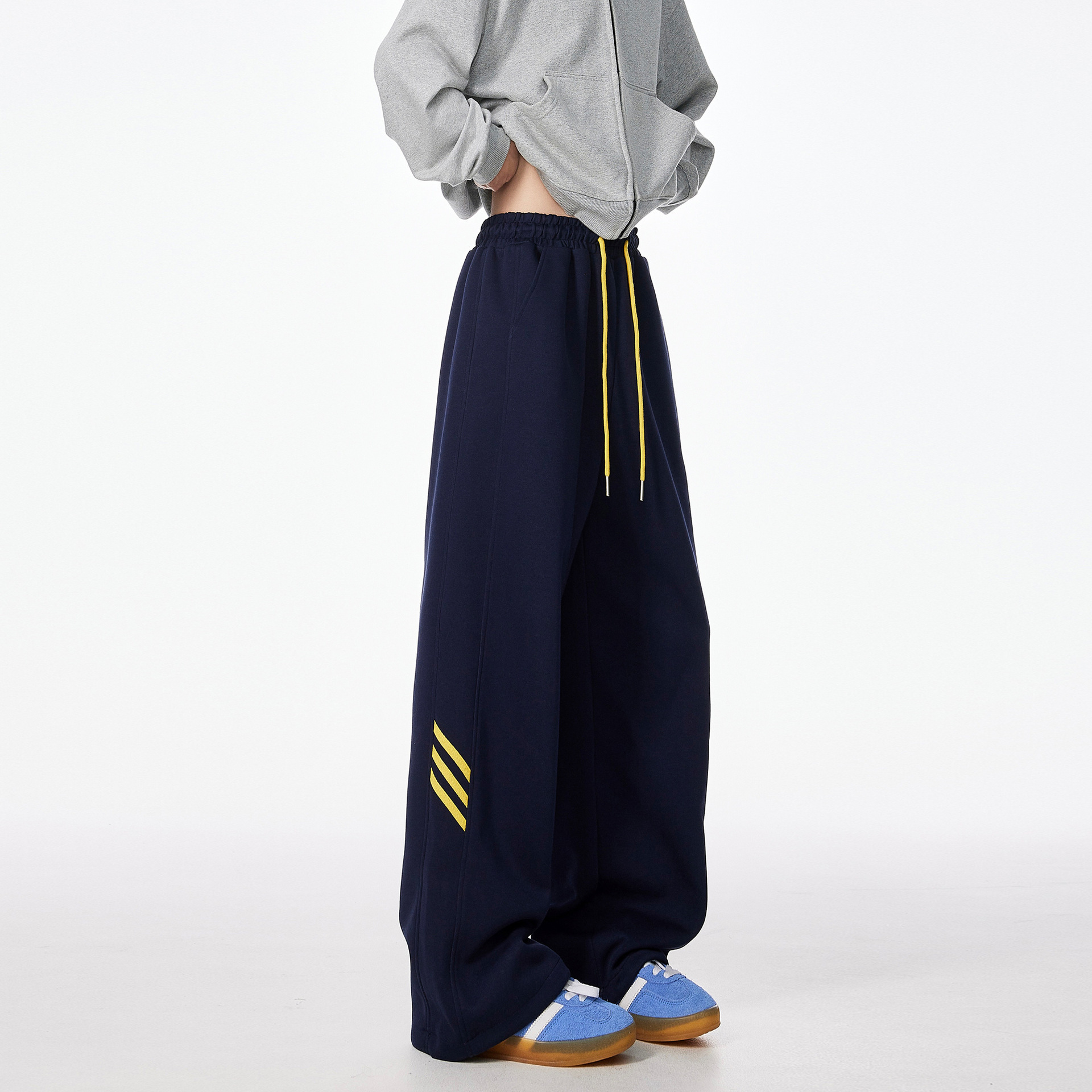 2025 신상 미국식 삼선 스웨트팬츠 남성용 봄 가을 다용도 스트레이트 와이드 팬츠 루즈핏 바지 롱 팬츠