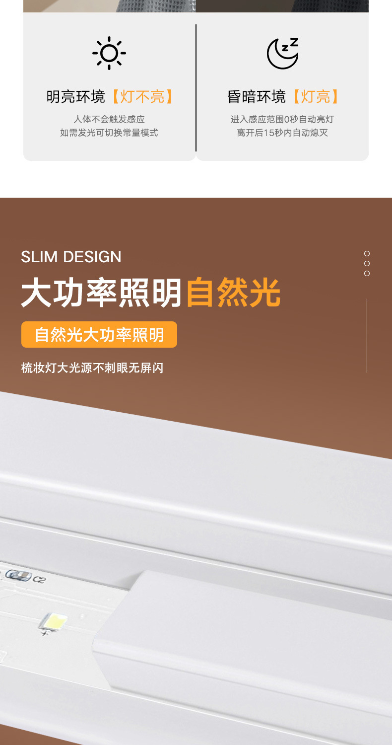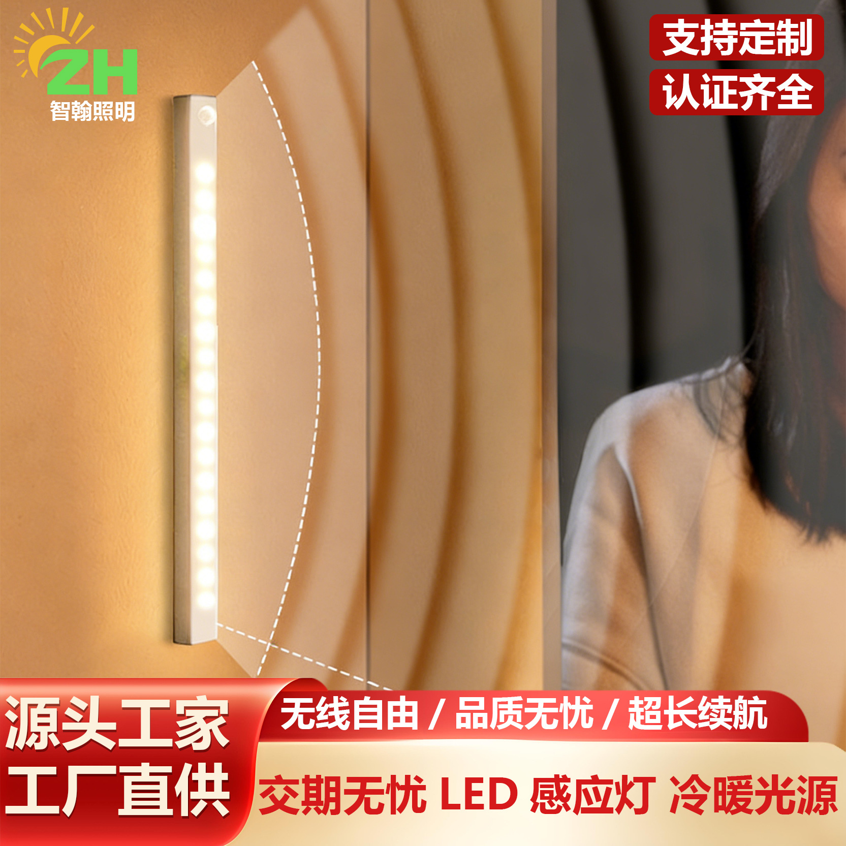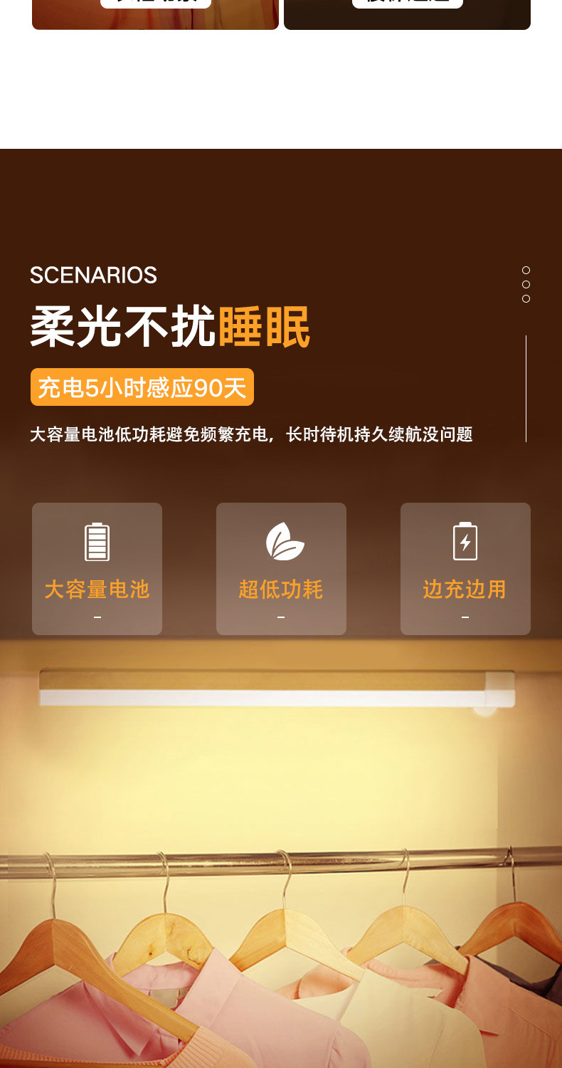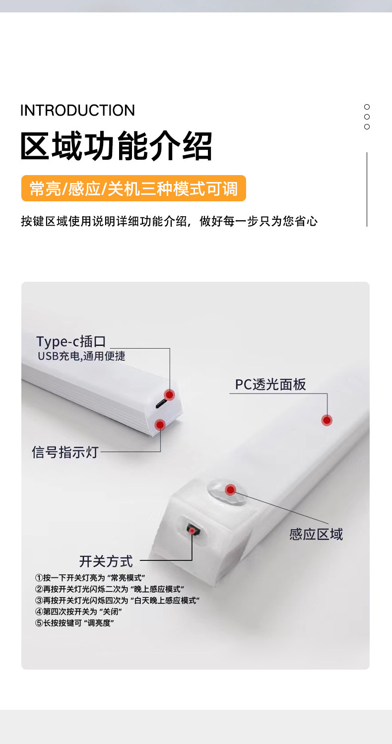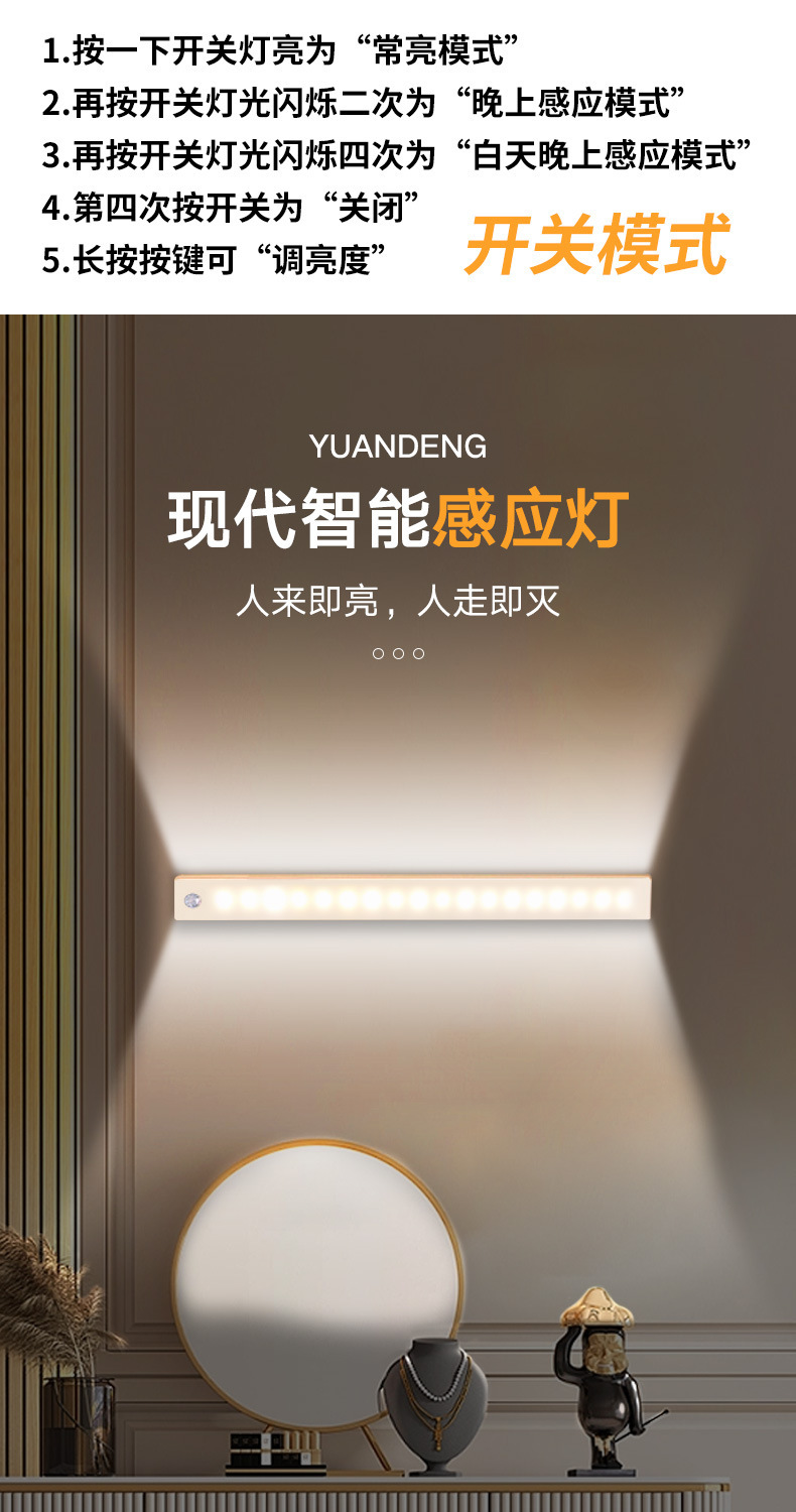 따뜻하고 차가운 빛 지능형 인간 LED 센서 빛 자기 접착 통로 와인 캐비닛 옷장 캐비닛 충전식 야간 조명