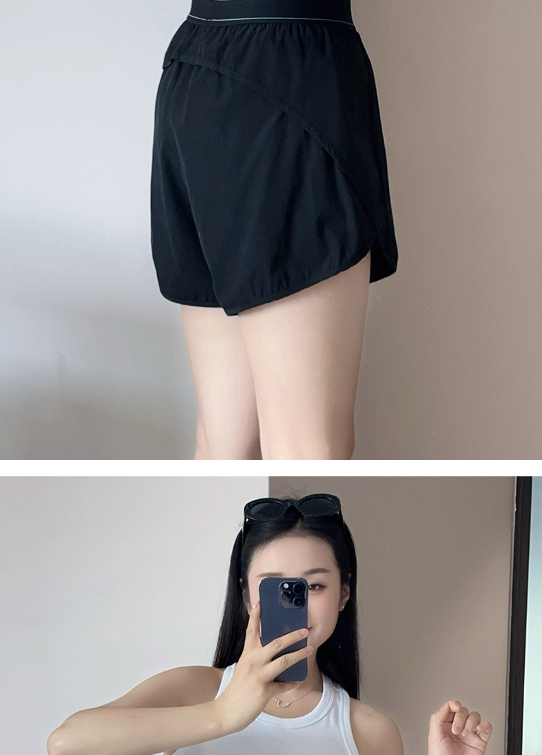 여름 새로운 스타일 누드 통기성 요가 피트니스 반바지 야외 달리기 노출 방지 스포츠 가짜 투피스 3점 바지