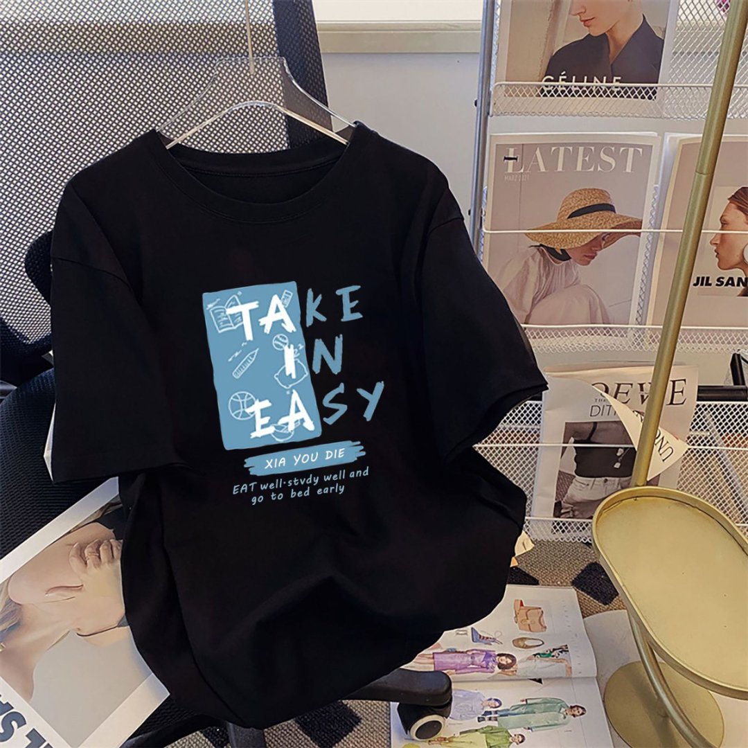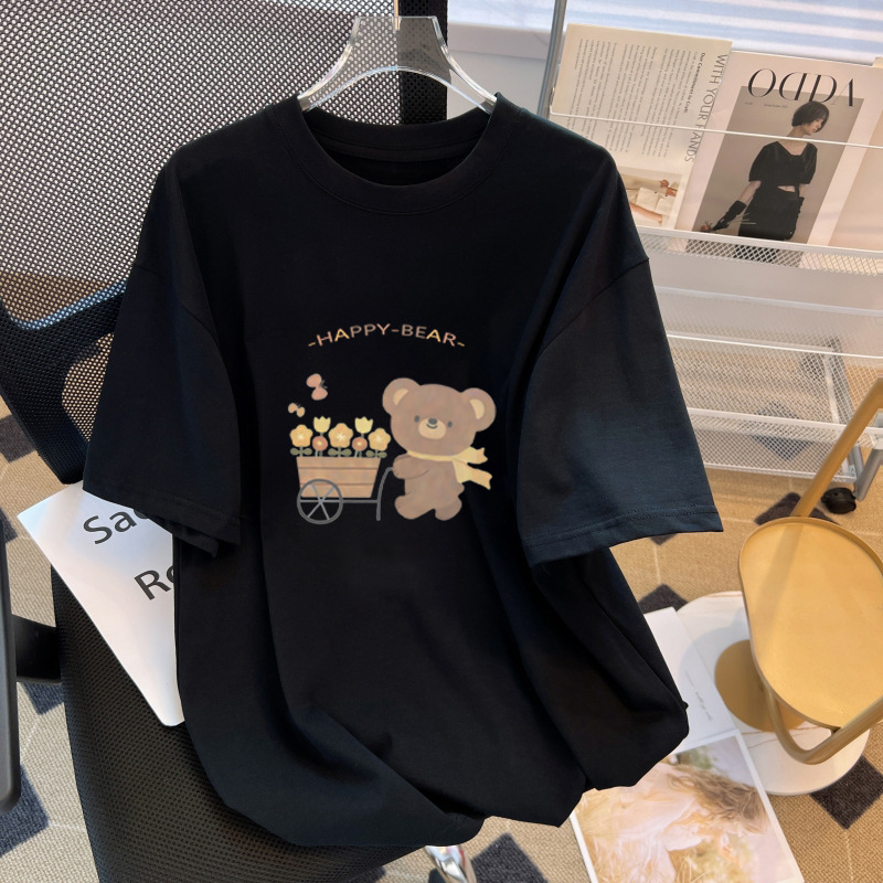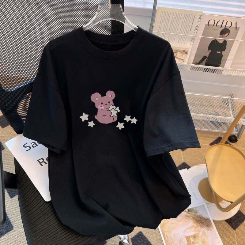 여성 여름 옷 순수 코튼 티셔츠 여성 라운드 넥 느슨한 다목적 만화 반팔 여성 티셔츠 남성용 맞춤형 로고 그룹 유니폼