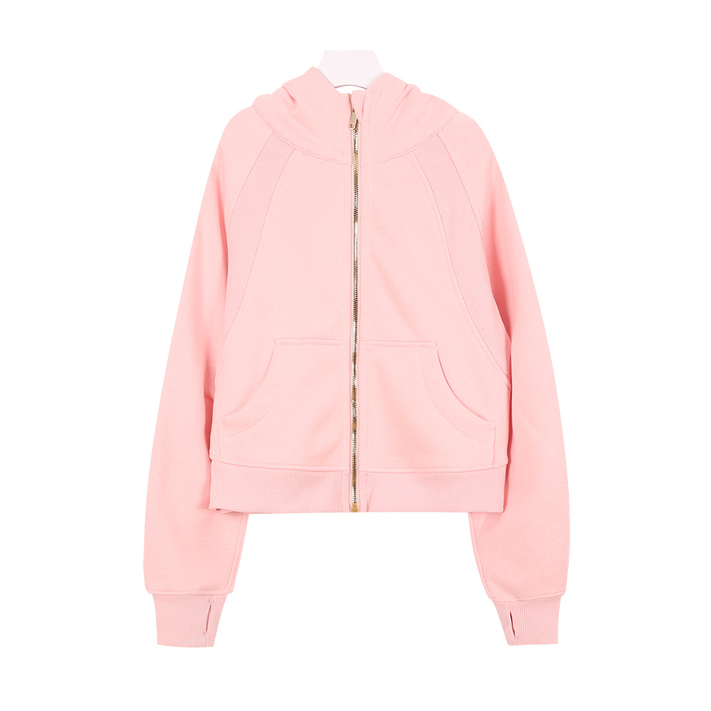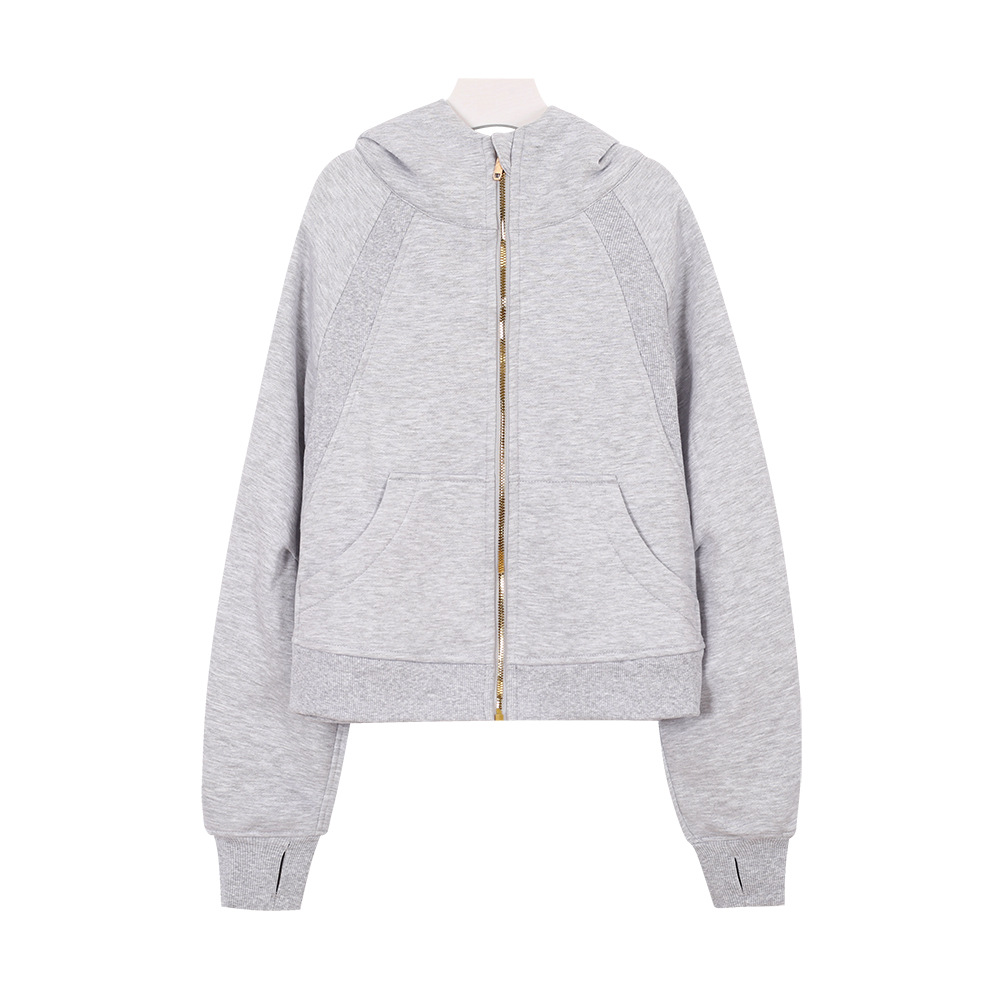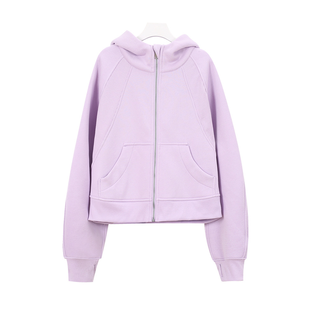 (재고 있음) 루즈한 풀풀 스웨트셔츠 여성용 스포츠 지퍼 후드 가디건 스쿠버 재킷 플러스 벨벳 요가복