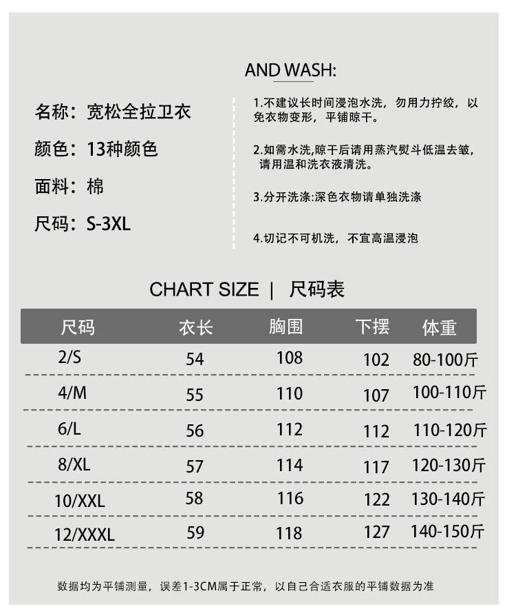 | 颜色 | 黑色款宽松全拉卫衣, 灰白款宽松全拉卫衣, 花灰款宽松全拉卫衣, 牡丹粉宽松全拉卫衣, 粉末蓝宽松全拉卫衣, 石墨灰宽松全拉卫衣, 亚麻蓝宽松全拉卫衣, 午夜蓝宽松全拉卫衣, 美拉德宽松全拉卫衣, 骨白款宽松全拉卫衣, 暗薰紫宽松全拉卫衣, 烟雾紫宽松全拉卫衣, 中国红宽松全拉卫衣, 牡丹粉金宽全拉卫衣, 午夜蓝金宽全拉卫衣, 花灰金宽松全拉卫衣, 闪电蓝宽松全拉卫衣, 美拉德金宽全拉卫衣, 玫红款宽松全拉卫衣, 玫红金宽松全拉卫衣, 烟熏粉宽松全拉卫衣, 鼠尾草绿宽全拉卫衣, 鼠尾草绿金全拉卫衣, 喜悦粉宽松全拉卫衣, 森林绿宽松全拉卫衣, 灰白金宽松全拉卫衣, 闪电蓝金宽松全卫衣, 琉璃蓝宽松全拉卫衣, 安格拉红宽松全拉卫 | 功能 | 保暖 |