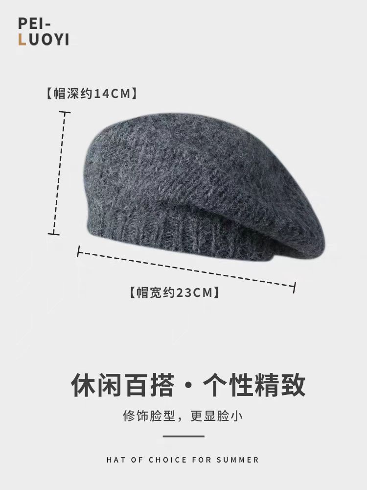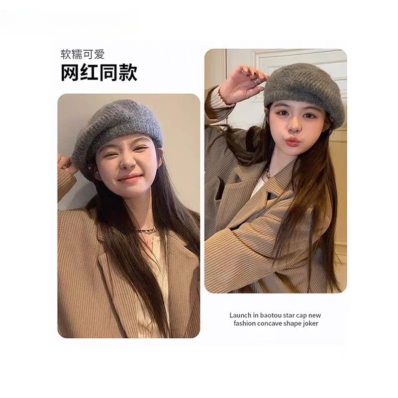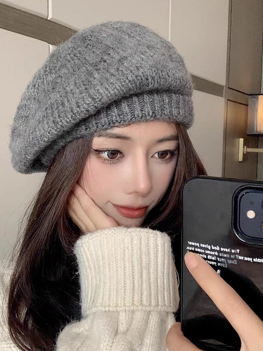 니트 베레모 여성용 플러시 니트 가을 겨울 화가 모자 다용도 인스타 감성 큰 머리둘레 얼굴 작아보이는 모직 모자