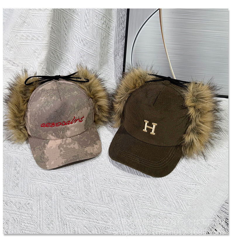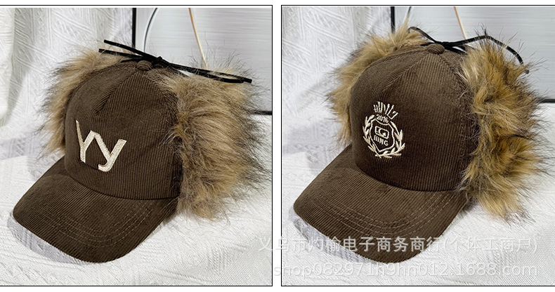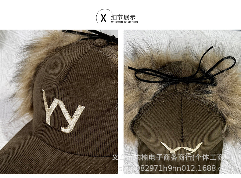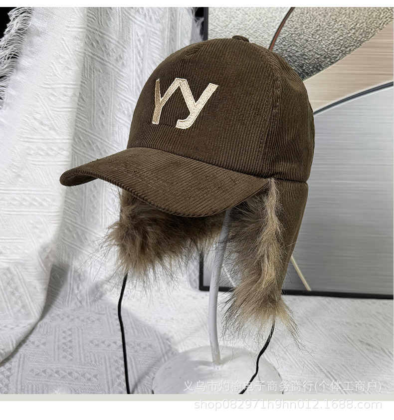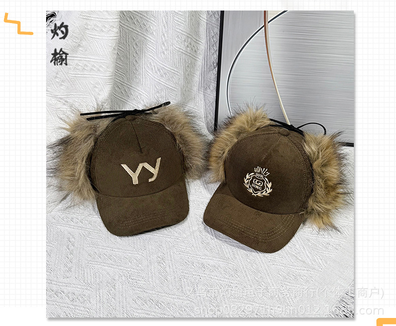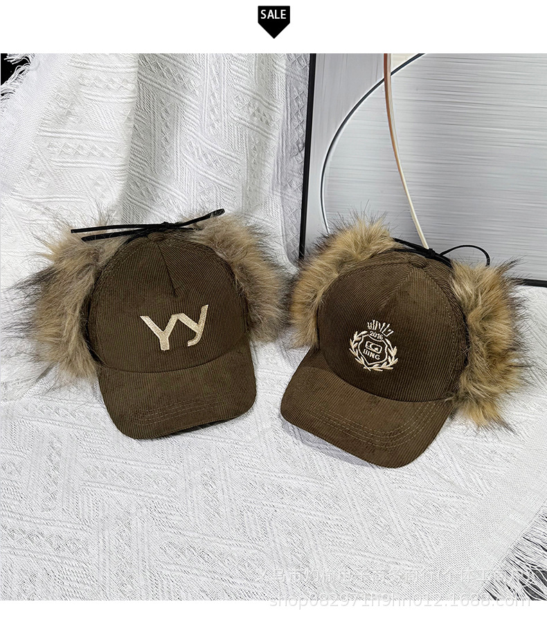 가을 겨울 신상품 Yy 자수 데칼 캡 캐주얼 플러시 귀 보호 코듀로이 야구 모자 여성용 따뜻한 큰 챙 모자