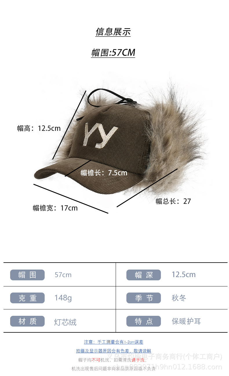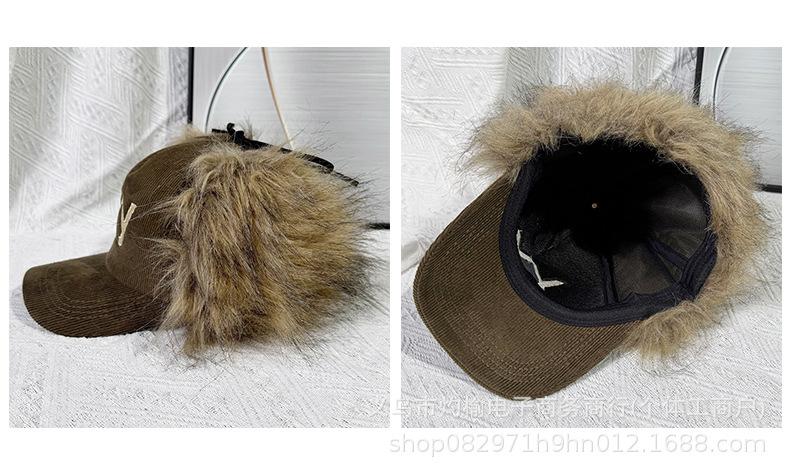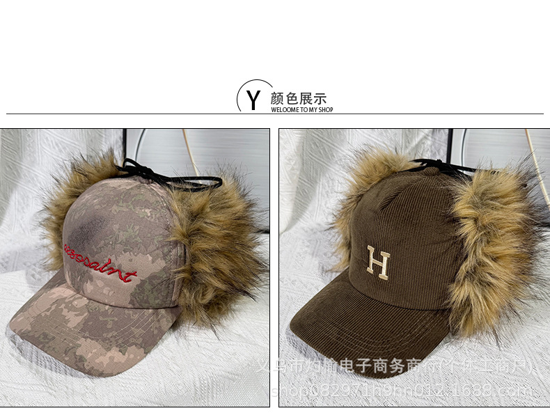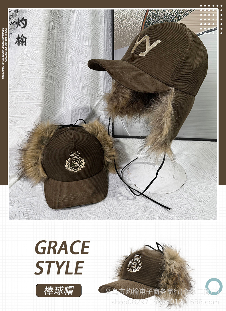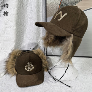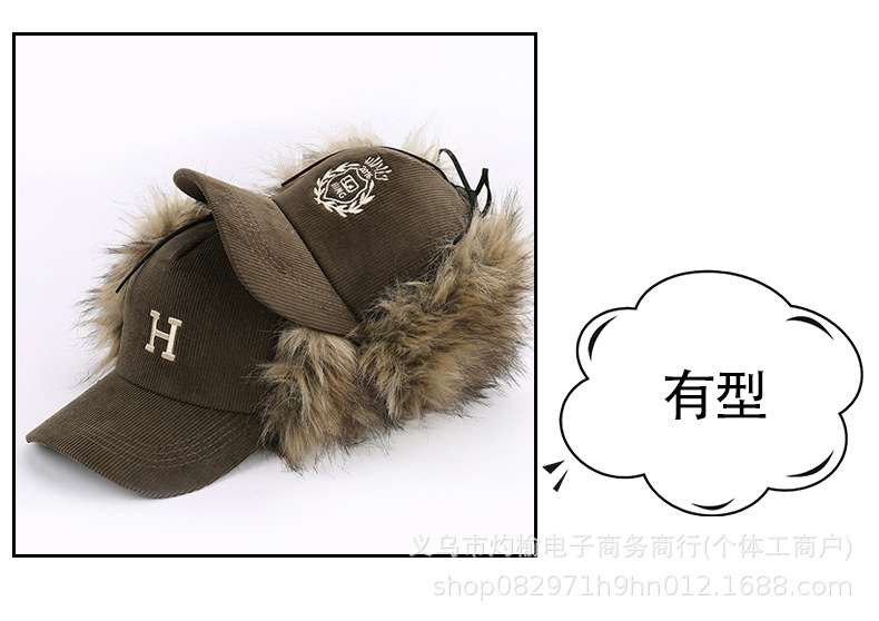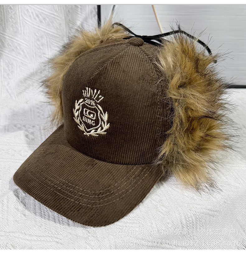가을 겨울 신상품 Yy 자수 데칼 캡 캐주얼 플러시 귀 보호 코듀로이 야구 모자 여성용 따뜻한 큰 챙 모자