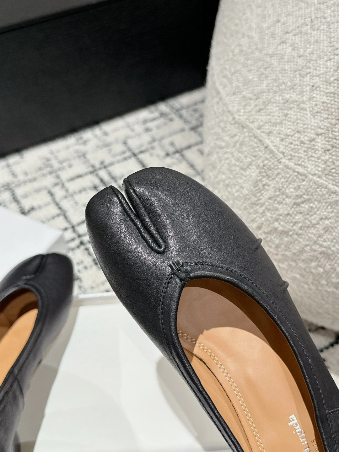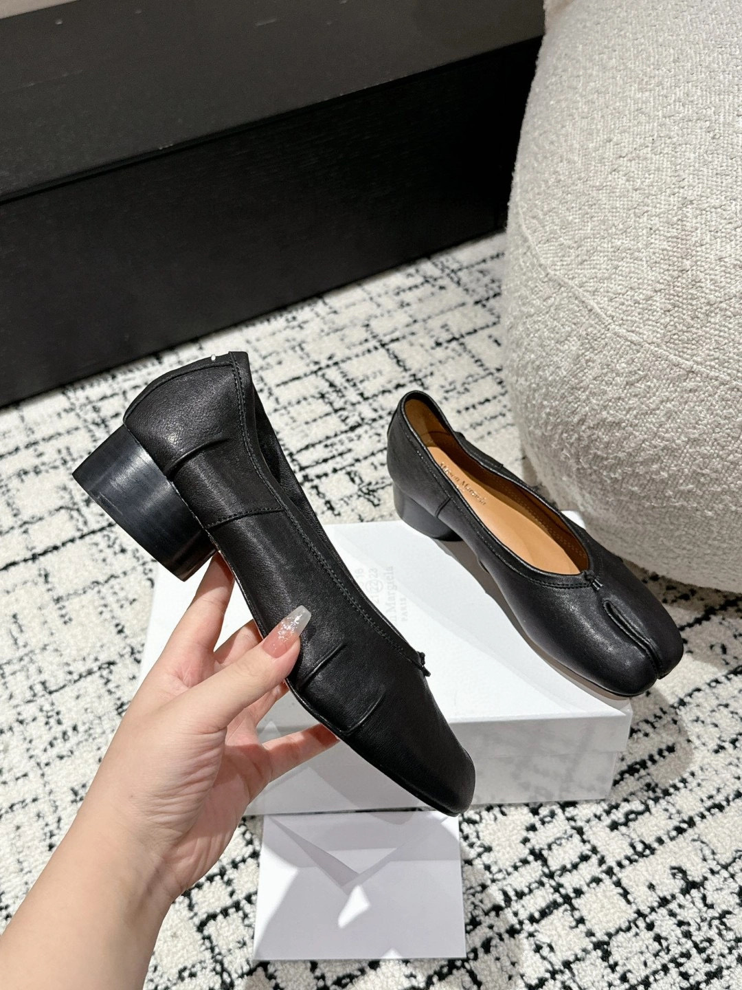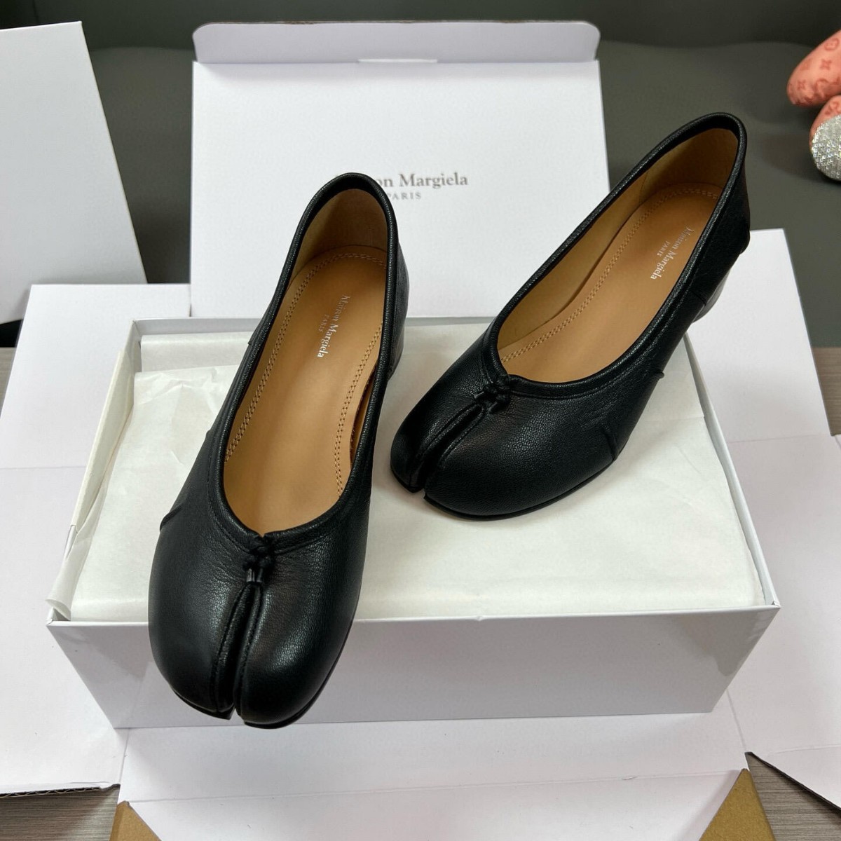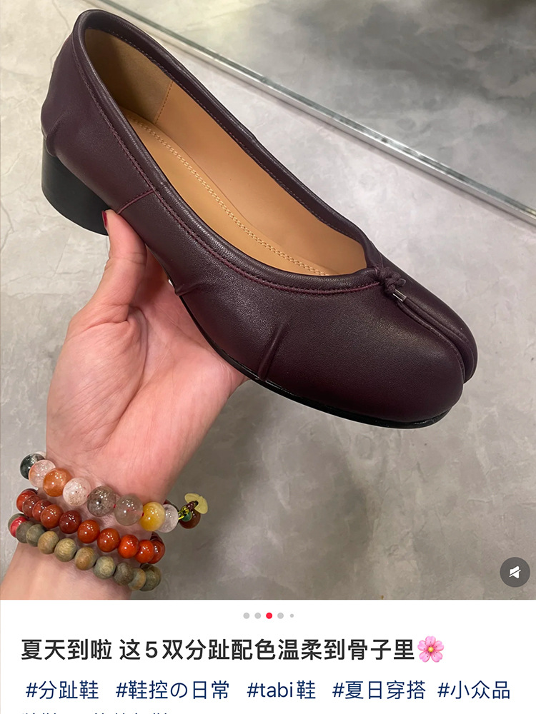 플리츠 풀 가죽 스플릿 토 MM6 플랫 발레 슈즈 플로럴 소가죽 마르지엘라 여성 캐주얼 슈즈