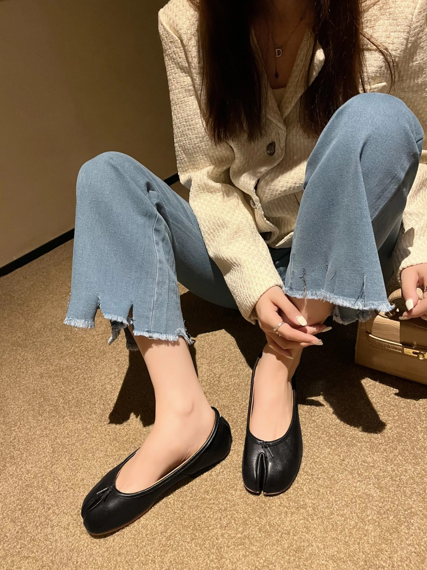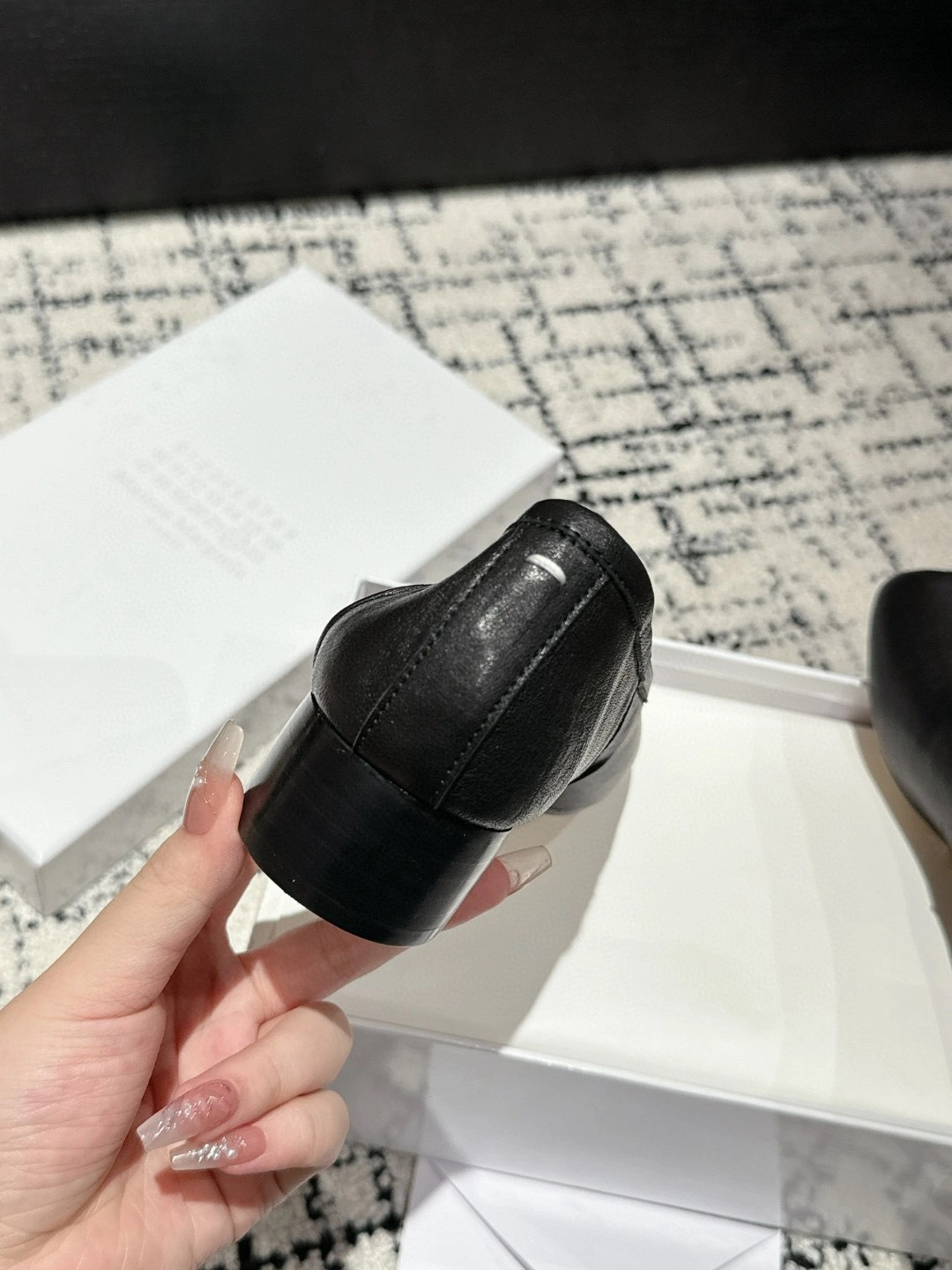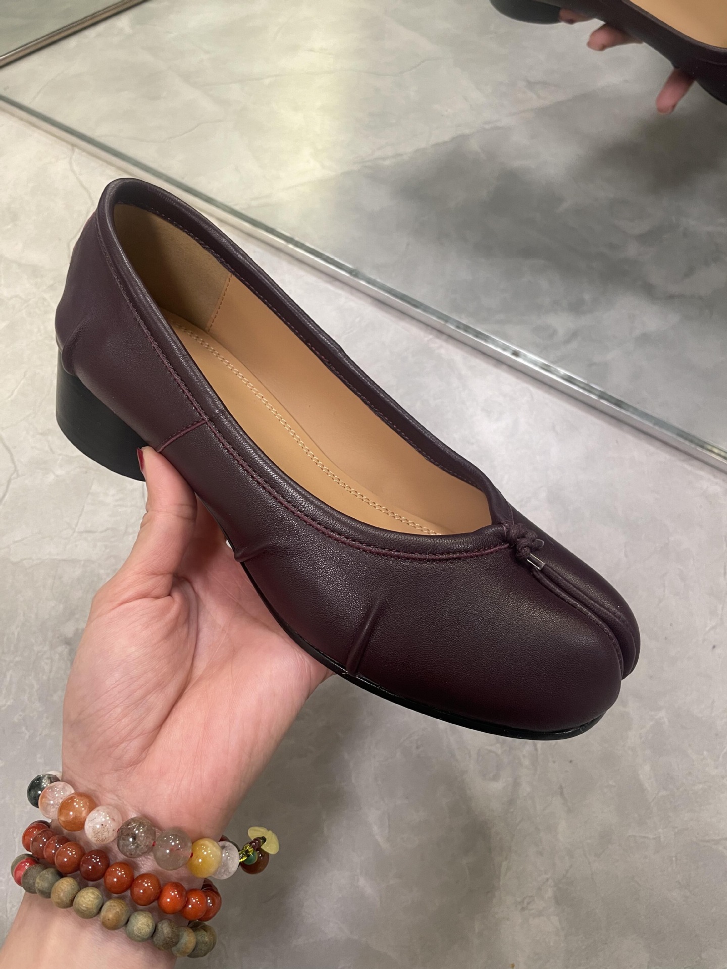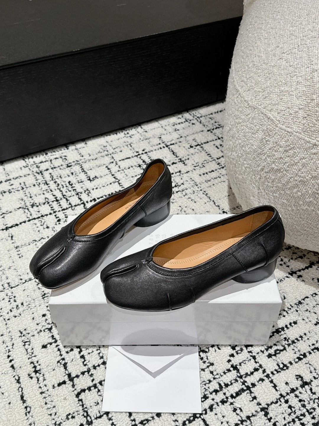 플리츠 풀 가죽 스플릿 토 MM6 플랫 발레 슈즈 플로럴 소가죽 마르지엘라 여성 캐주얼 슈즈
