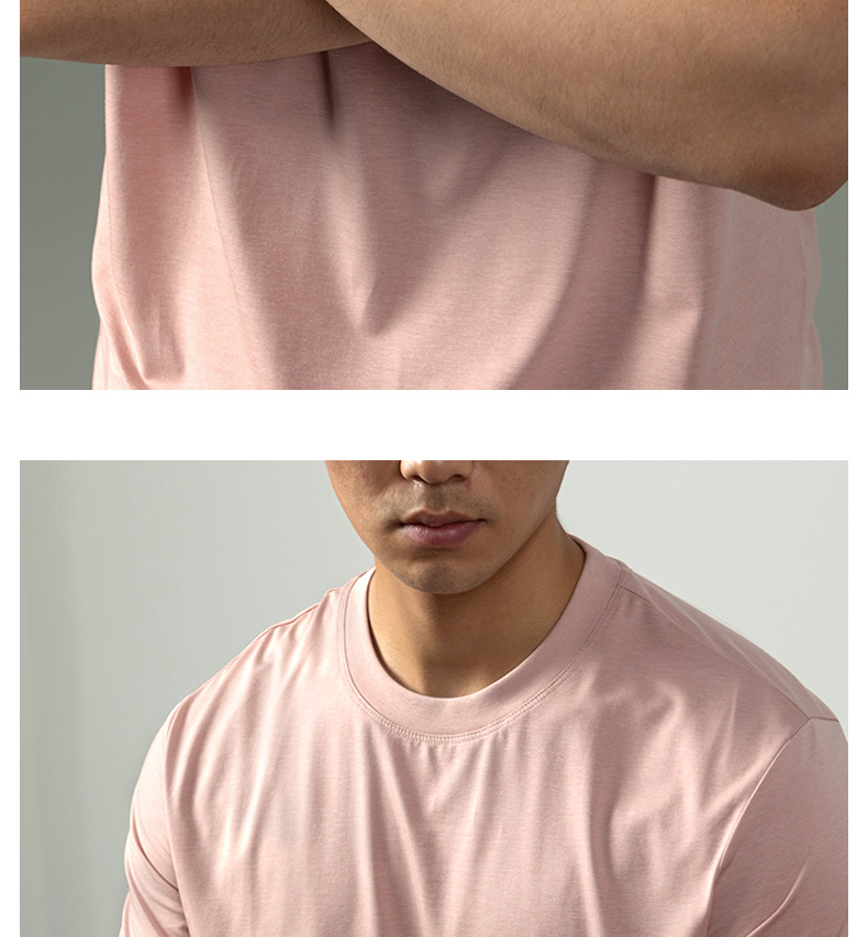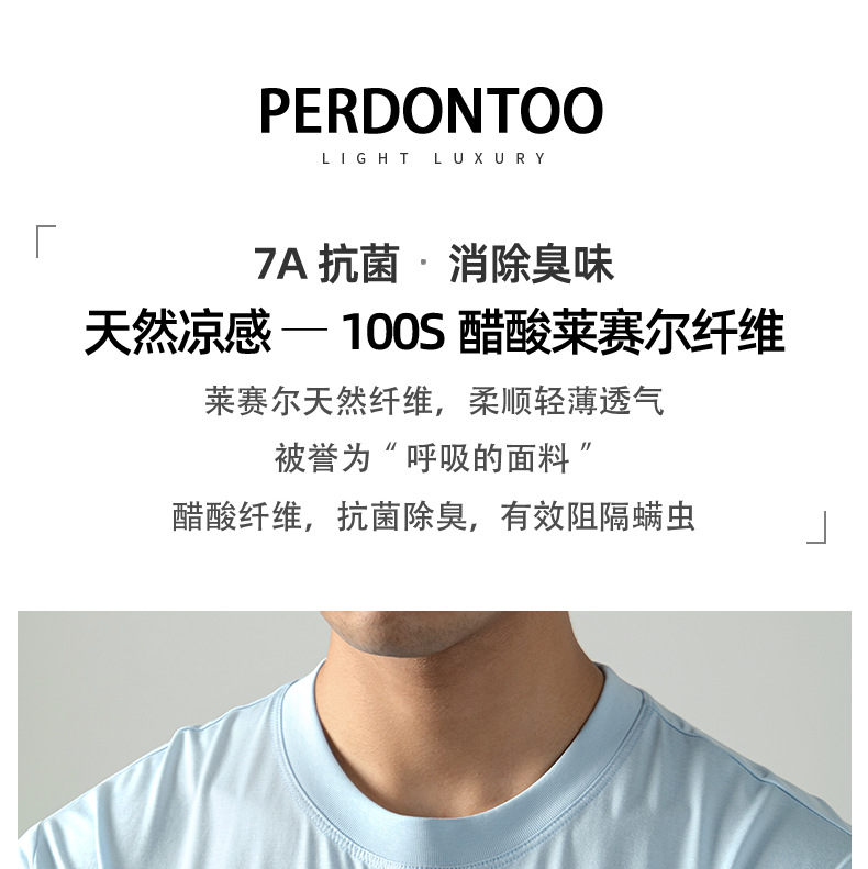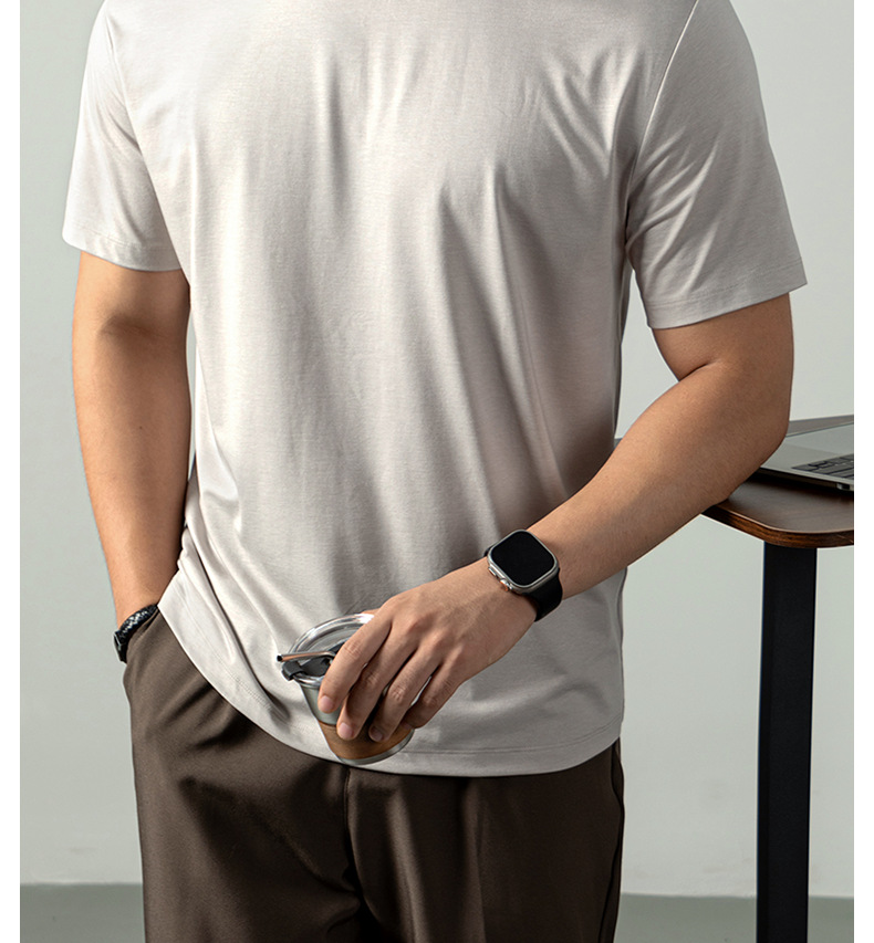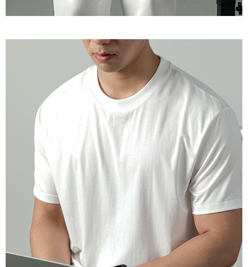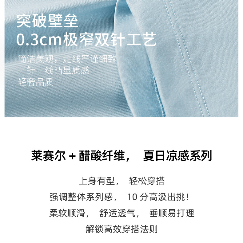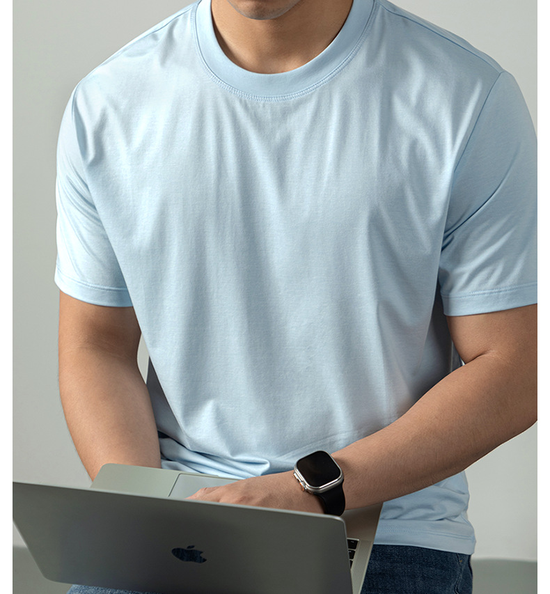 [아세트산+리오셀] 여름철 피부친화적이고 통기성이 좋으며 항균, 진드기 방지 기능을 갖춘 남성용 하이엔드 100S 쿨링 반팔 티셔츠