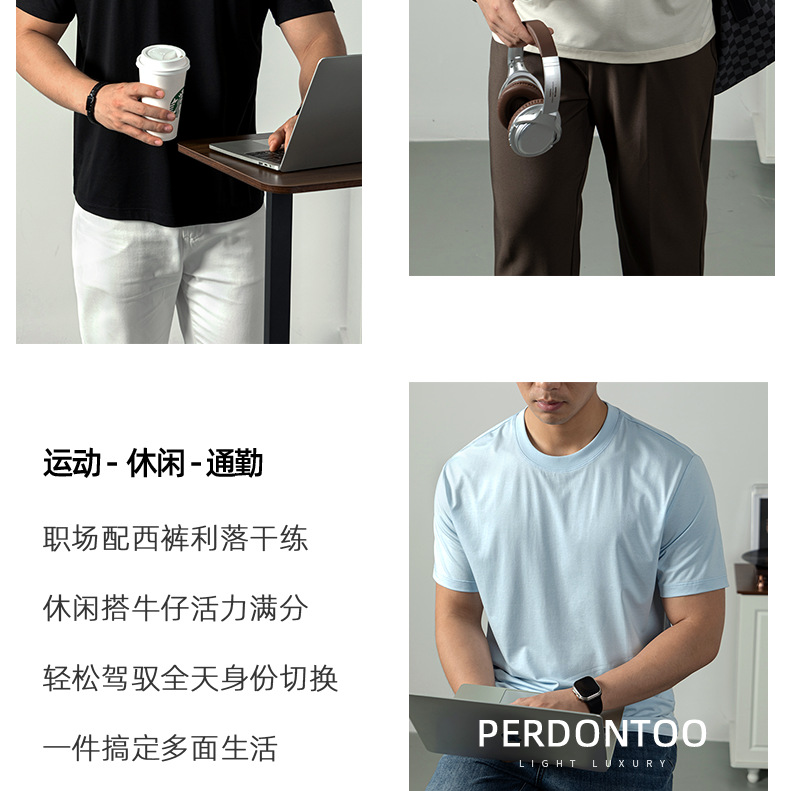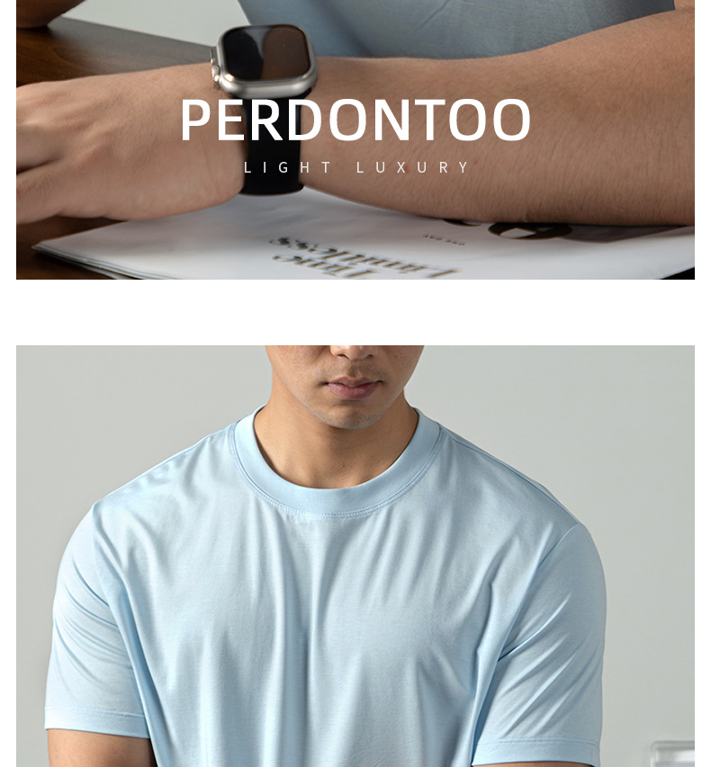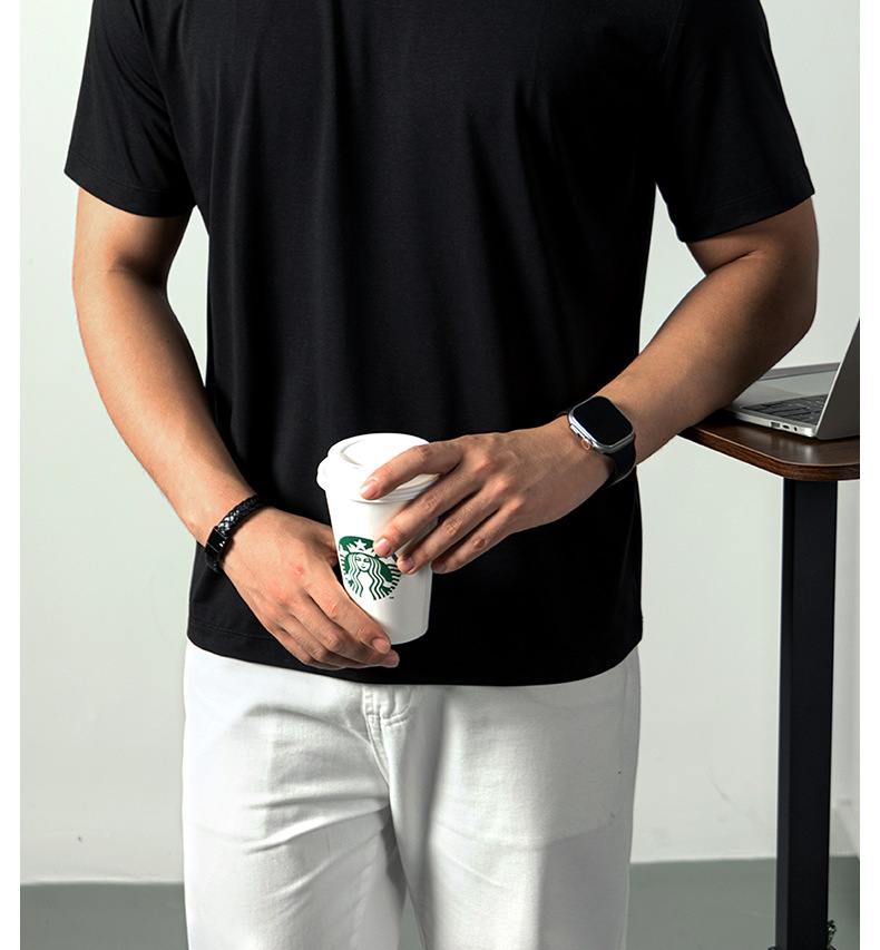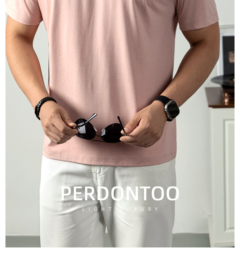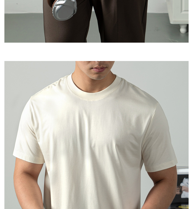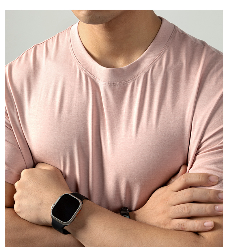 [아세트산+리오셀] 여름철 피부친화적이고 통기성이 좋으며 항균, 진드기 방지 기능을 갖춘 남성용 하이엔드 100S 쿨링 반팔 티셔츠