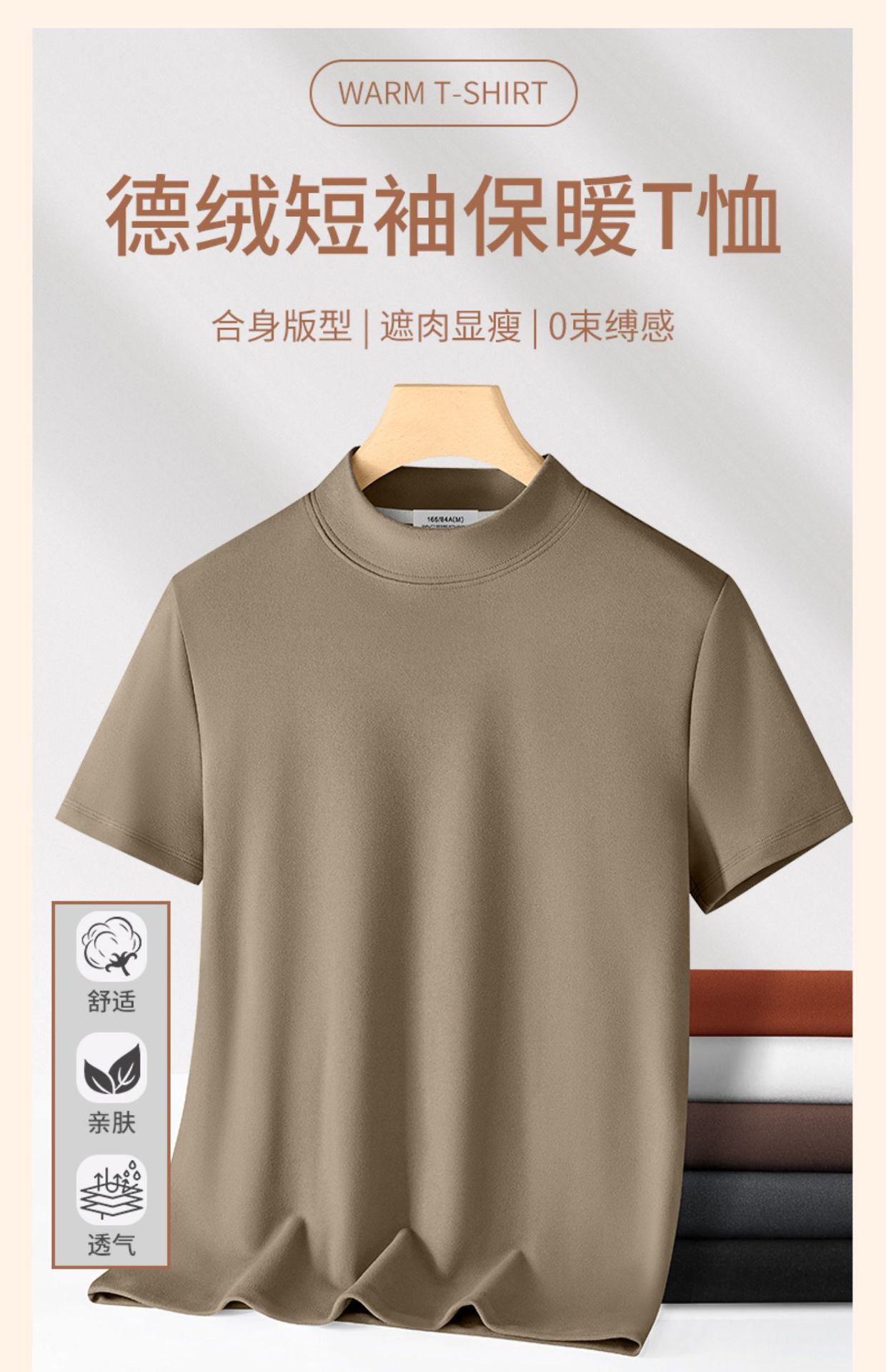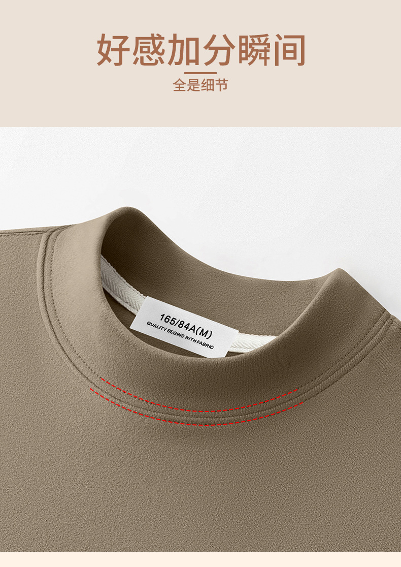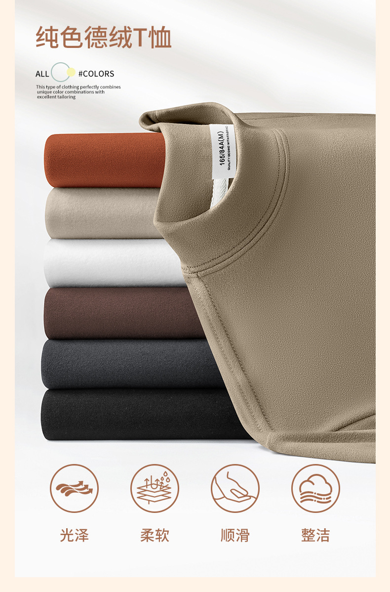 하프 터틀넥 독일 벨벳 바닥 셔츠 남성용 반팔 티셔츠 가을 겨울 벨벳 안티 진드기 따뜻한 중간 칼라 반팔 탑