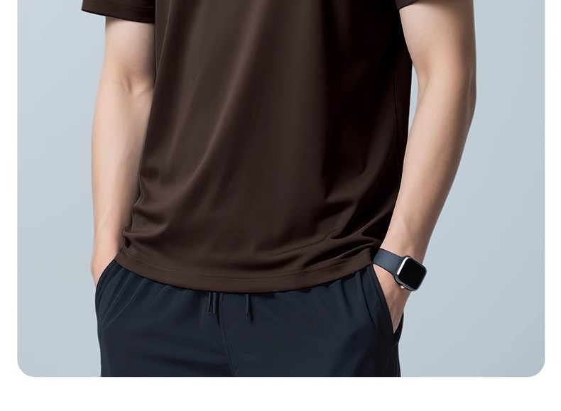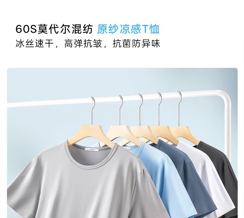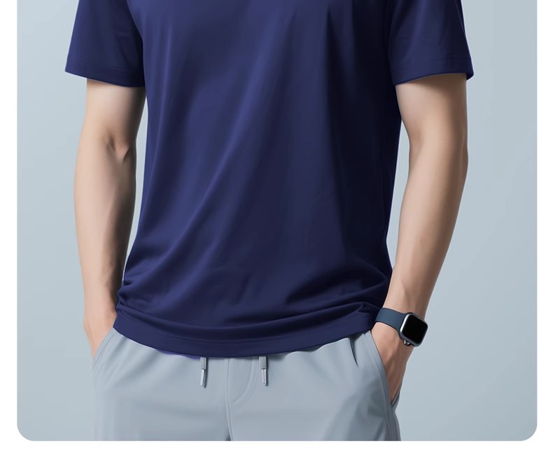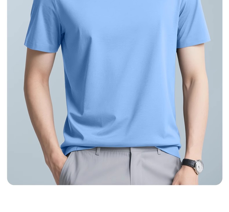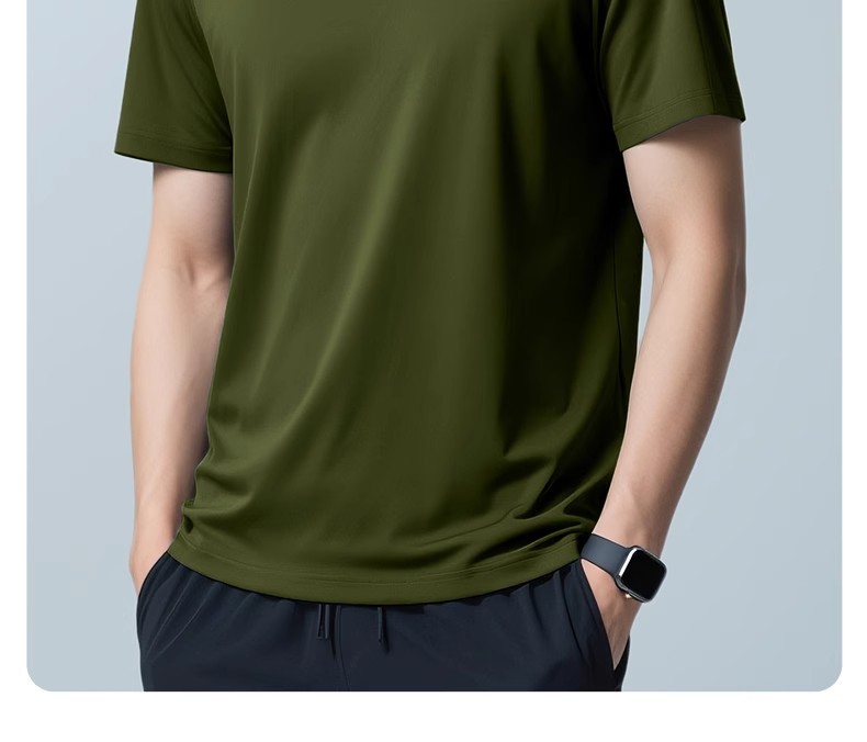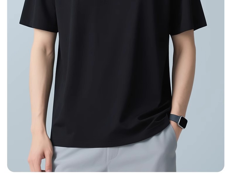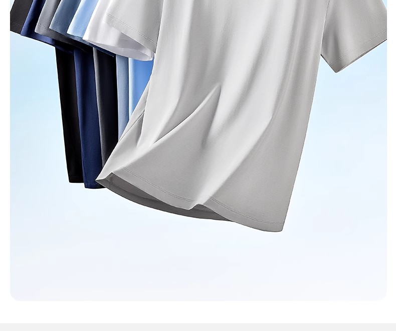 60 카운트 아이스 실크 모달 코튼 반팔 라운드 넥 티셔츠 남성용 여름 시원한 속건성 통기성 솔리드 컬러 얇은 티셔츠