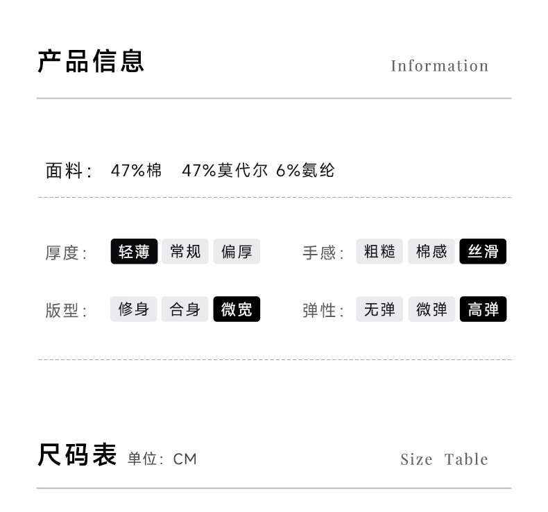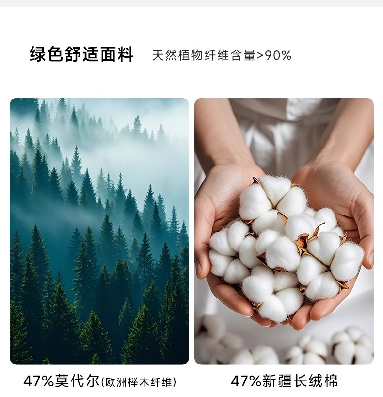 | 面料名称 | 47%莫代尔47%棉6%氨纶 | 主面料成分的含量 | 47 |