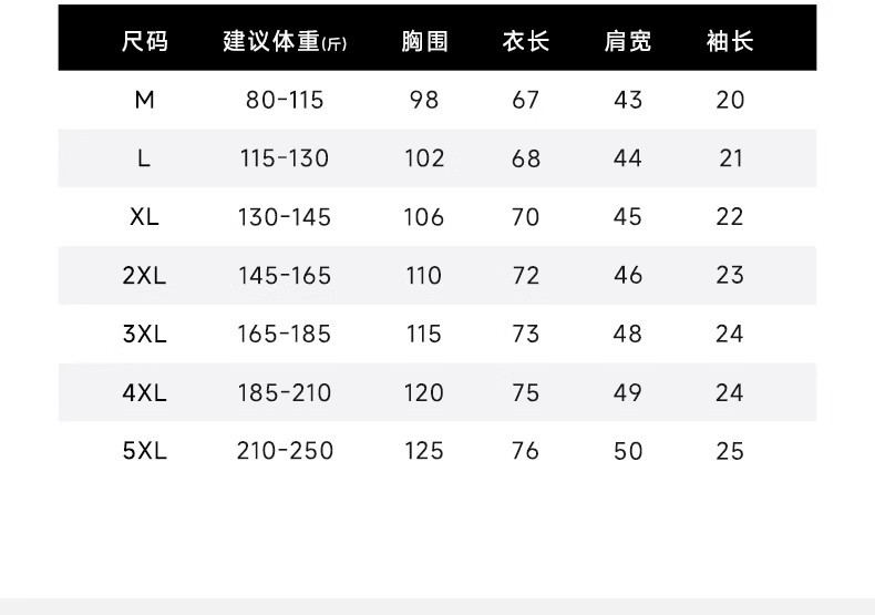 | 颜色 | 黑色, 白色, 深灰色, 浅灰色, 宝蓝色, 军绿色, 咖啡色, 浅蓝色, 枣红色, 中灰色, 牛仔蓝 | 尺码 | M, L, XL, 2XL, 3XL, 4XL, 5XL |