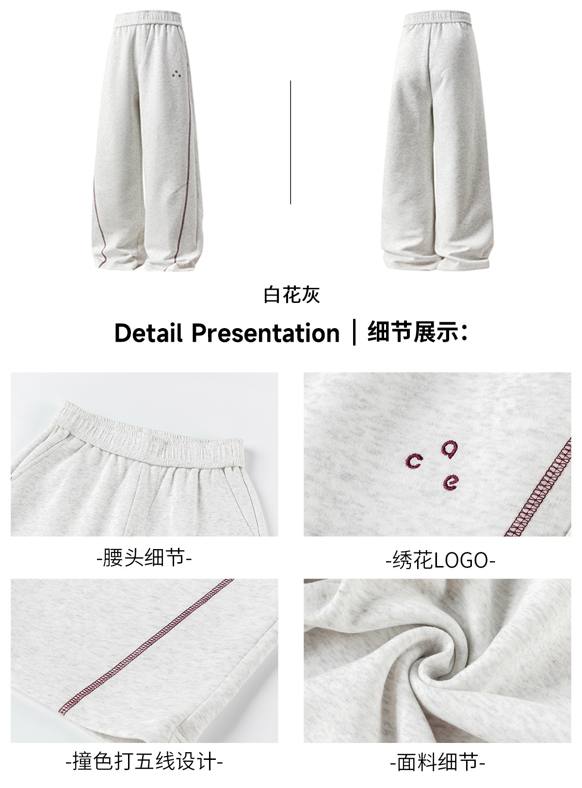 | 弹力 | 微弹 | 颜色 | 白花灰, 黑色, 安可拉红 |