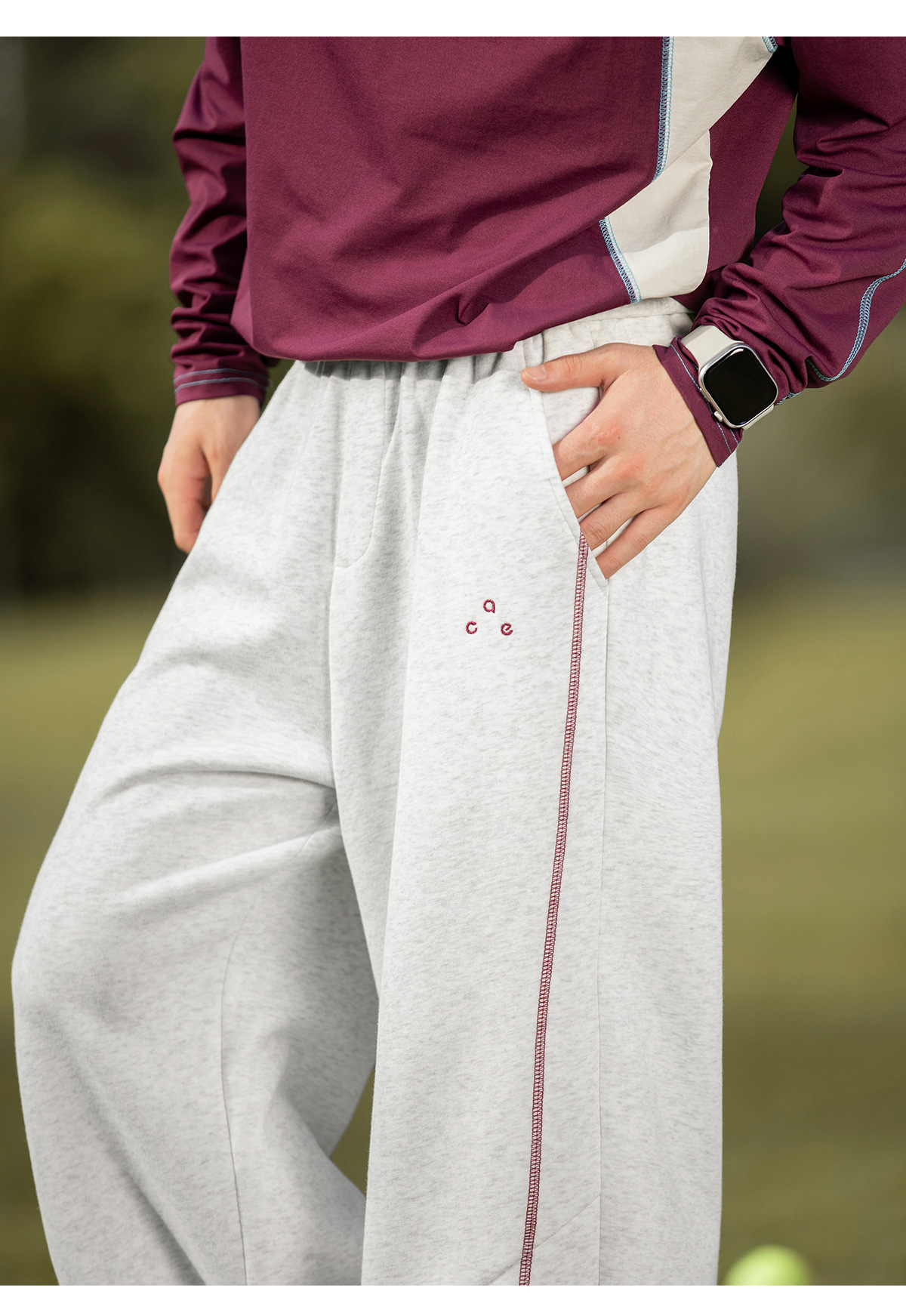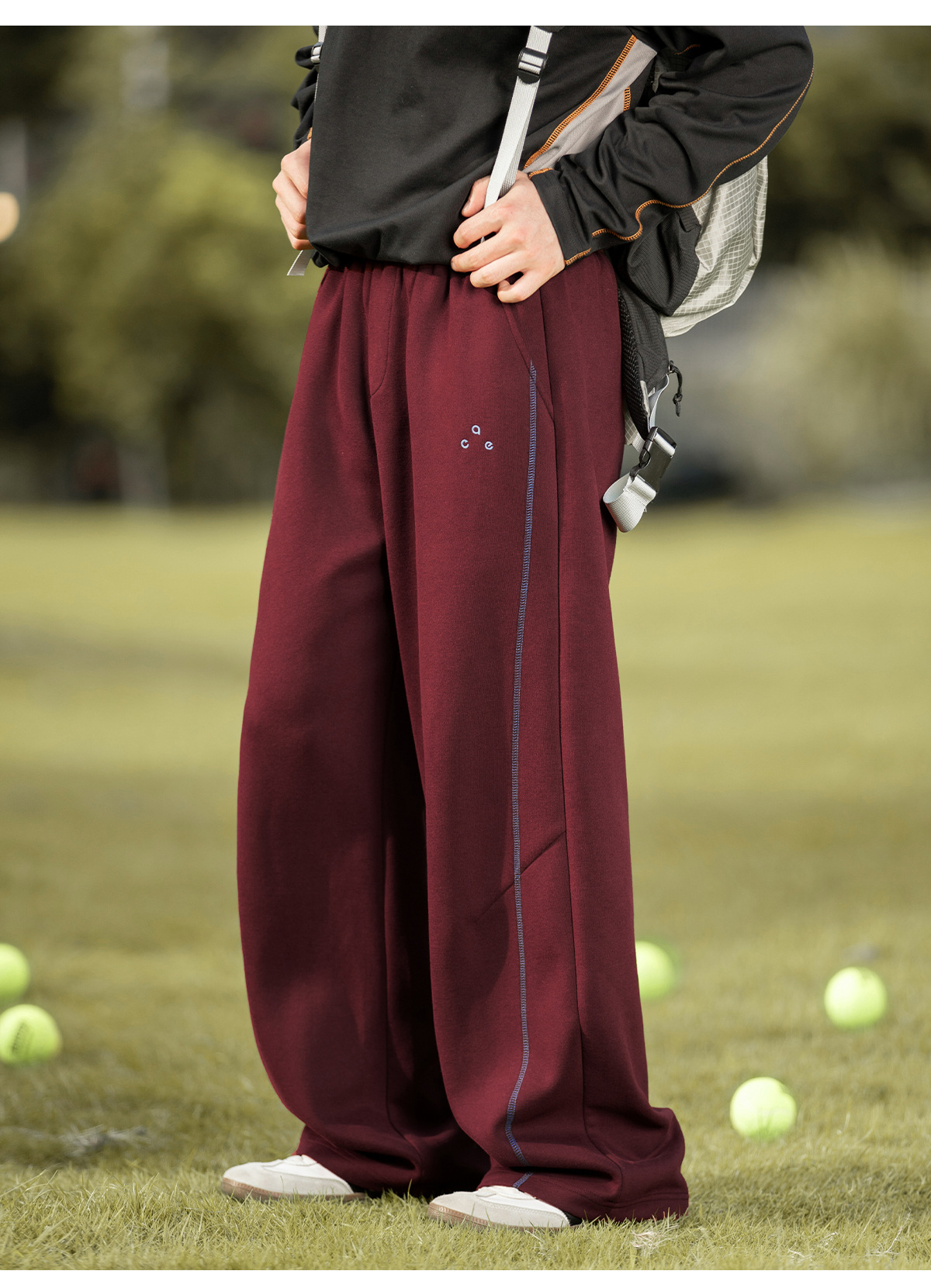 대비되는 색상의 5라인 헤비 텍스처 아메리칸 캐주얼 바지 남성 가을 스트레이트 루즈 스포츠 바지 트렌디 브랜드 자수 스웨트팬츠
