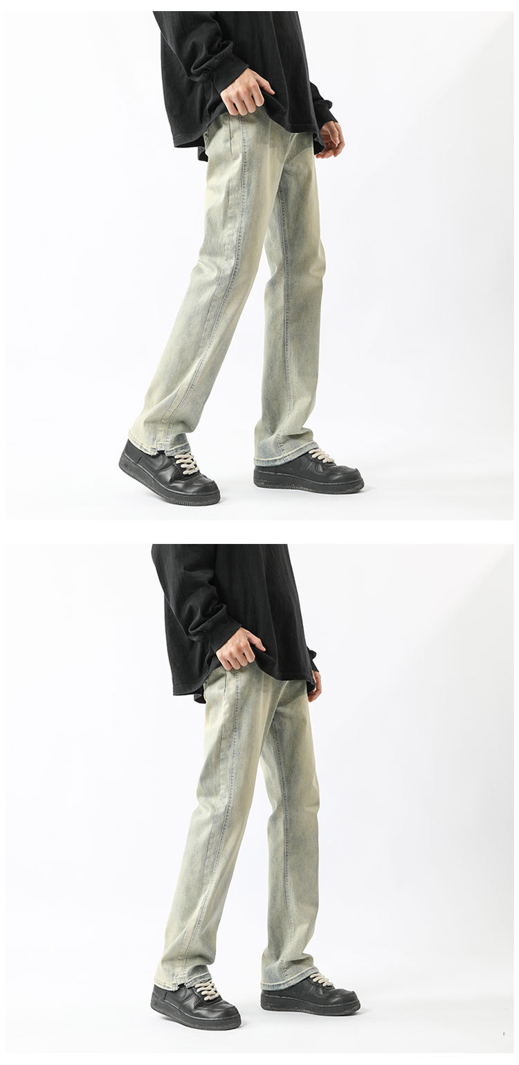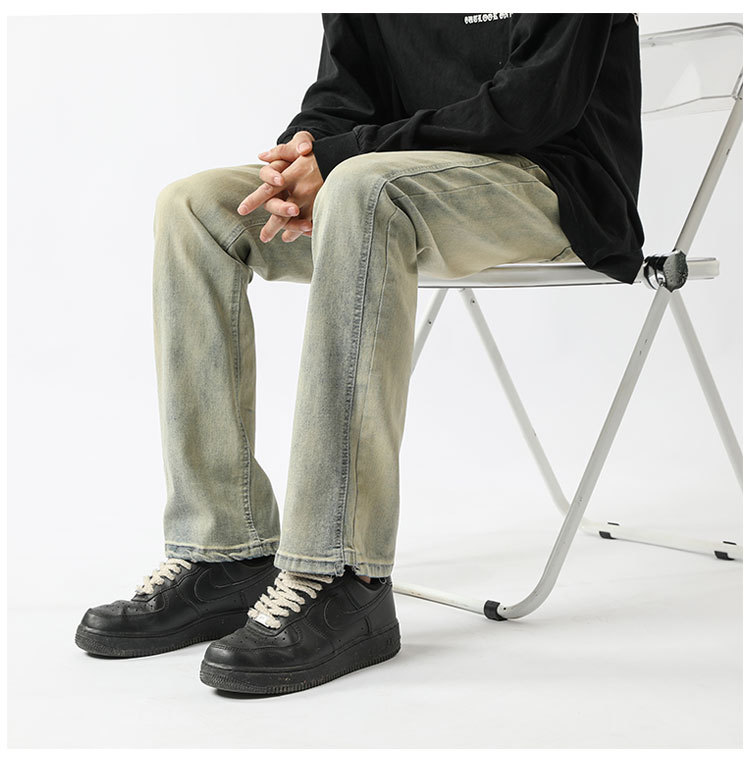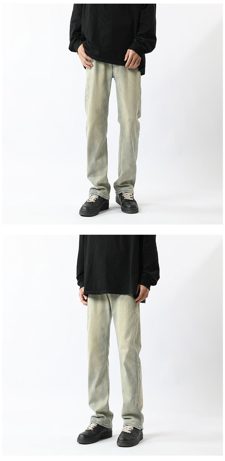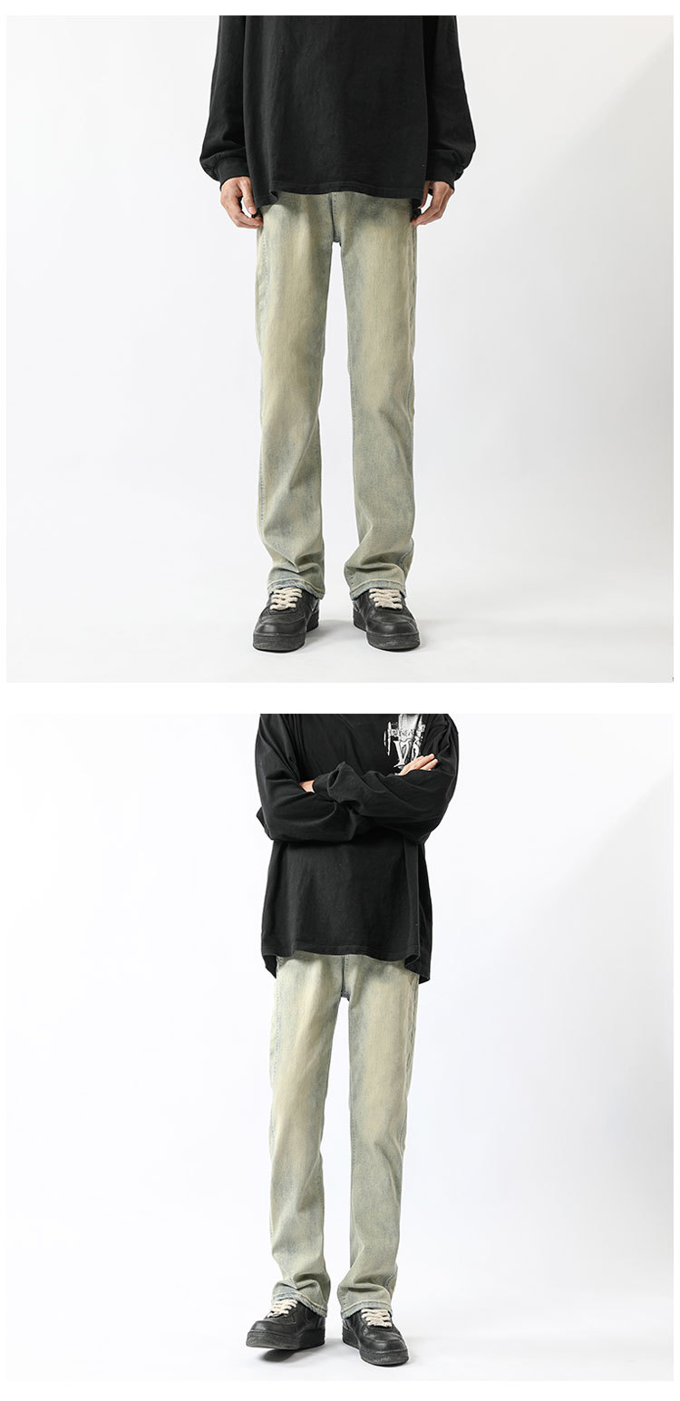 아메리칸 하이 스트리트 팬츠 클린핏 옐로우 머드 진 봄, 가을 트렌디 브랜드 캐주얼 바지 네로우 버전 워싱 스트레이트 팬츠