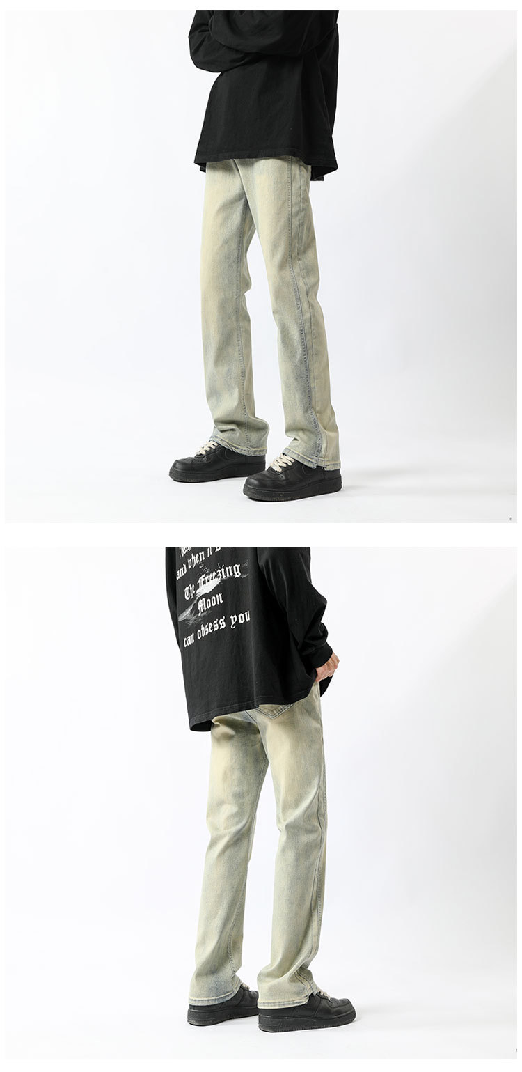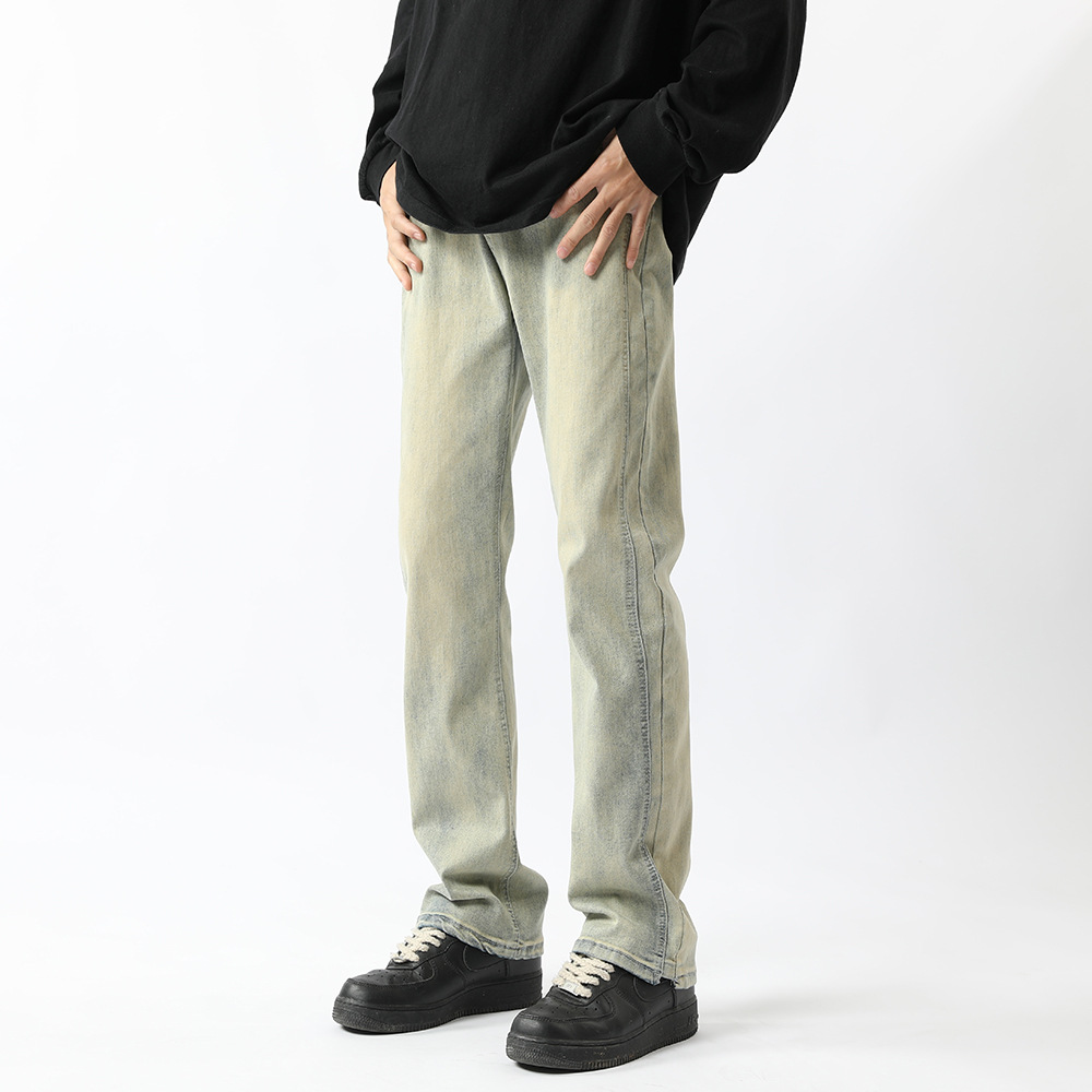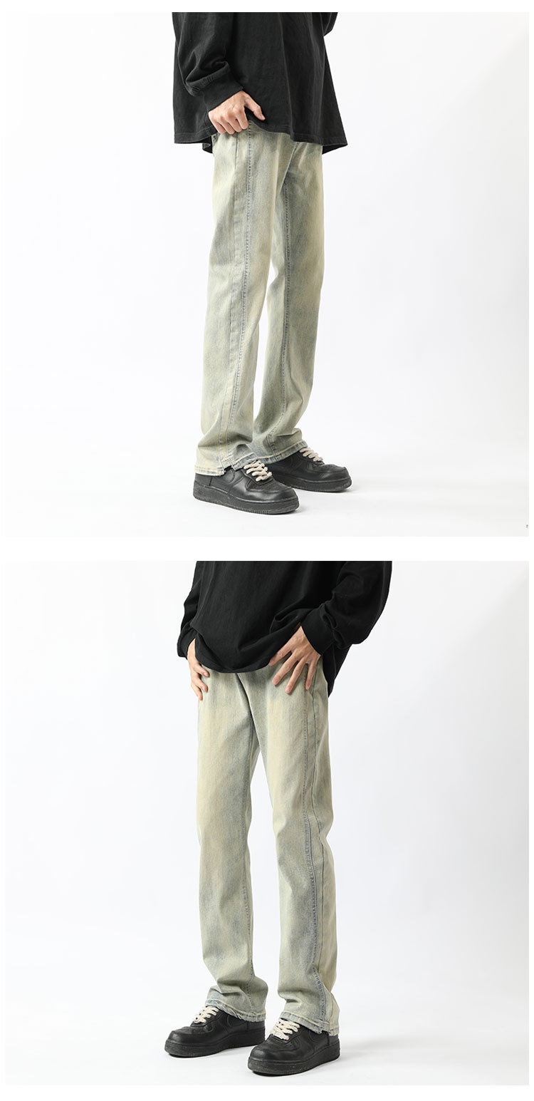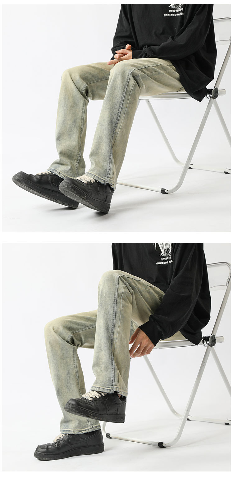 아메리칸 하이 스트리트 팬츠 클린핏 옐로우 머드 진 봄, 가을 트렌디 브랜드 캐주얼 바지 네로우 버전 워싱 스트레이트 팬츠