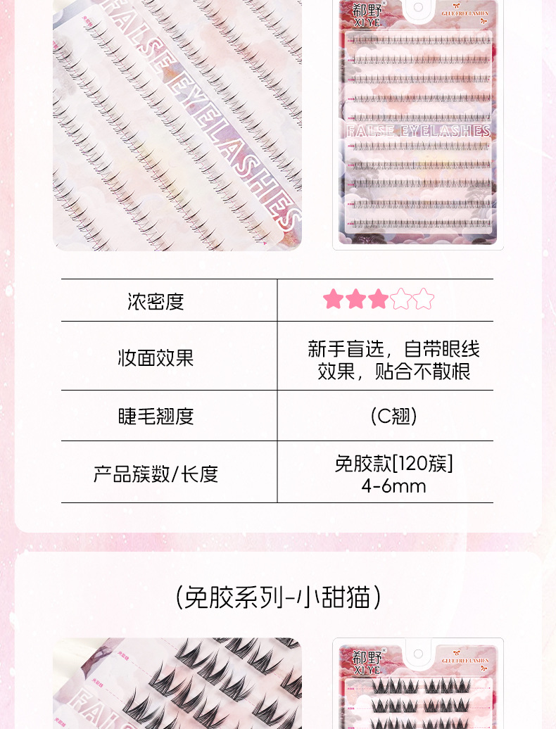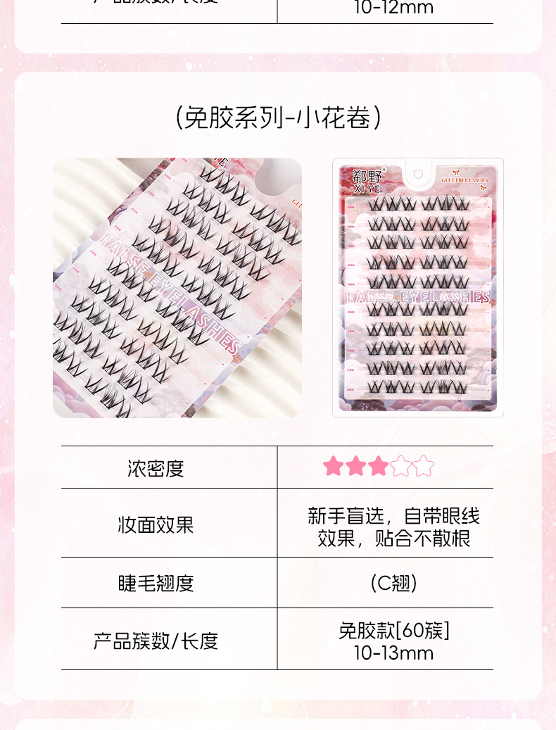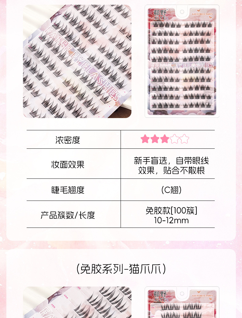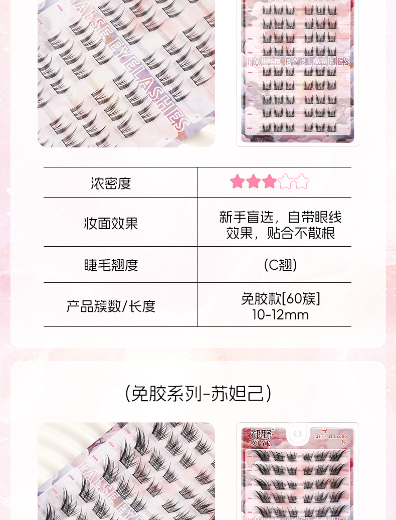 | 规格 | 10排免胶折盒-大花卷, 10排免胶折盒-女团ACE, 10排免胶折盒-向日葵, 10排免胶折盒-黑金萝莉, 10排免胶折盒-孔雀鱼, 10排免胶折盒-懒人三部曲, 10排免胶折盒-猫精灵, 10排免胶折盒-猫爪下睫毛, 10排免胶折盒-浓密秋枫叶, 10排免胶折盒-猫爪, 10排免胶折盒-旺旺犬, 10排免胶折盒-三连鱼, 10排免胶折盒-山茶花, 10排免胶折盒-双尖麦穗, 10排免胶折盒-淘气精灵, 10排免胶折盒-女太阳花, 10排免胶折盒-小花卷, 10排免胶折盒-小火苗下睫毛, 10排免胶折盒-小甜猫, 10排免胶折盒-小野猫下睫毛, 粉丝镊子 | 主要下游平台 | 亚马逊, 速卖通, 独立站 |