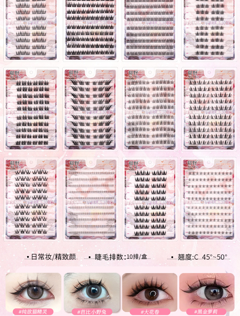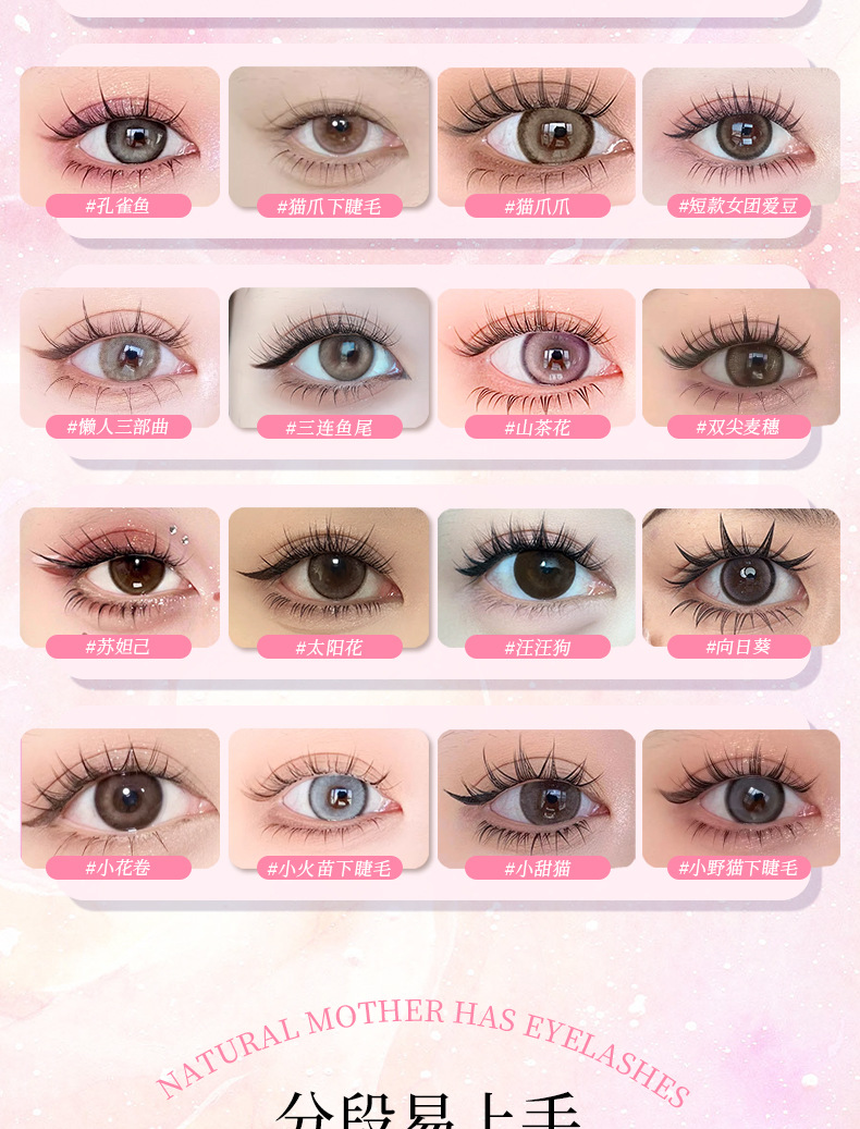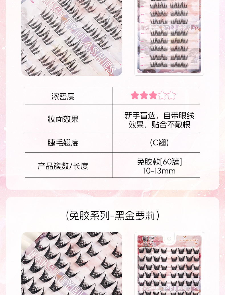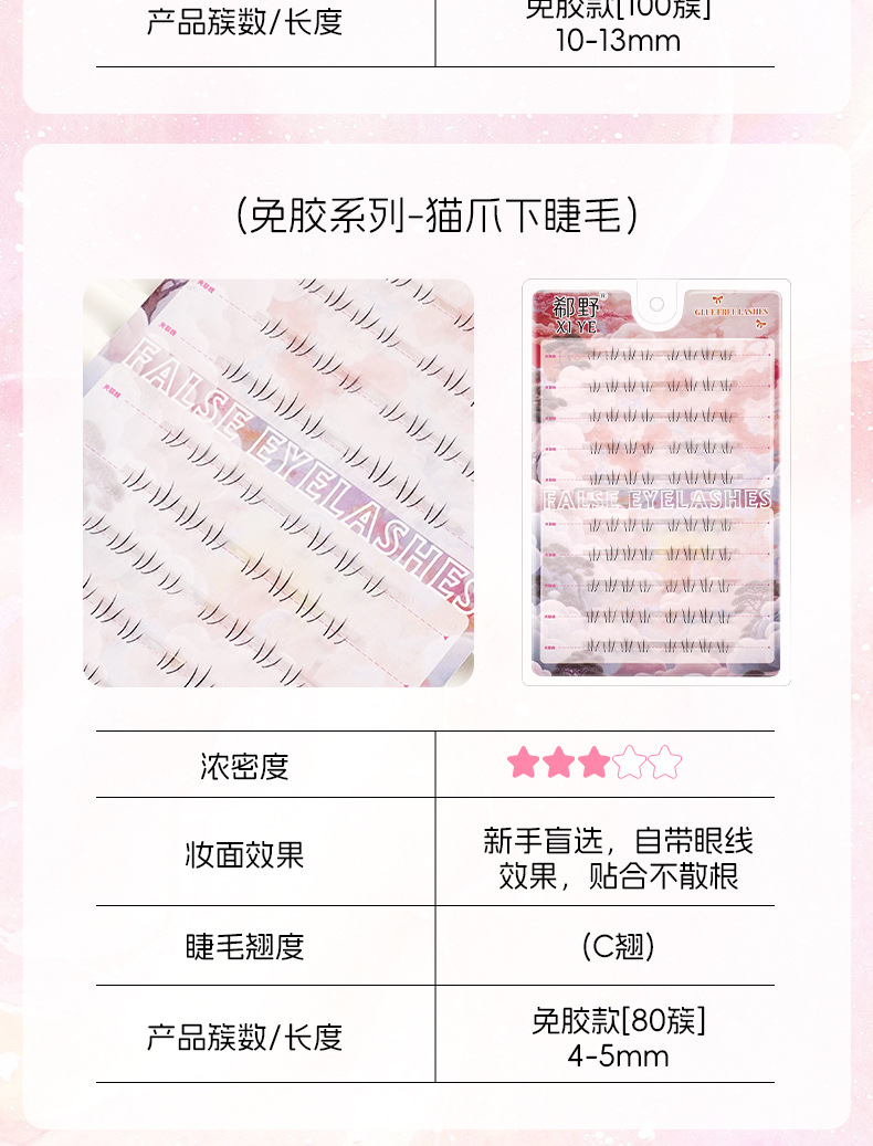 | 规格 | 10排免胶折盒-大花卷, 10排免胶折盒-女团ACE, 10排免胶折盒-向日葵, 10排免胶折盒-黑金萝莉, 10排免胶折盒-孔雀鱼, 10排免胶折盒-懒人三部曲, 10排免胶折盒-猫精灵, 10排免胶折盒-猫爪下睫毛, 10排免胶折盒-浓密秋枫叶, 10排免胶折盒-猫爪, 10排免胶折盒-旺旺犬, 10排免胶折盒-三连鱼, 10排免胶折盒-山茶花, 10排免胶折盒-双尖麦穗, 10排免胶折盒-淘气精灵, 10排免胶折盒-女太阳花, 10排免胶折盒-小花卷, 10排免胶折盒-小火苗下睫毛, 10排免胶折盒-小甜猫, 10排免胶折盒-小野猫下睫毛, 粉丝镊子 | 主要下游平台 | 亚马逊, 速卖通, 独立站 |