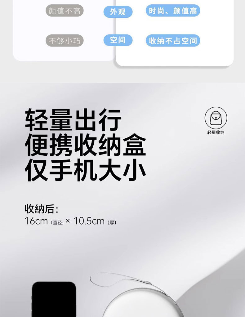 | 颜色 | 薄荷绿, 天空蓝, 高级灰, 樱花粉, 薄荷绿+收纳袋, 天空蓝+收纳袋, 高级灰+收纳袋, 樱花粉+收纳袋, 薄荷绿+收纳盒, 天空蓝+收纳盒, 高级灰+收纳盒, 樱花粉+收纳盒 | 是否有专利 | 否 |