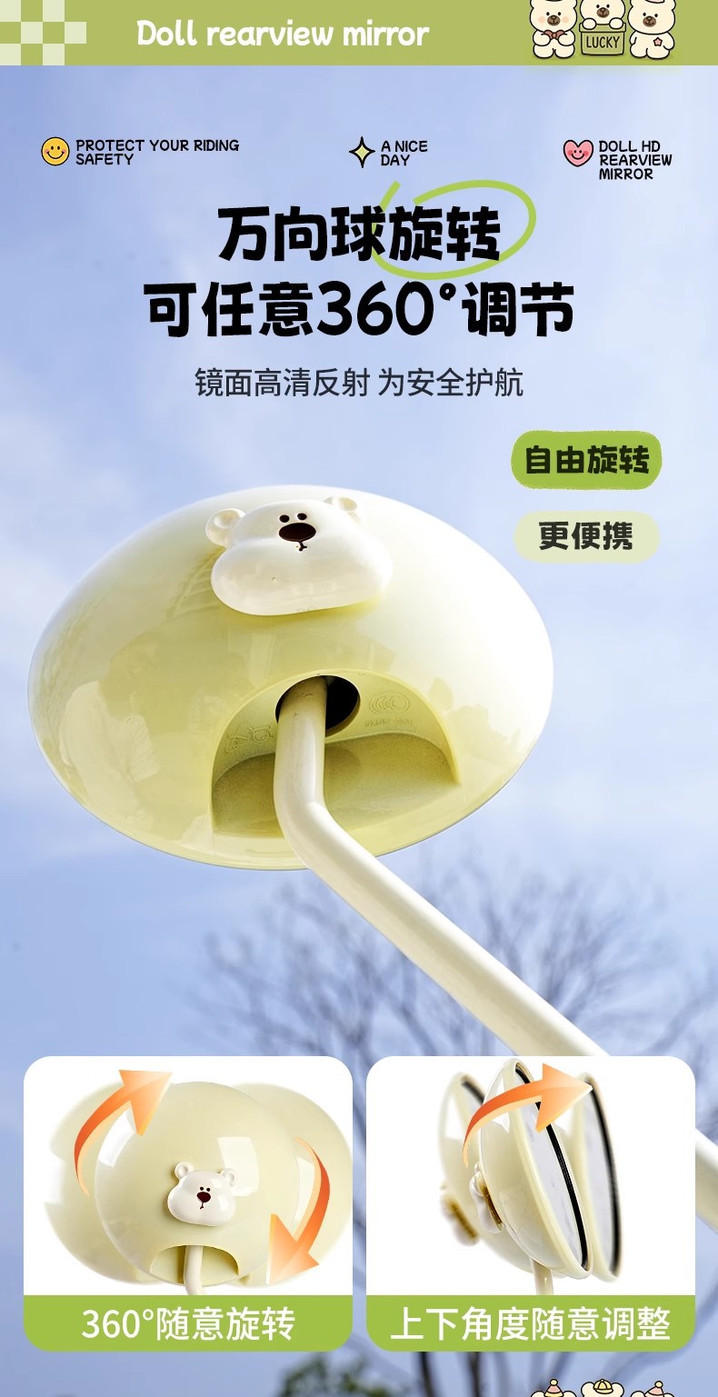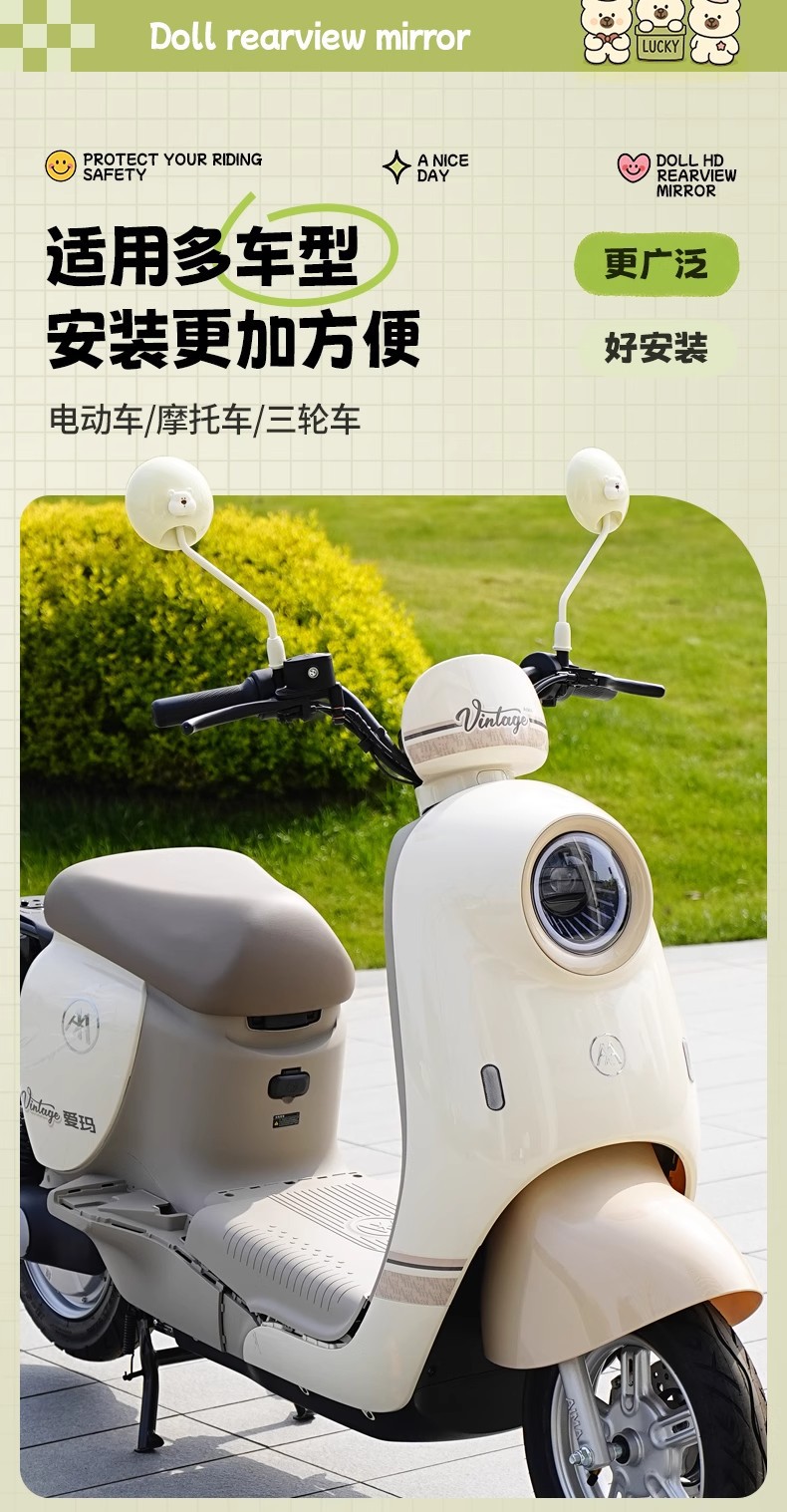 전기 자동차 백미러 배터리 자동차 Emma Yadi 범용 대형 시야 HD 반사 거울 귀여운 반전 거울