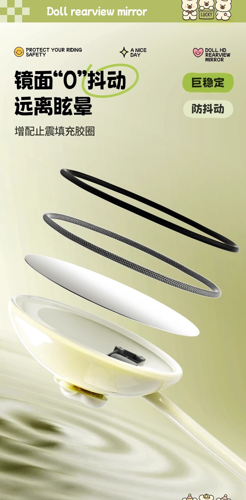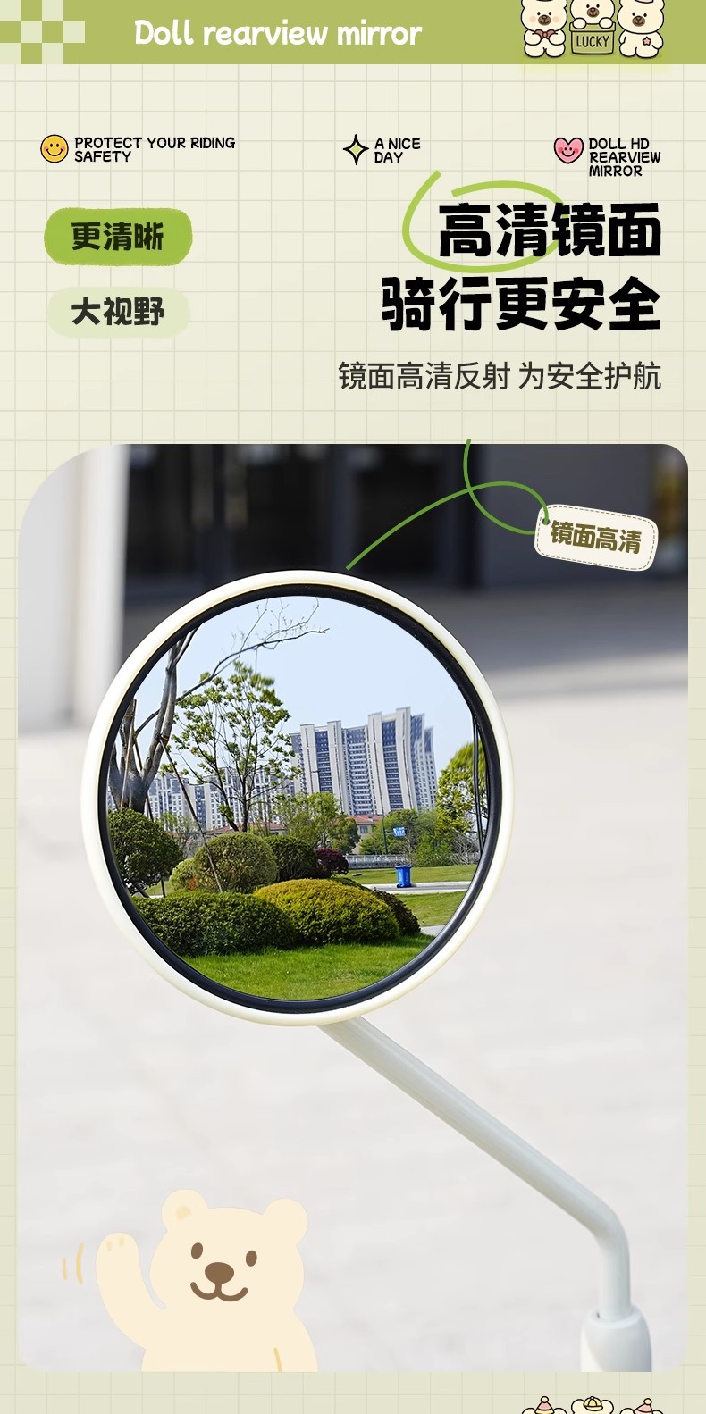 대형 백미러 - 연두색 8MM + 미러 홀더 [3C 인증 - 파손 보장]
