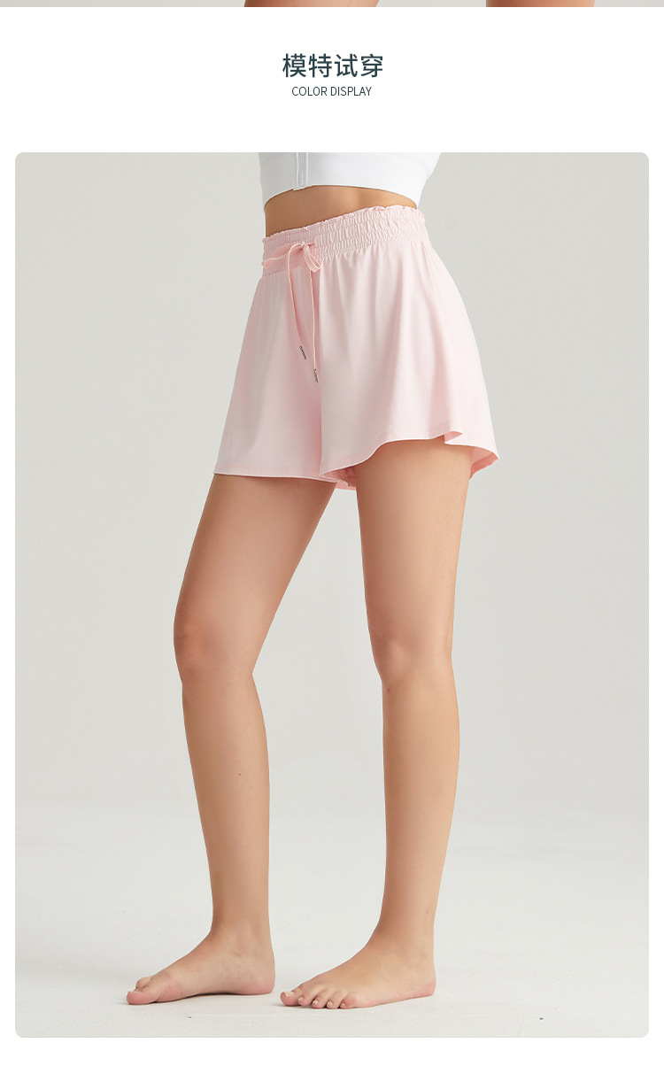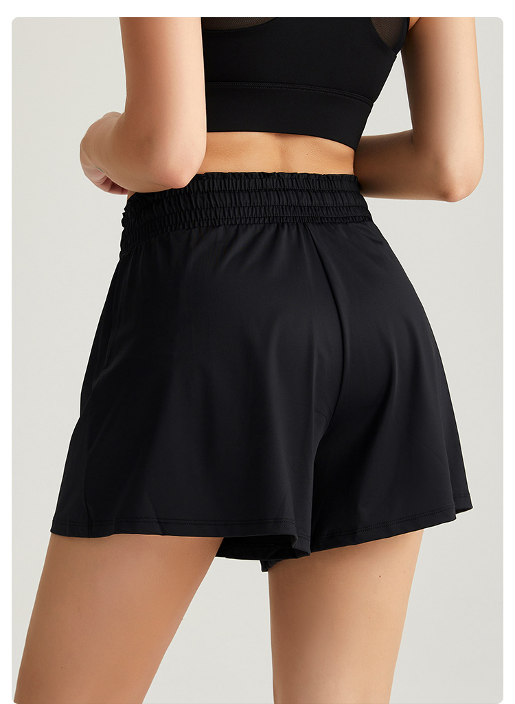 Chuanton 스포츠 반바지 여성 피트니스 고탄성 속건성 요가 반바지 하이 웨이스트 배 컨트롤은 외부에서 착용 가능 러닝 와이드 레그 스커트