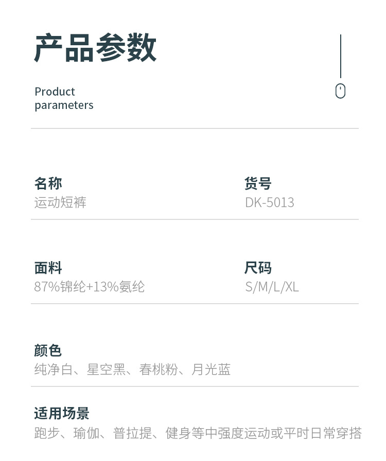 | 材质成分 | 87%锦纶+13%氨纶 | 颜色 | DK-5013纯净白, DK-5013星空黑, DK-5013春桃粉, DK-5013月光蓝 |