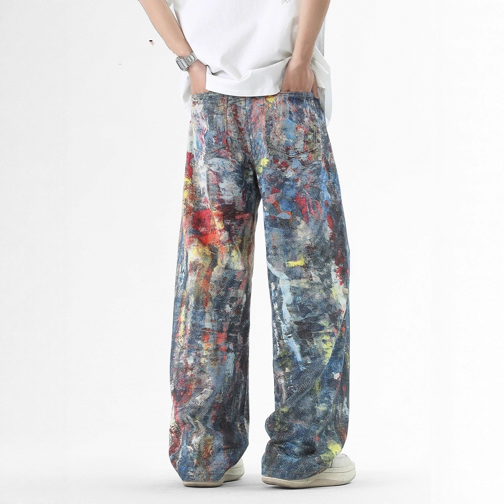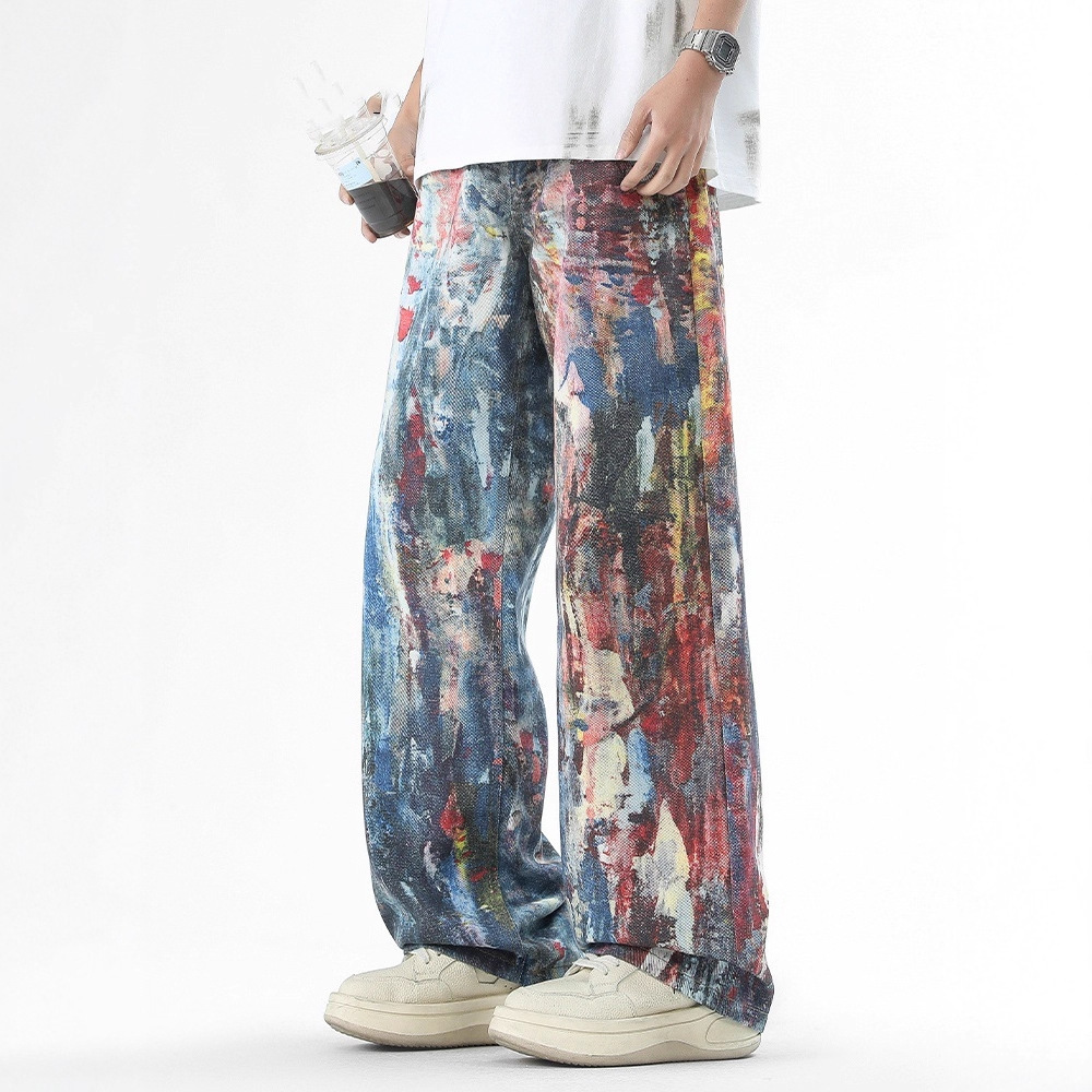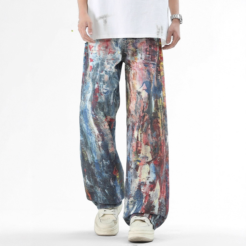 공장 직접 공급 [Ju Jingyi와 같은 스타일] 여름 그래피티 도파민 청바지 남성용 얇은 Yuanyang 캐주얼 바지 트렌디