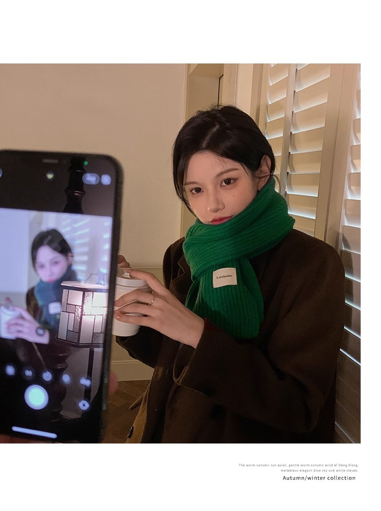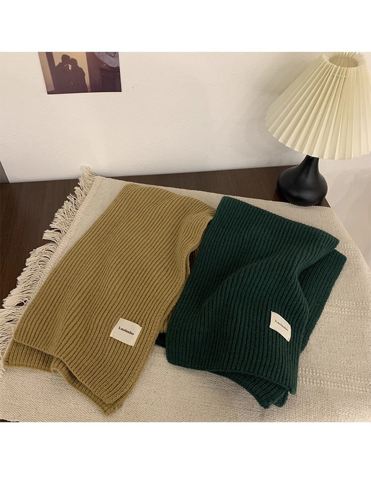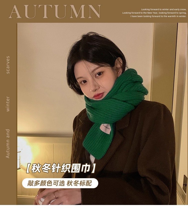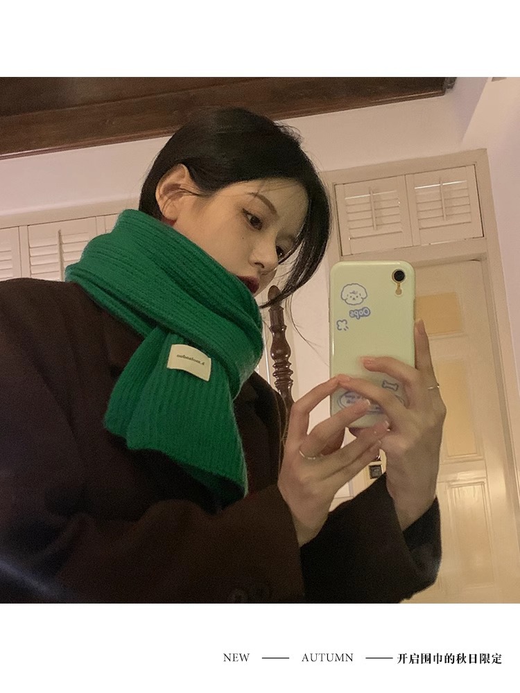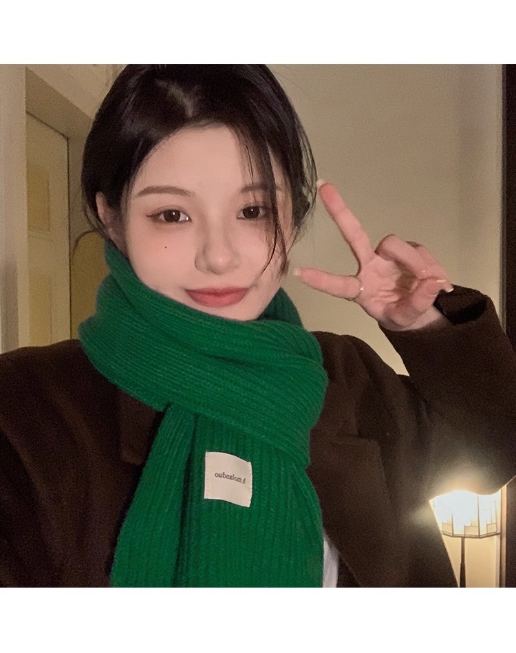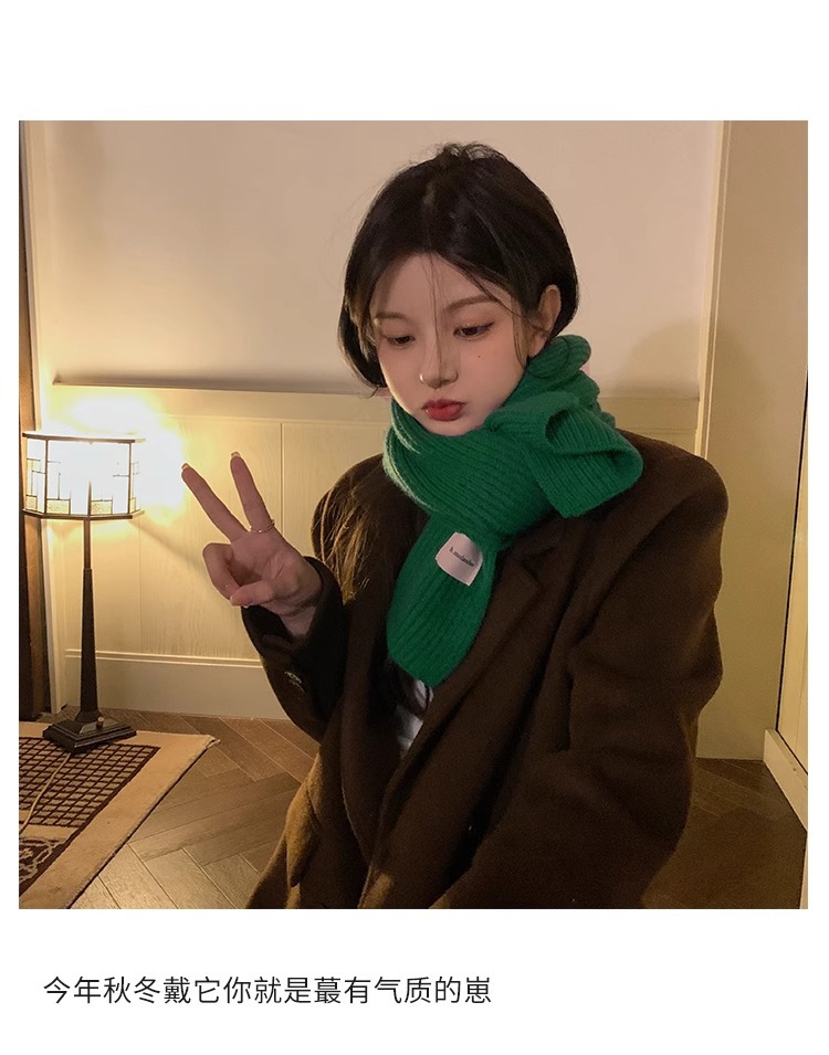 여성을위한 한국 스타일 다목적 모직 스카프 겨울 2025 새로운 스타일 작은 학생 두꺼운 녹색 따뜻한 니트 작은 스카프