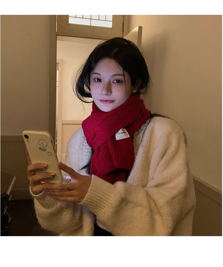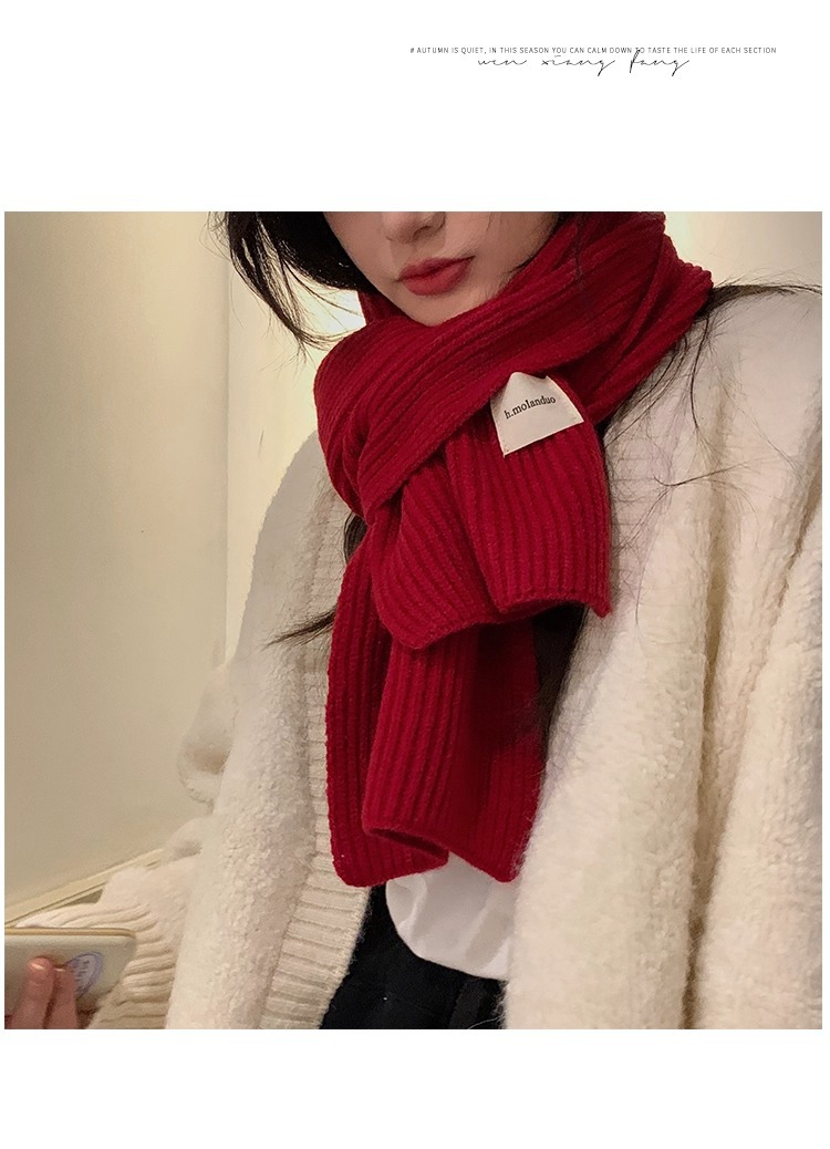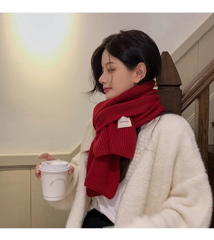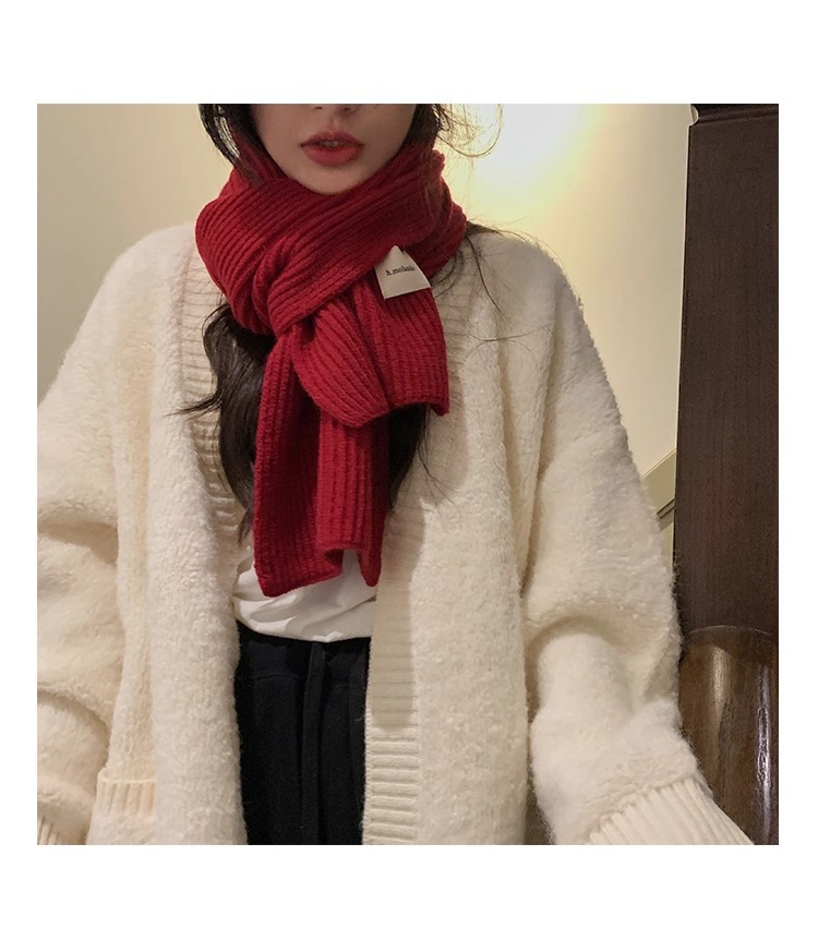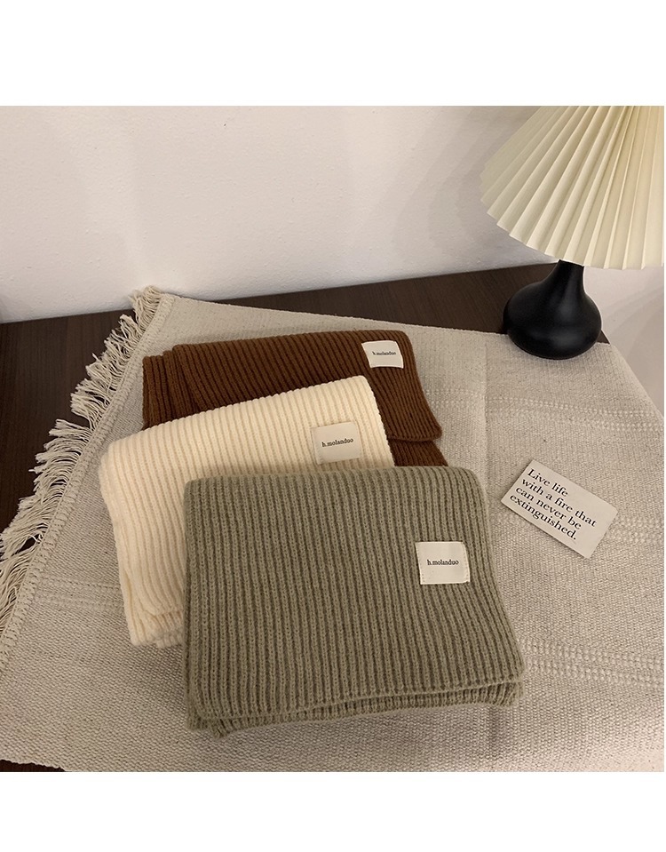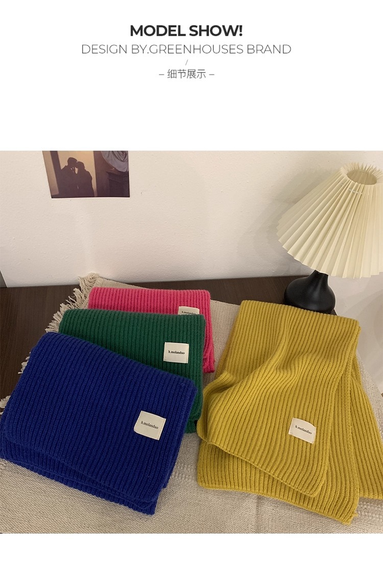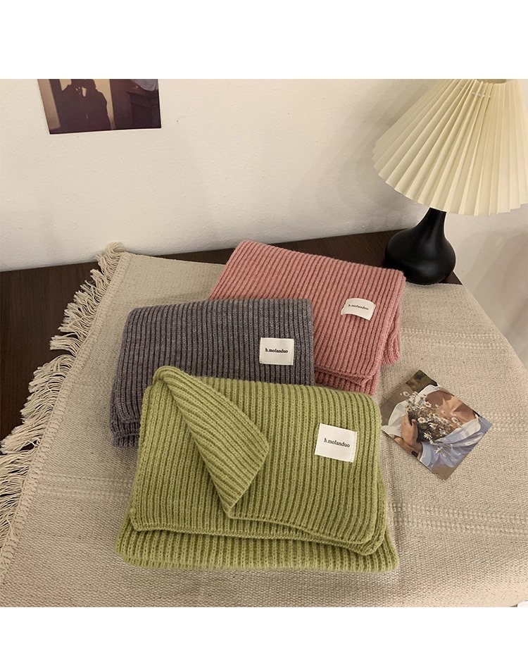 여성을위한 한국 스타일 다목적 모직 스카프 겨울 2025 새로운 스타일 작은 학생 두꺼운 녹색 따뜻한 니트 작은 스카프