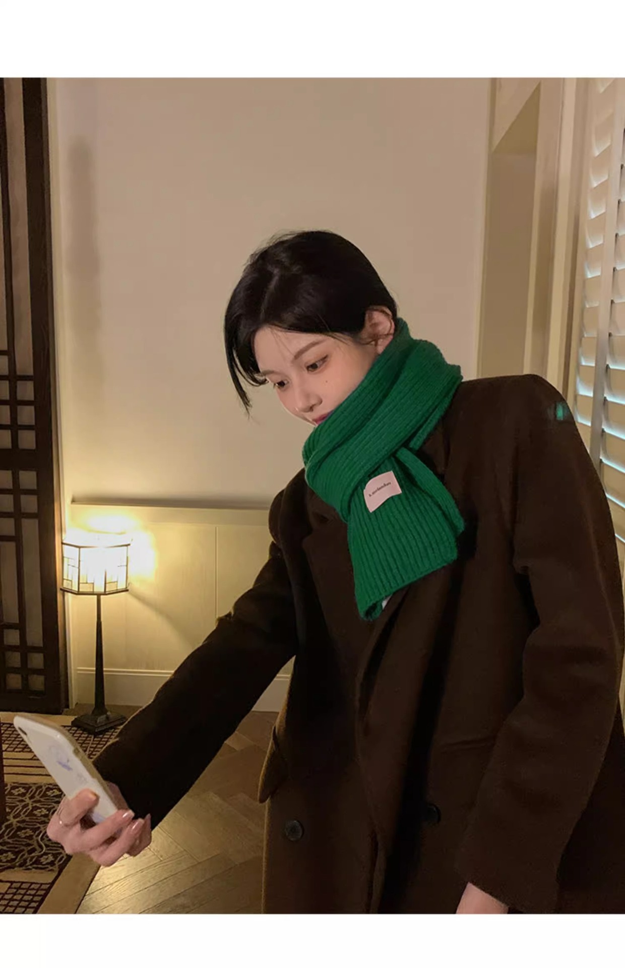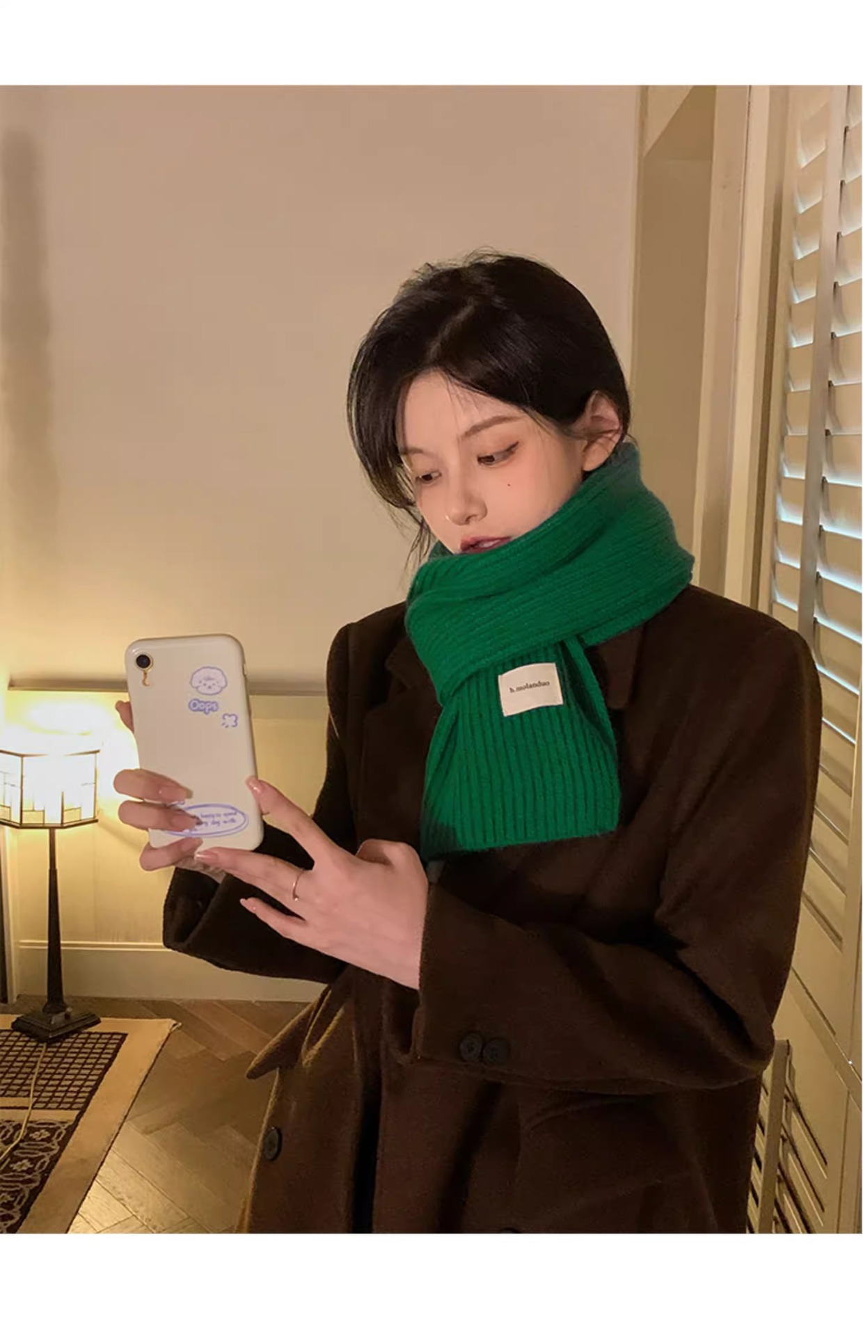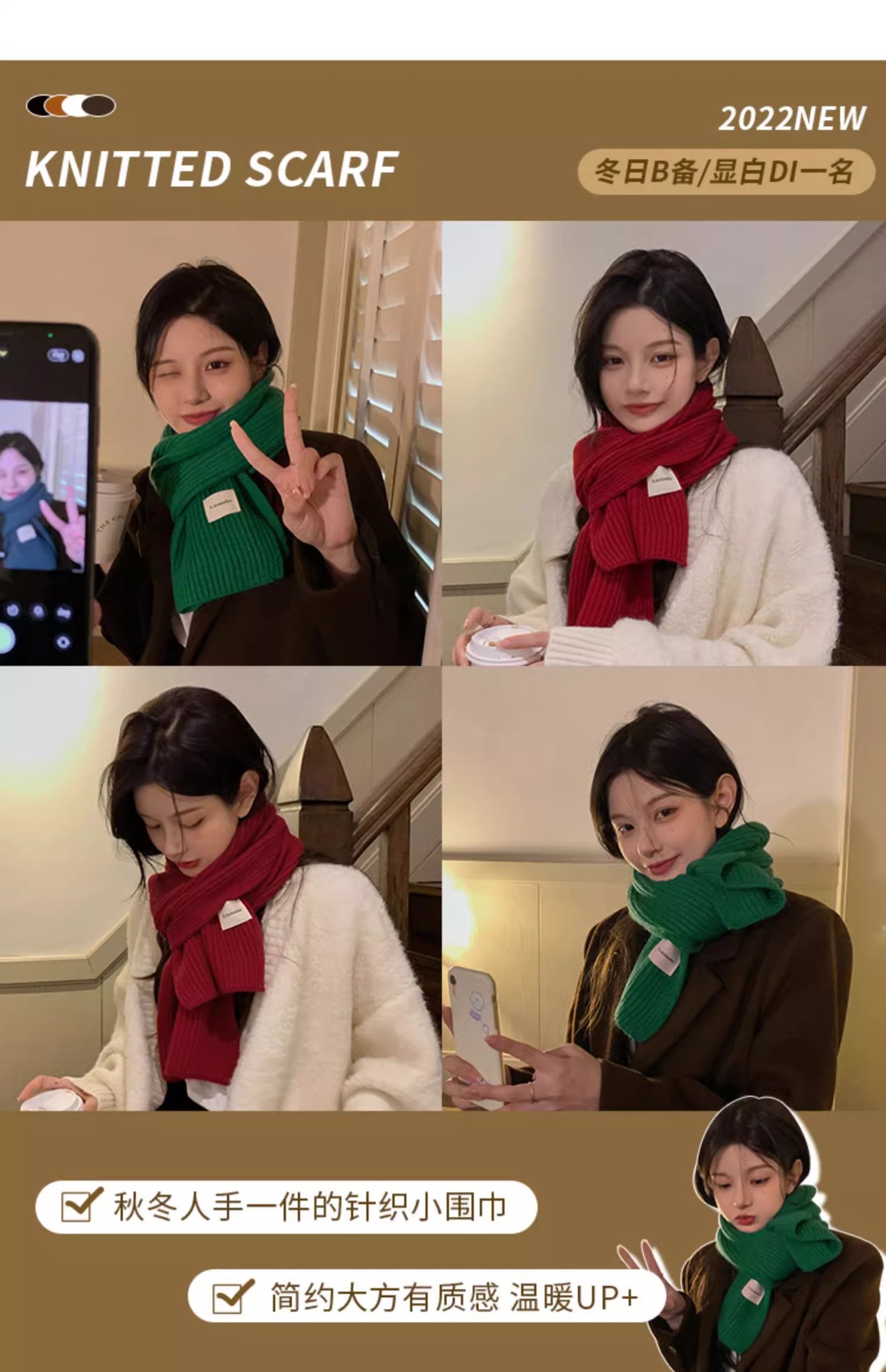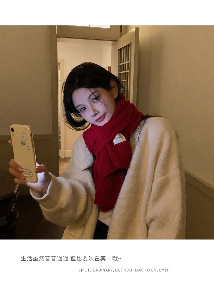 여성을위한 한국 스타일 다목적 모직 스카프 겨울 2025 새로운 스타일 작은 학생 두꺼운 녹색 따뜻한 니트 작은 스카프