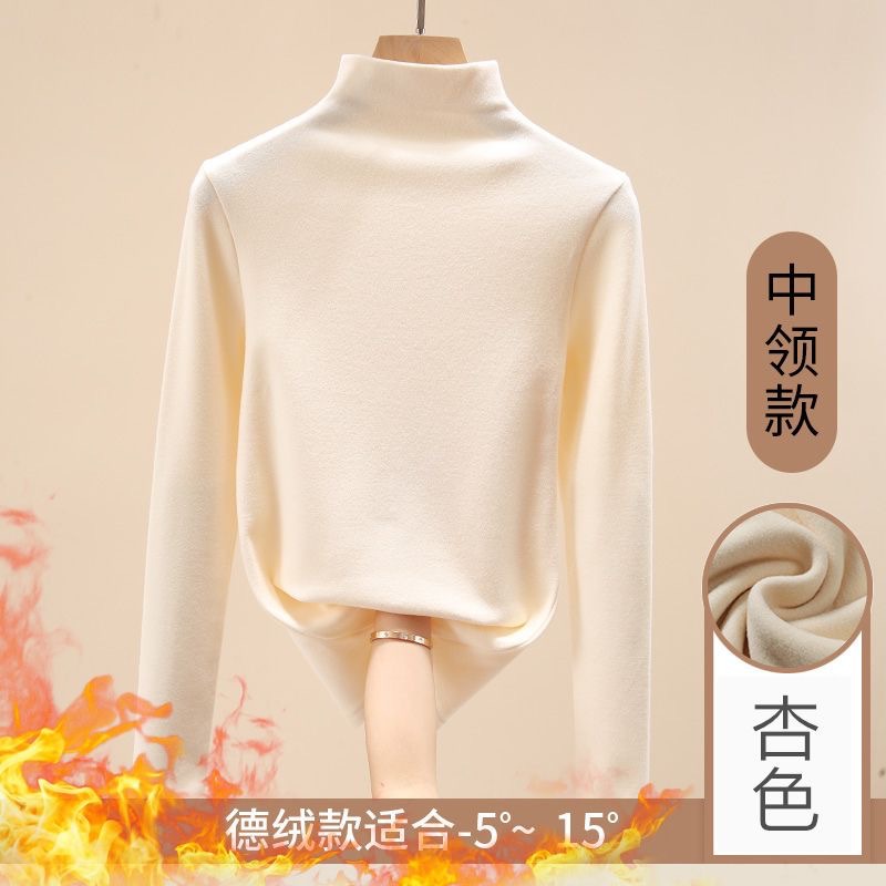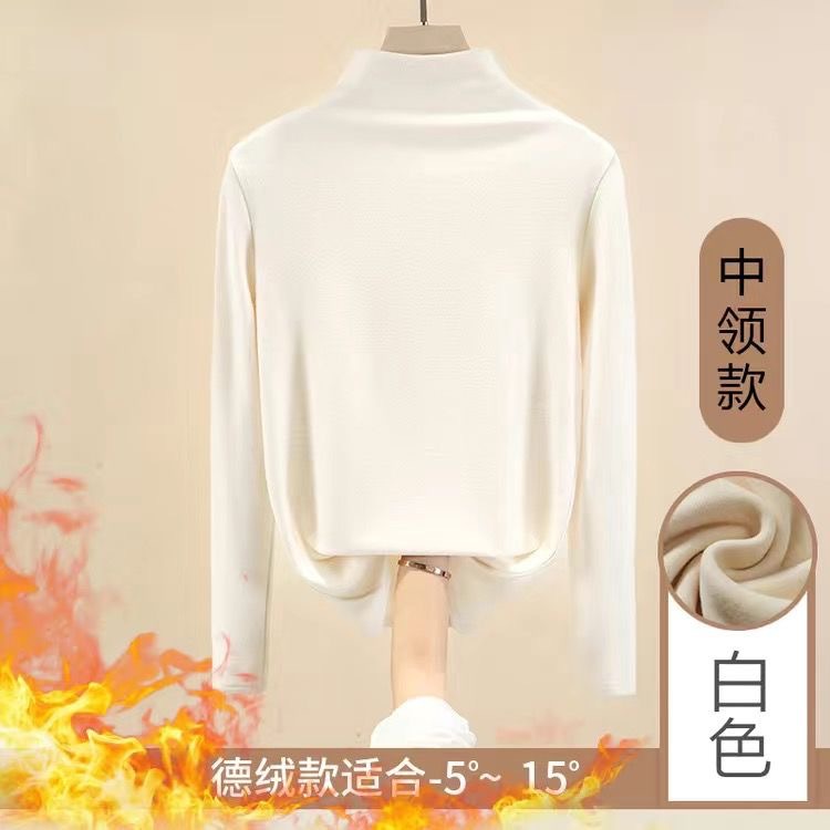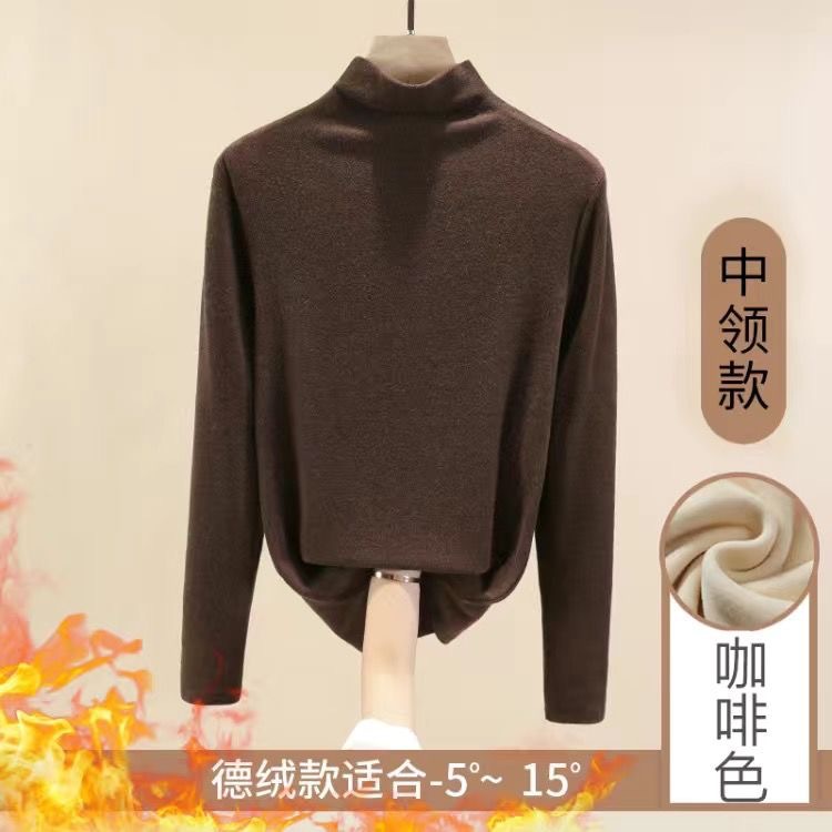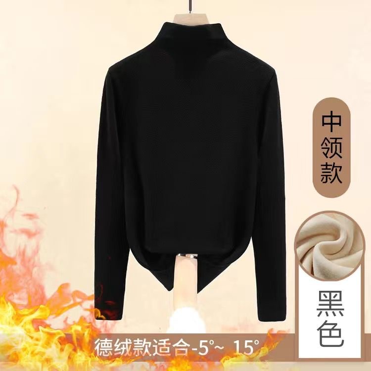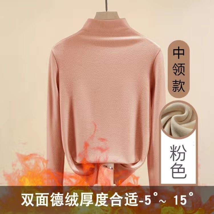 重磅双面德绒冬季百搭修身加绒长袖半高领打底衫女百搭上衣外穿