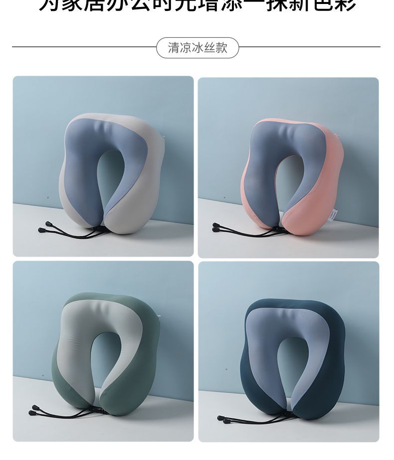 U 자형 베개 야외 여행 휴대용 목 베개 저장 가능한 메모리 폼 목 베개 멋진 얼음 실크 비행기 베개 도매