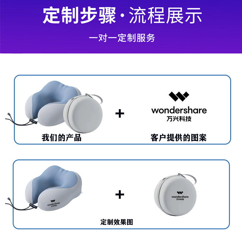 紫色坑条纹颈枕+灰色皮革EVA收纳包