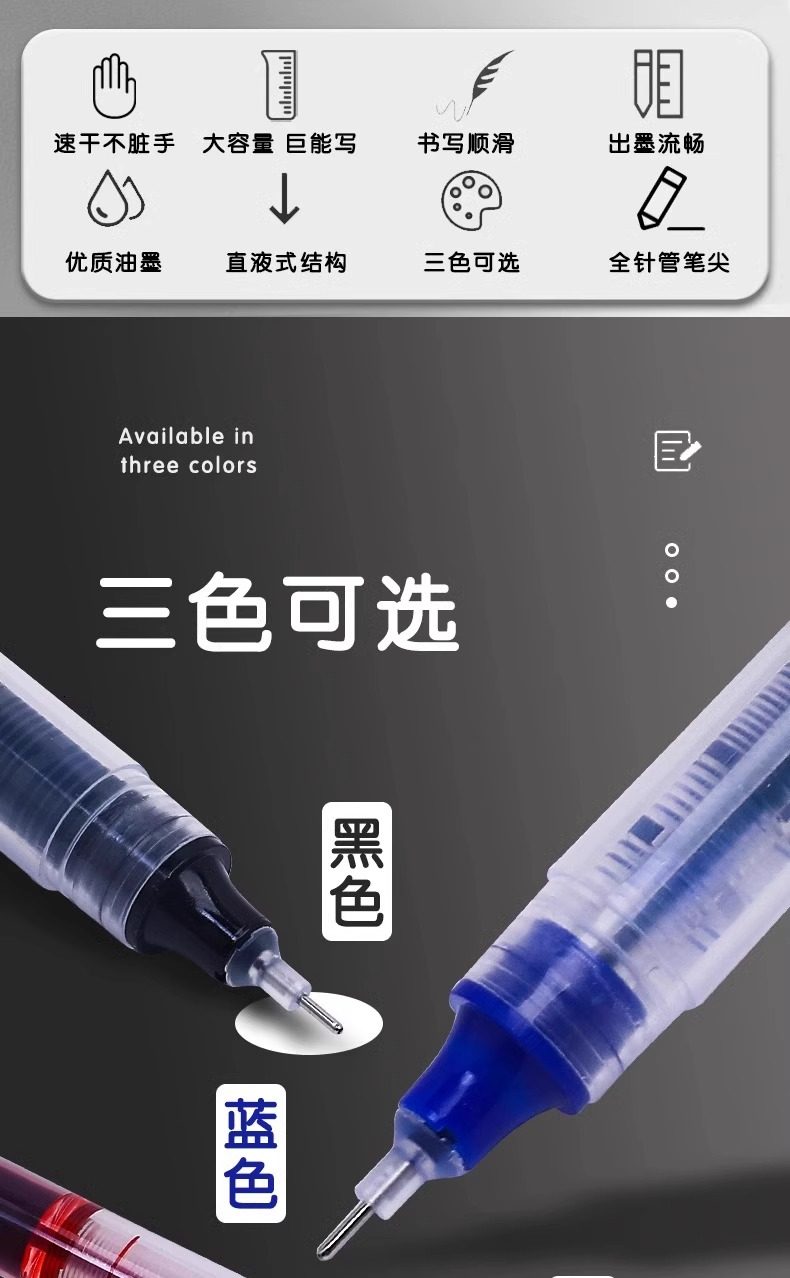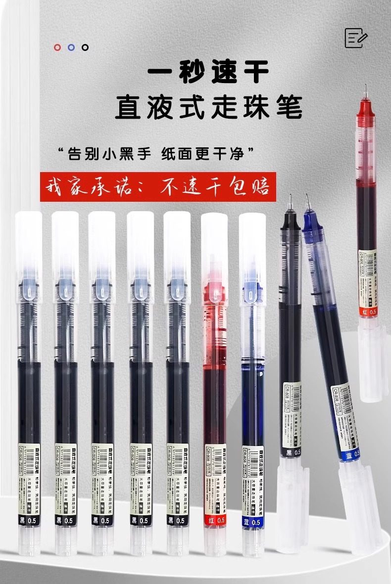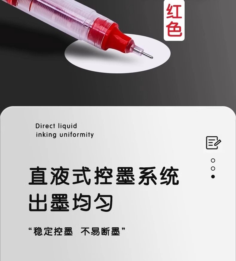直液式中性笔速干顺滑走珠黑红蓝签字刷题水性巨能写学生用彩色