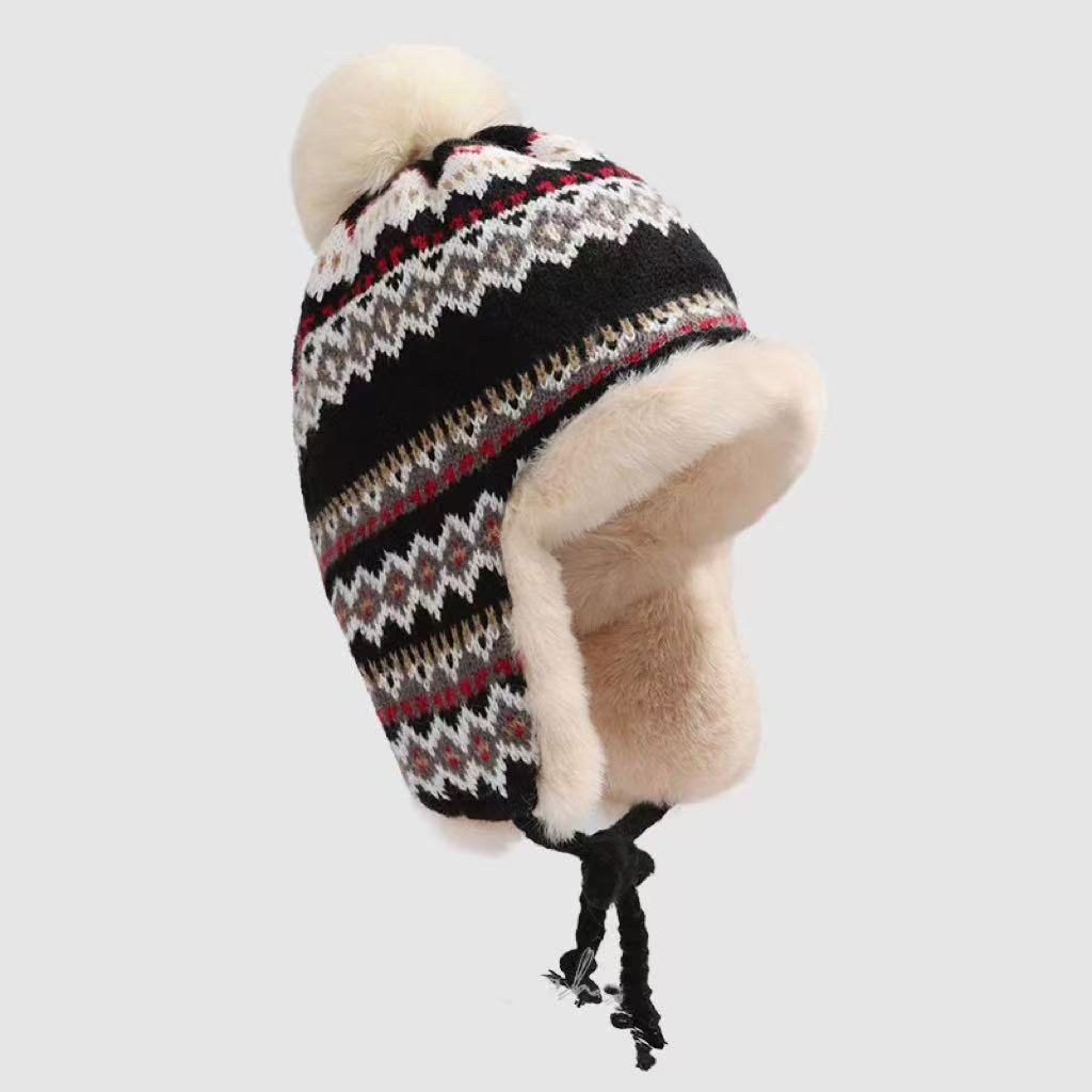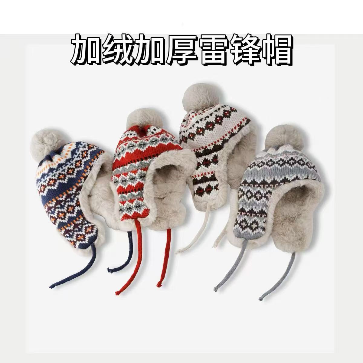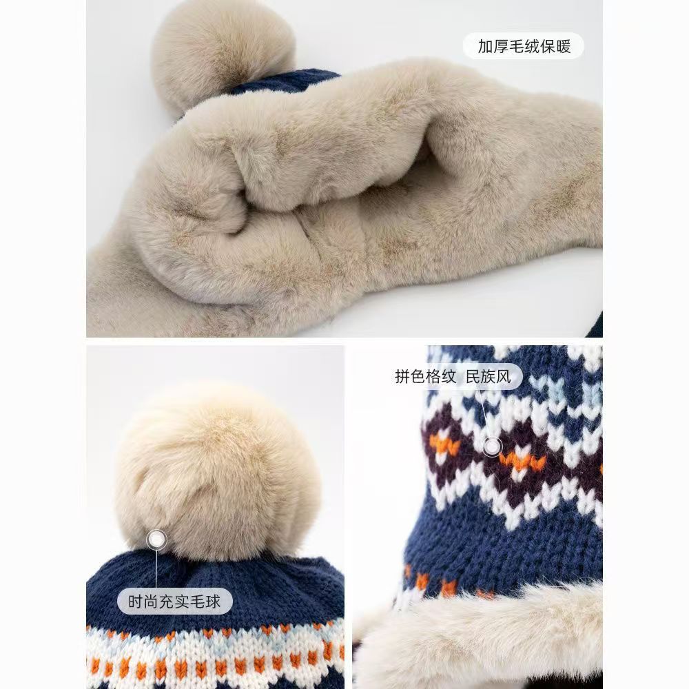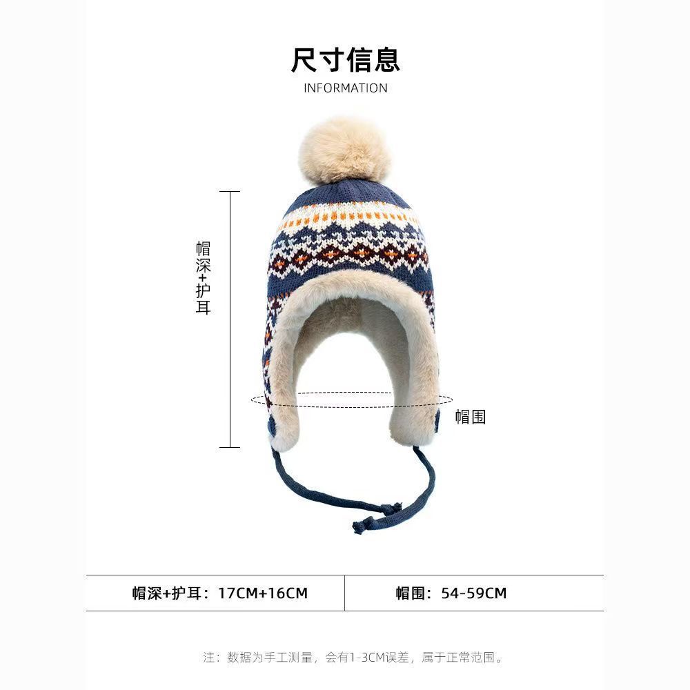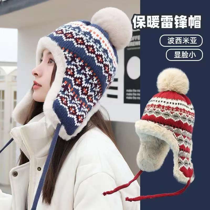 新款国风帽子女冬季保暖护耳针织帽韩版毛球毛绒户外骑行帽学生帽