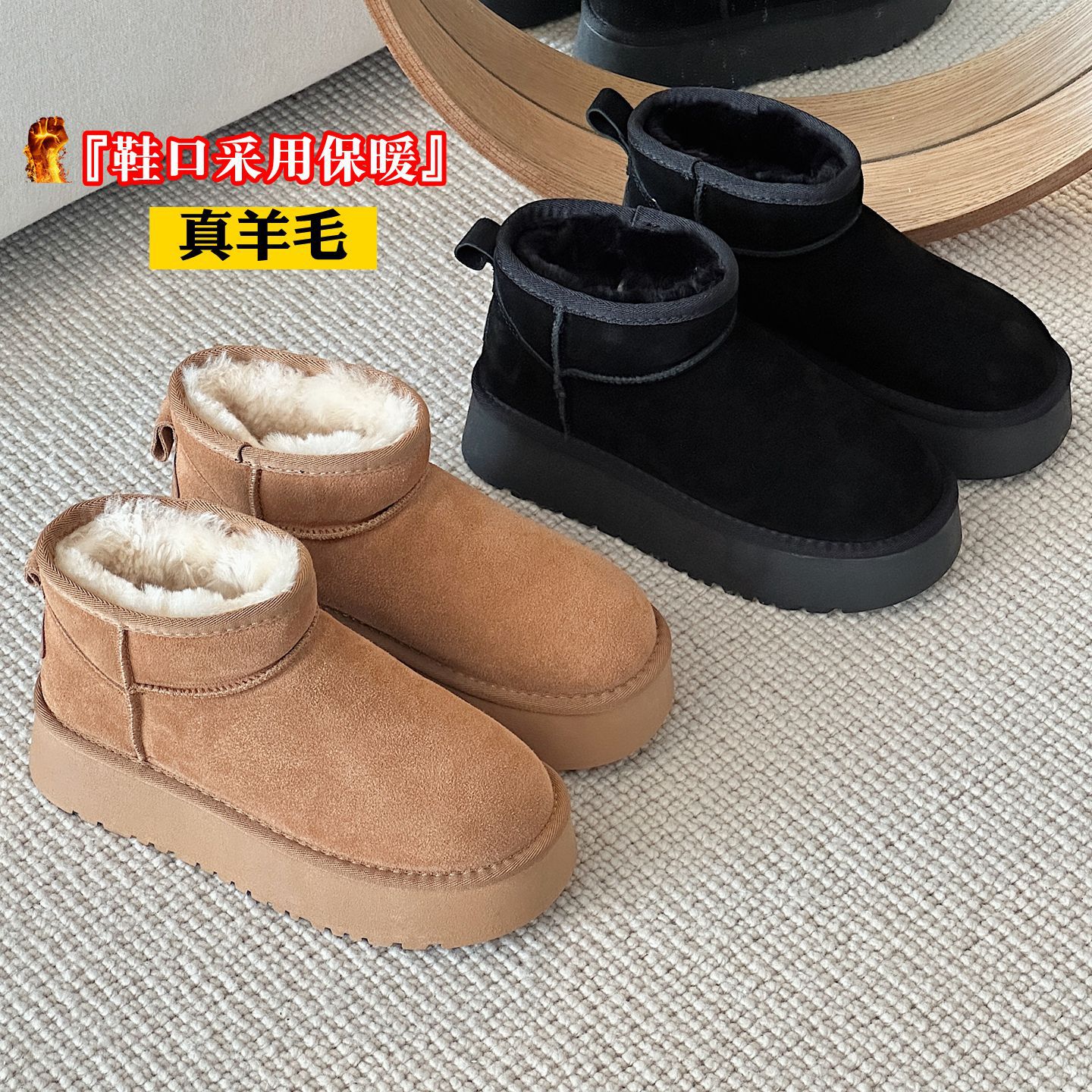 | 鞋跟形状 | 厚底 | 内里材质 | 人造短毛绒 |