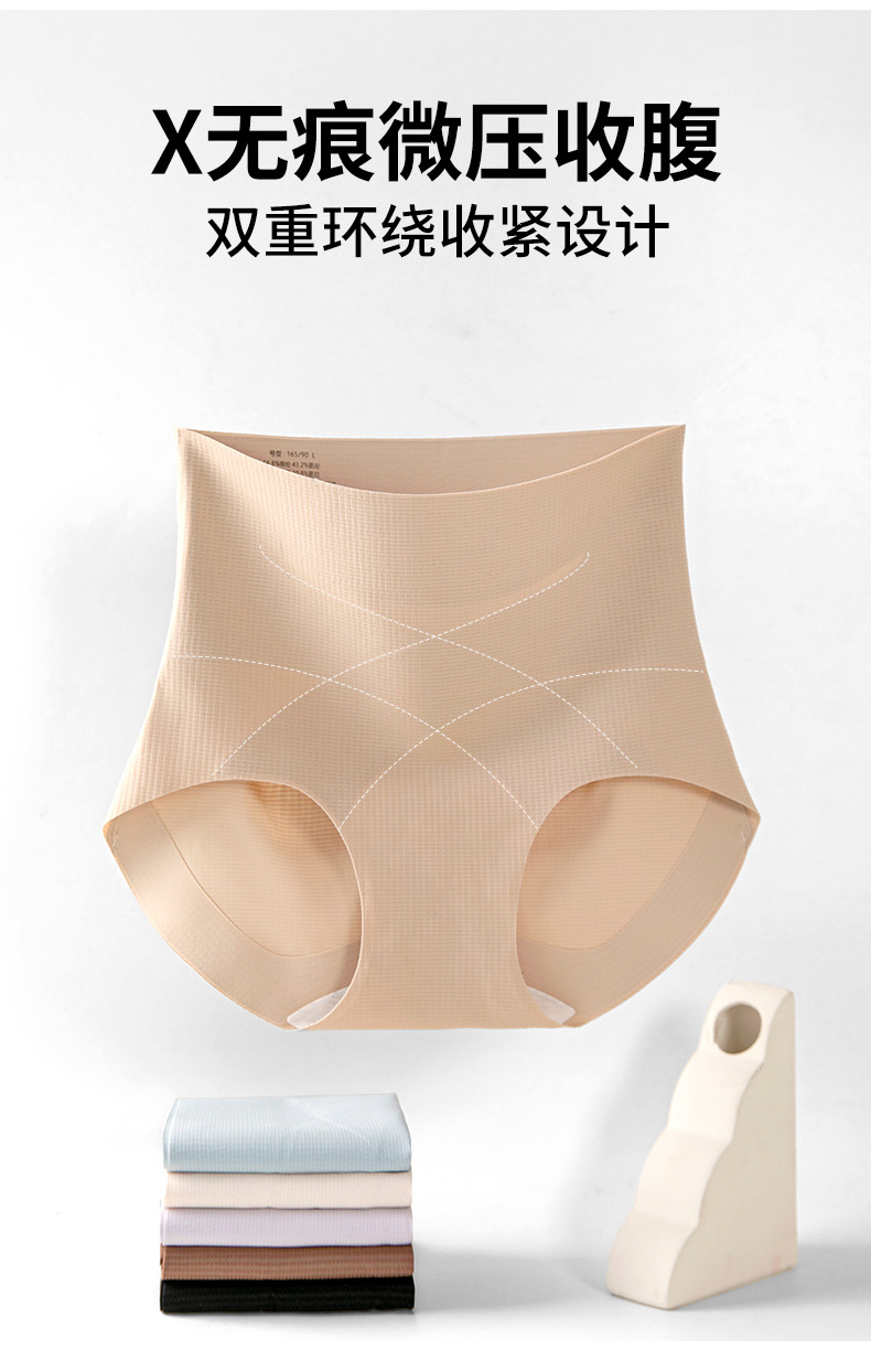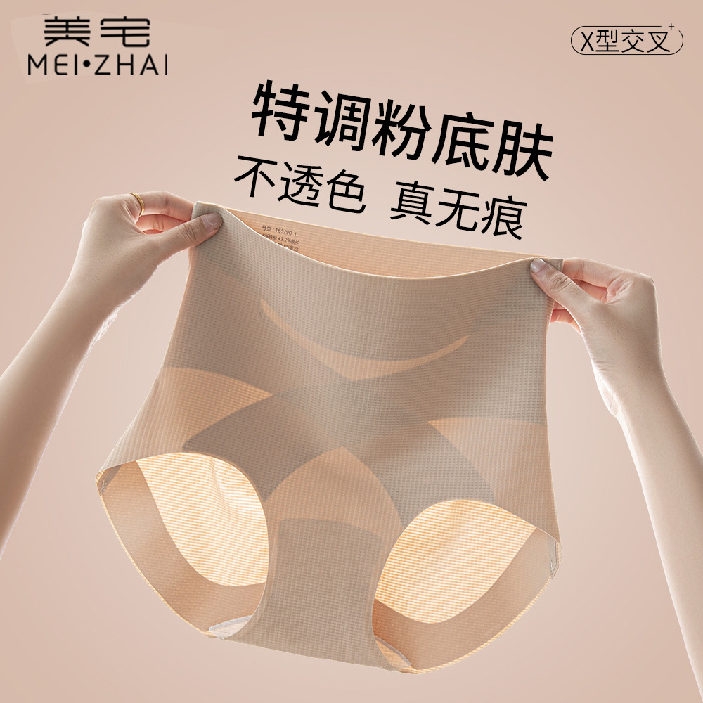 高腰无痕收腹裤塑形内裤薄款女粉底液提臀大红色抗菌大码三角裤