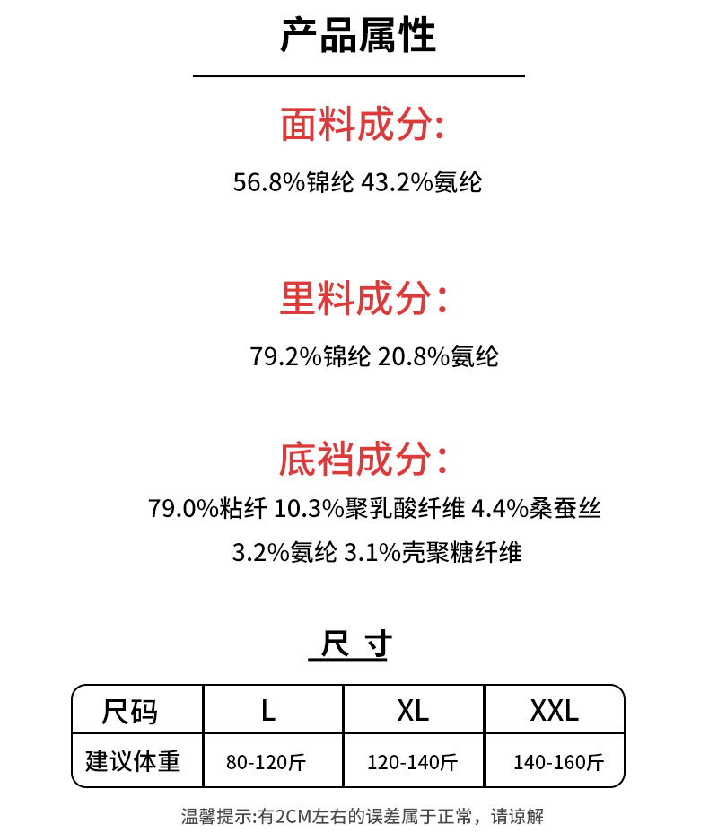 | 尺码 | L(100-120斤), XL(120-140斤), XXL(140-160斤), M(80-100斤) | 是否跨境出口专供货源 | 否 |