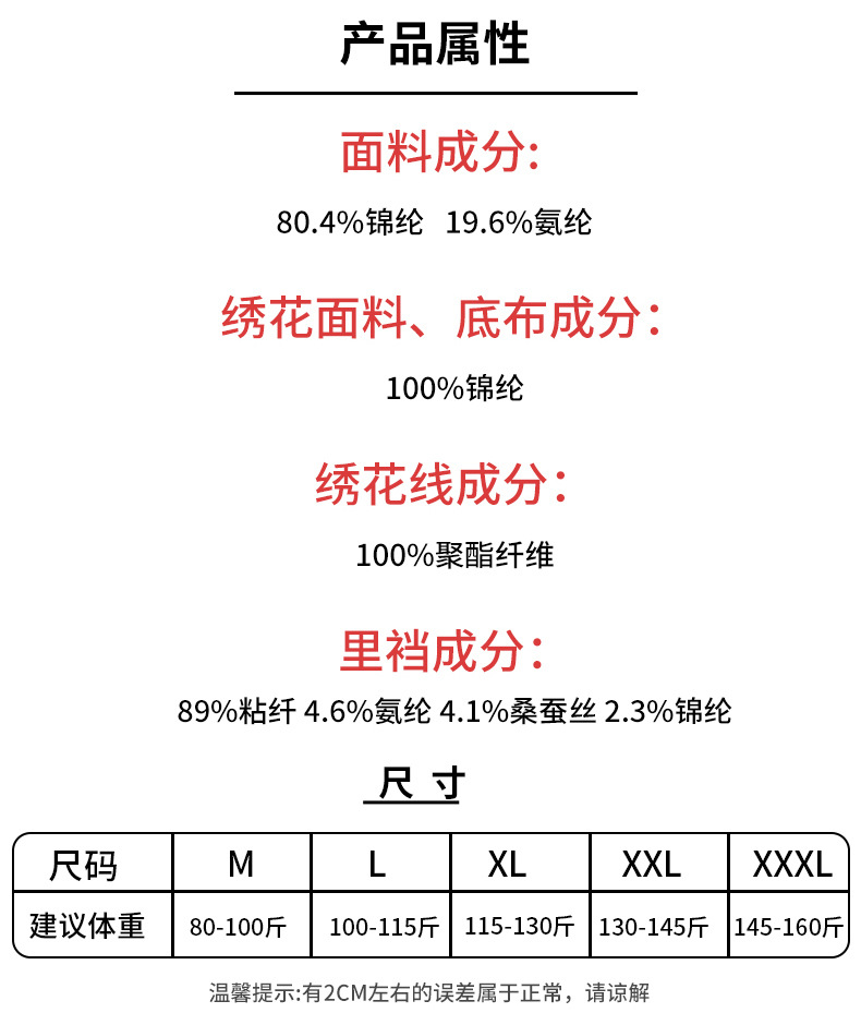 | 尺码 | M(80-100斤), L(100-115斤), XL(115-130斤), 2XL(130-145斤), 3XL(145-160斤) | 是否跨境出口专供货源 | 否 |