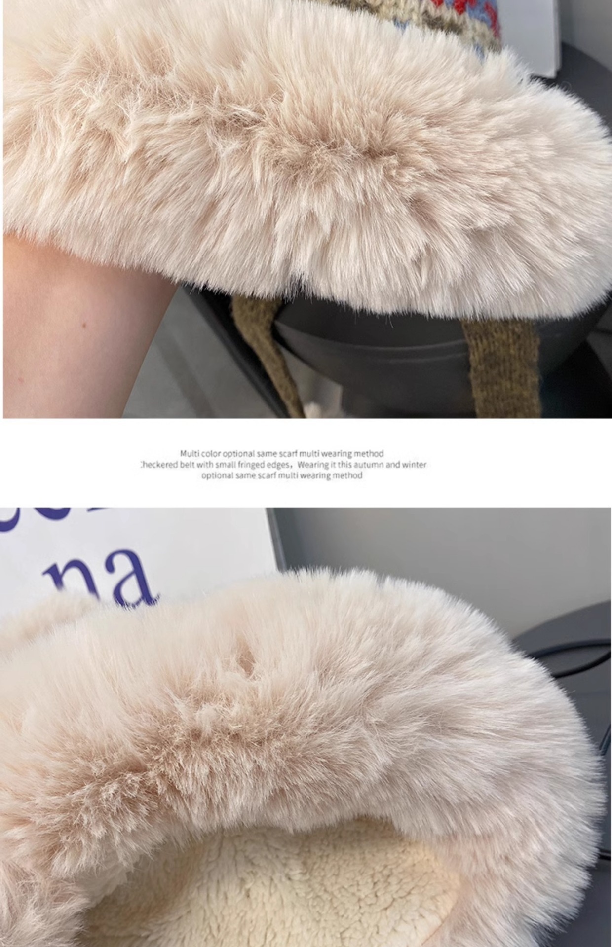 冬季女费尔岛风加绒加厚保暖针织帽蒙古护耳毛线帽大头围雷锋帽子