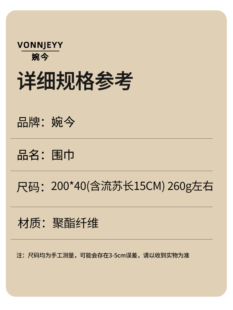 | 品牌 | VONNJEYY/婉今 | 编织方法 | 经编 |
