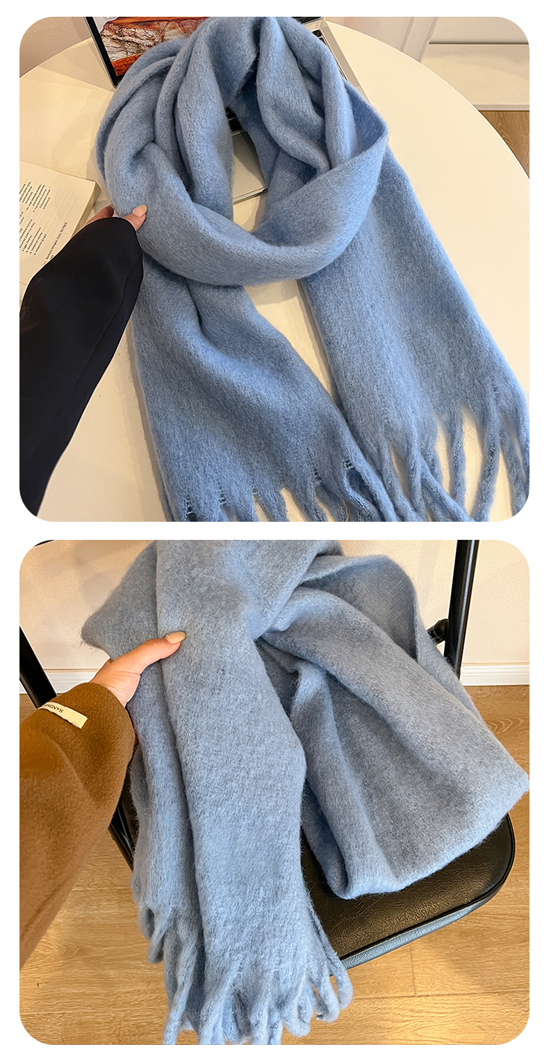 단색 부드러운 스카프 - 헤이즈 블루 [대형 버전 200×40cm]